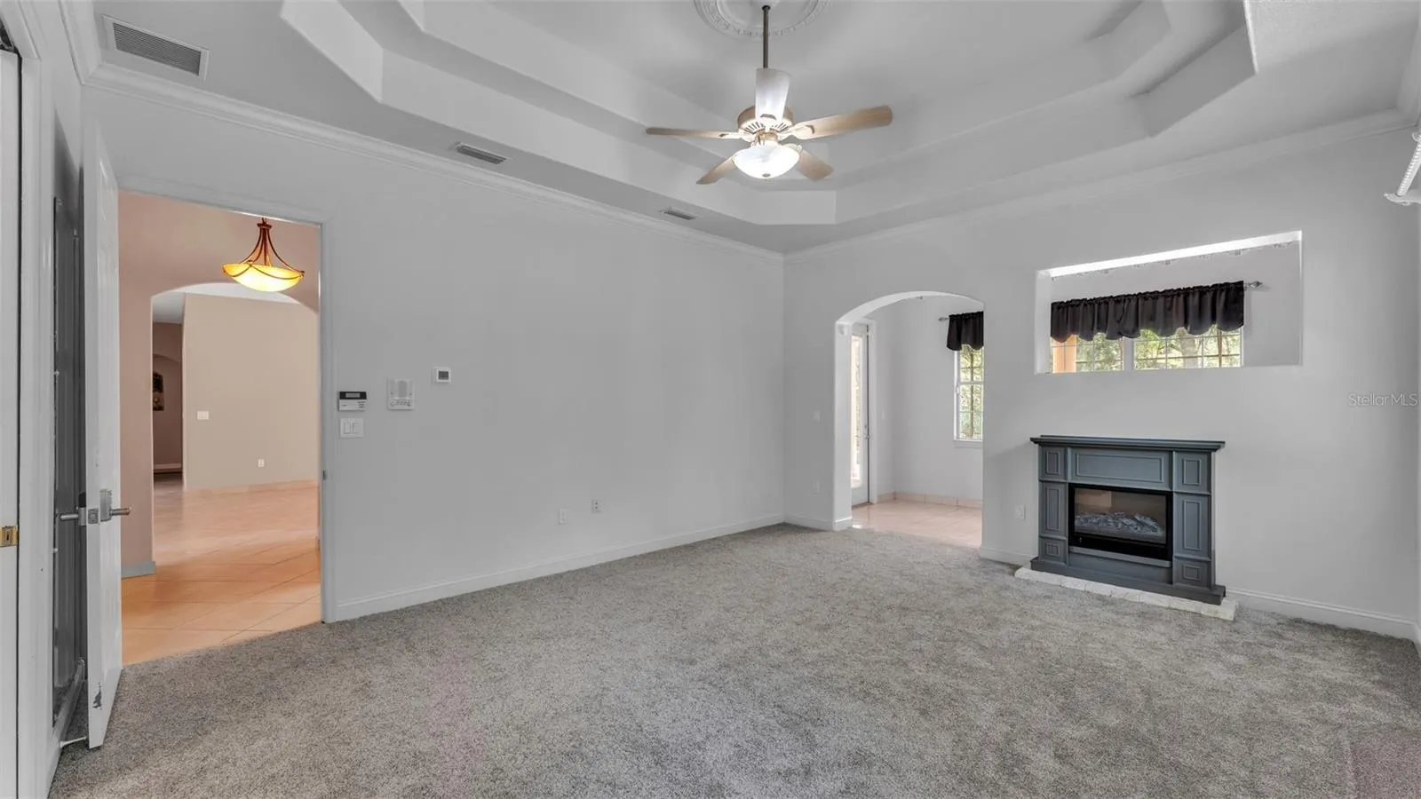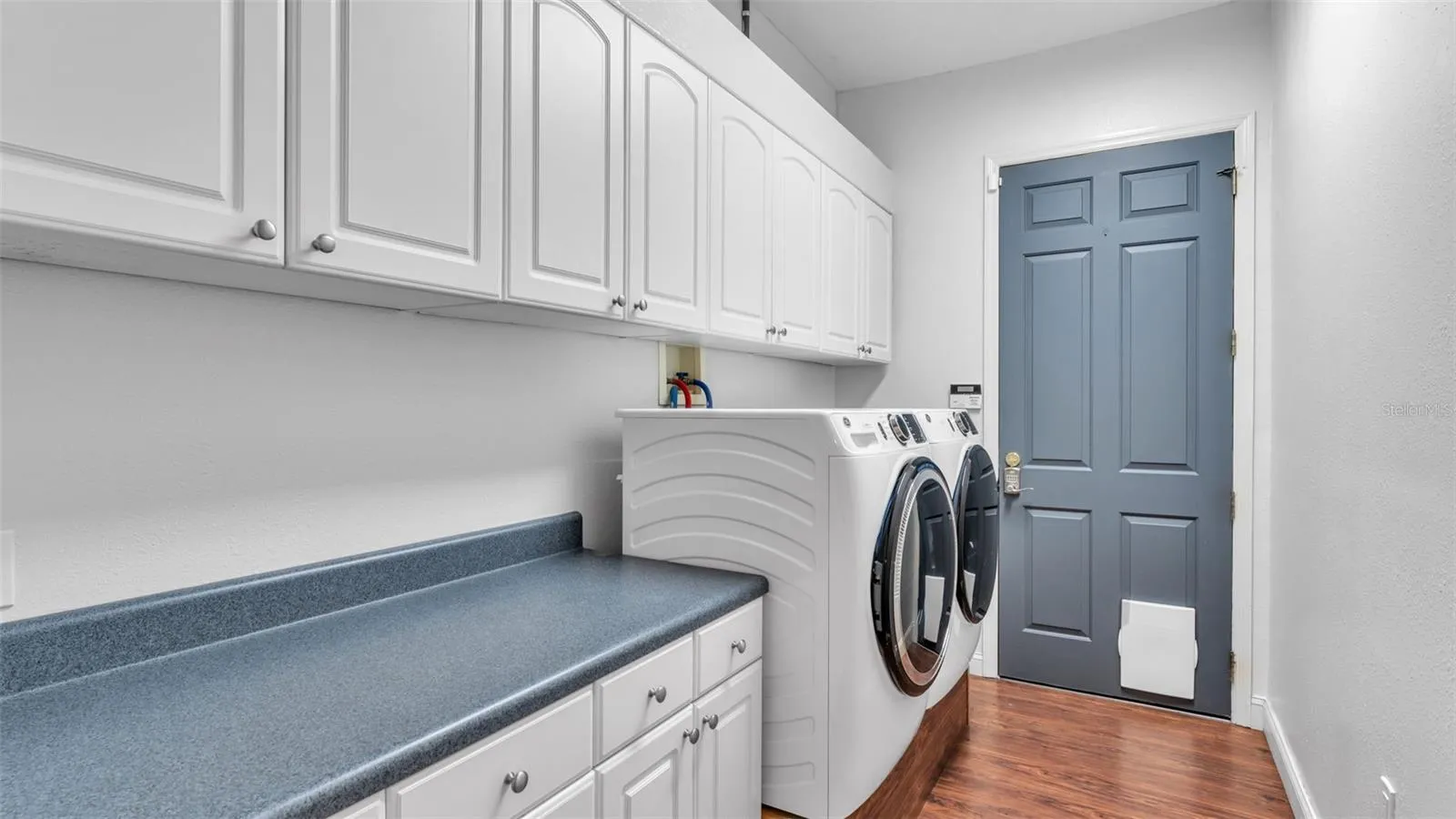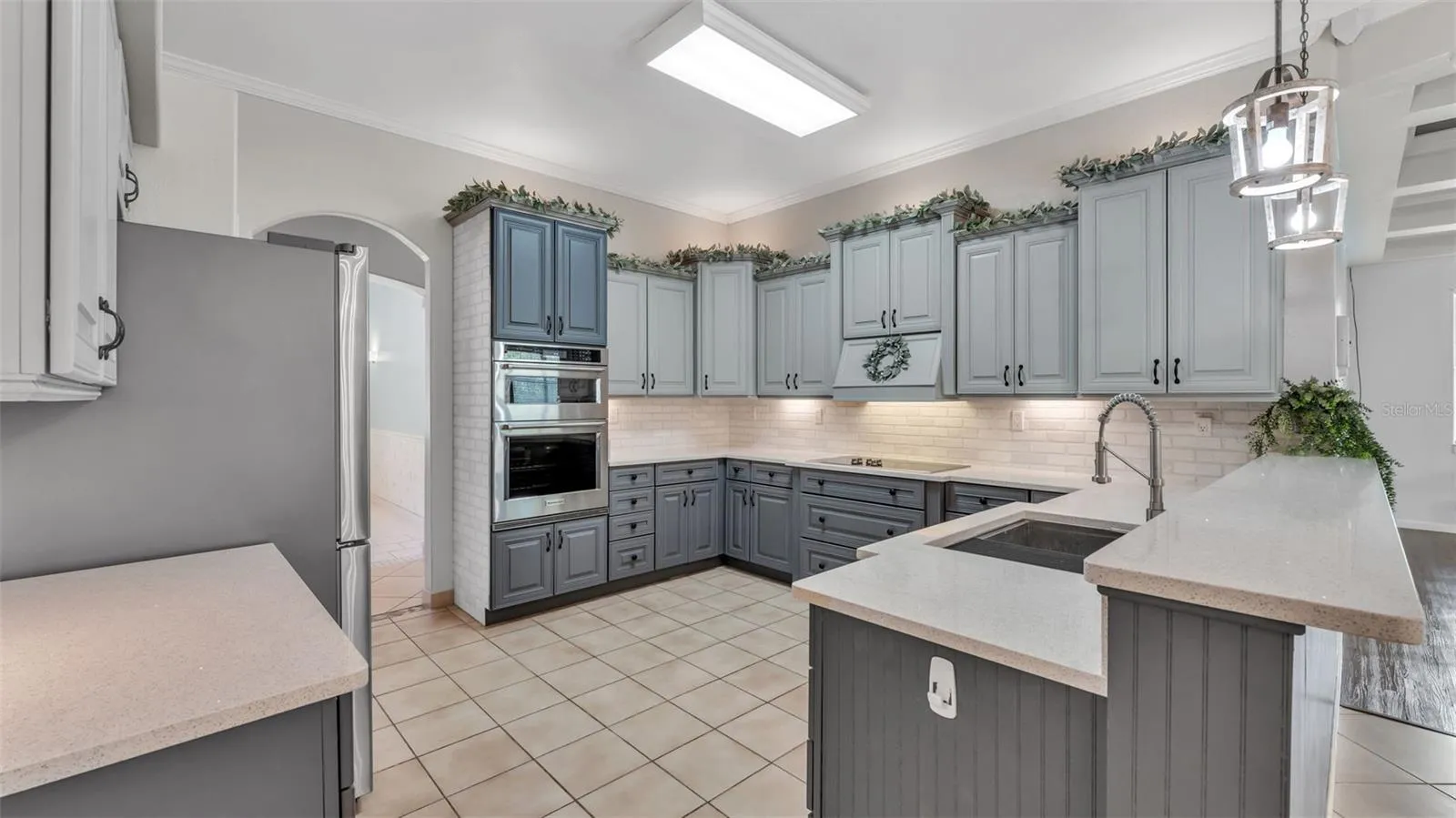 At the heart of the home is a remodeled kitchen (2024) boasting new stone countertops, a touchless faucet, Samsung flex-zone refrigerator, stovetop, dishwasher, microwave/toaster oven combo, and built-in kegerator, making it a true chef’s dream.
