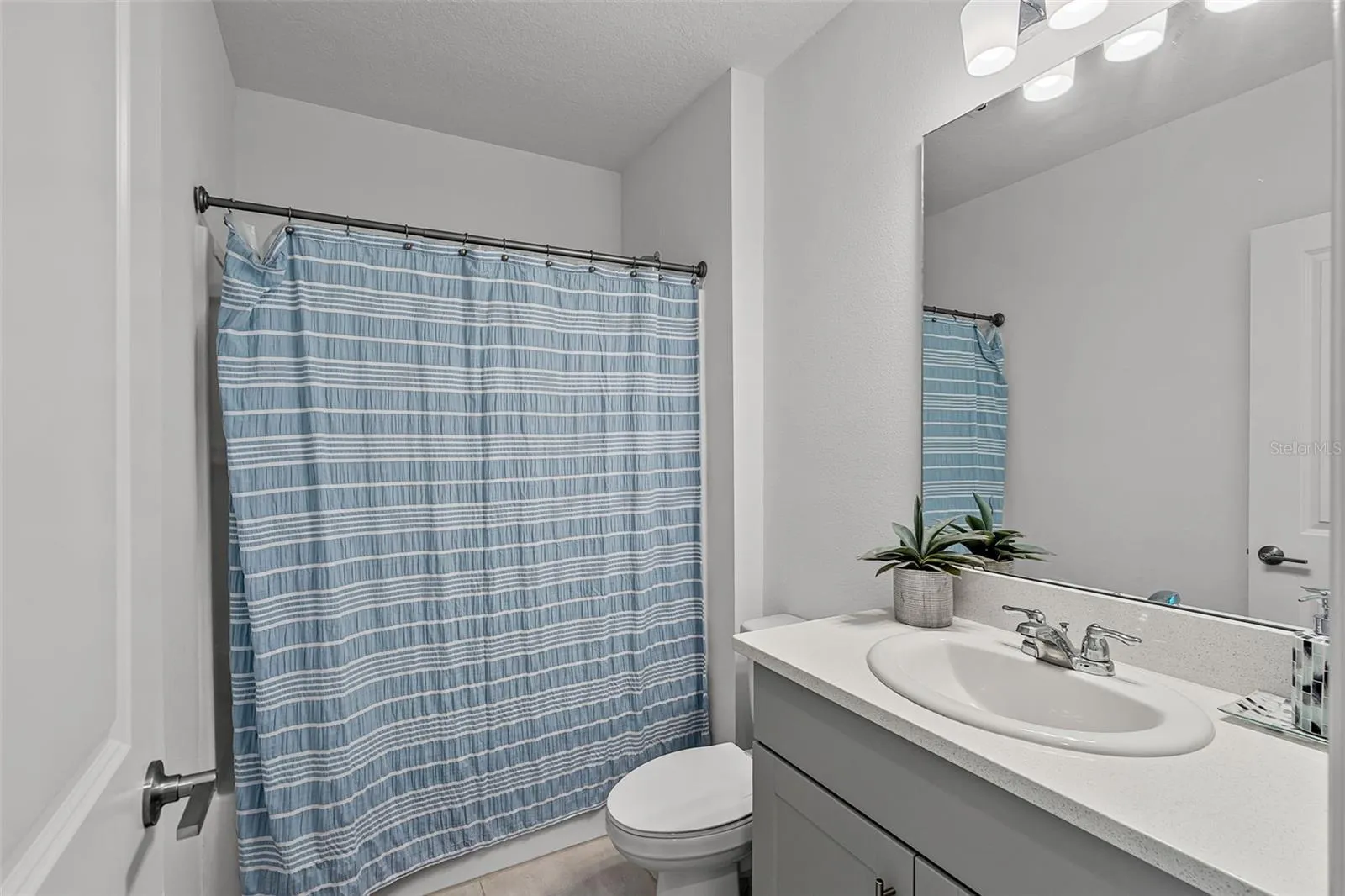The private primary suite is thoughtfully tucked away at the back of the home and boasts a walk-in closet and an en-suite bathroom complete with dual vanities and a stand-alone shower. At the front of the home, you’ll find three additional guest bedrooms and two full bathrooms, both with convenient tub/shower combinations.