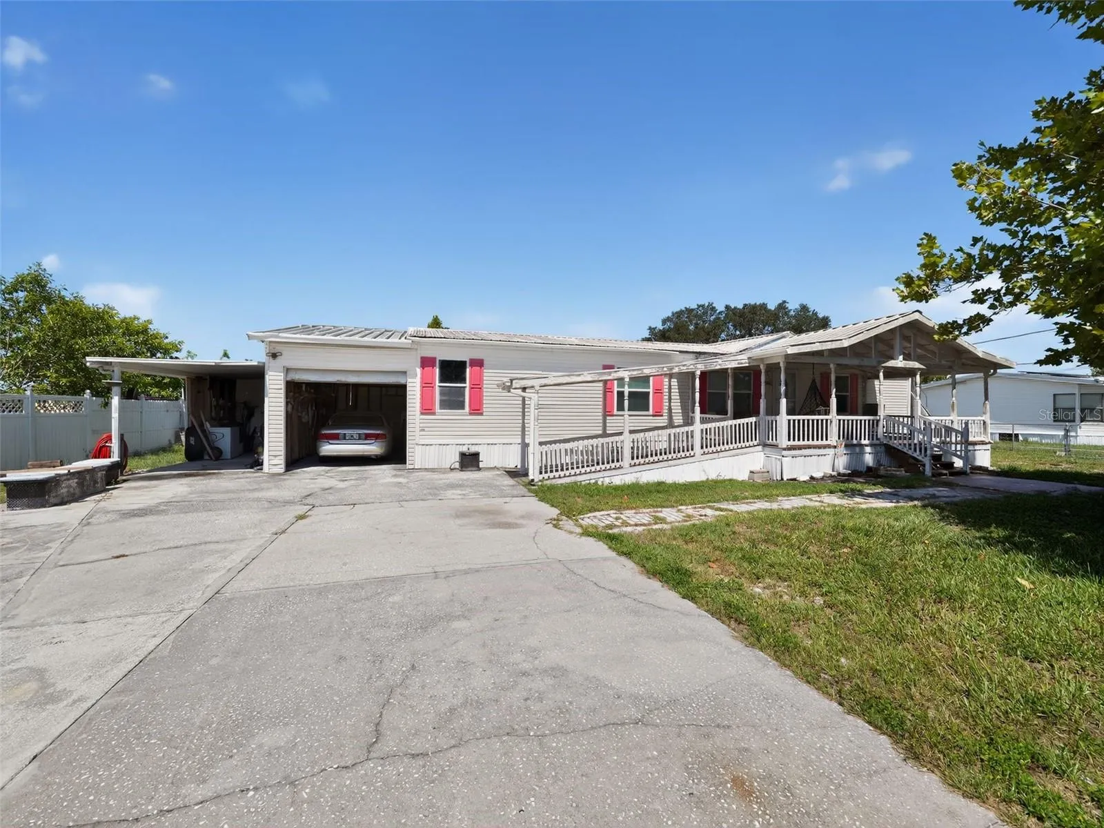 Outside, you’ll love the large covered front porch—accessible by both steps and a ramp—overlooking a fully fenced yard. The property includes a covered carport, a one-car garage, and nearly an acre of space to spread out. With a durable metal roof, septic system, and well water, this home is built for low-maintenance living.
