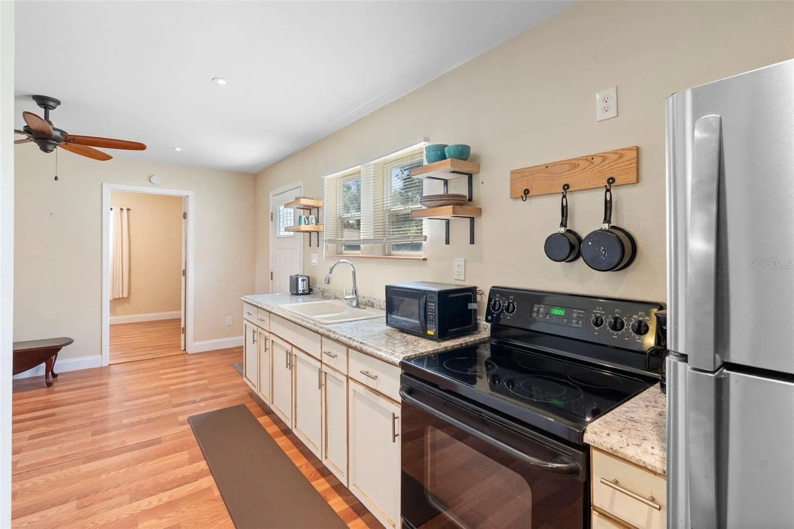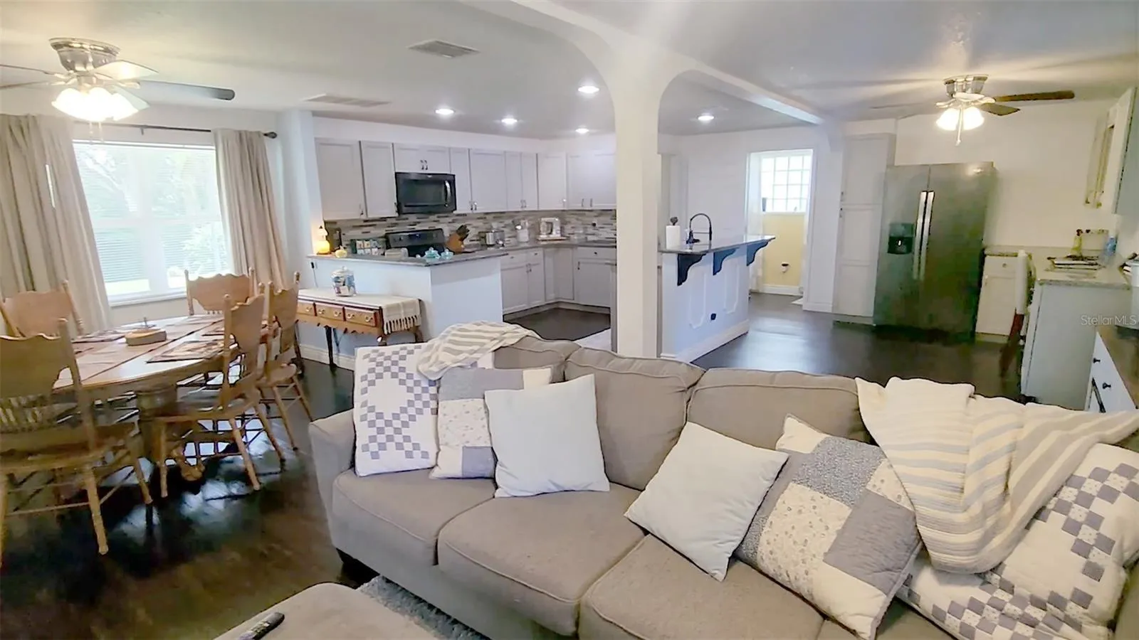 This fully renovated and meticulously kept estate home sits high on 1.81 acres in the country with DETACHED GARAGE, DETACHED GUEST HOUSE and huge WORKSHOP just a short distance from I-4, shopping, and restaurants, providing the best of the quiet life in the country combined with easy access to everything you want or need. Inside, this beautiful kitchen features gorgeous granite countertops and granite-topped island, an abundance of cabinetry, custom tile backsplash, newer appliances, recessed lighting, and the perfect space for a home office. The spacious main living area is adjacent to the kitchen and features gorgeous luxury vinyl plank flooring that flows throughout most of this home. The 26’ X 15’ primary bedroom suite w/sitting area boasts a large walk-in closet and ensuite bath with dual sinks in the large granite topped vanity, jetted soaking tub, and beautifully tiled walk-in shower. Outside, the oversized detached 2-car garage is connected to the main home by a covered breezeway and short paver-lined walkway. The detached 672 square-foot home with 2-bedrooms and 1-bath is well updated and includes a small, private sitting patio. The huge workshop with two garage doors and interior office space is the perfect opportunity for the backyard mechanic or anyone that enjoys working with their hands, or for storing your outdoor toys. The chicken coop is perfect for home-grown eggs every morning. Grow your vegetables in the raised garden bed or start new beds elsewhere as there’s plenty of room here. Being just outside the city limits, this home features a well and septic, ensuring fresh water and no water bills. Boasting a new roof and HVAC in 2017 and electrical and plumbing in 2018, the major components are covered for years to come. This gorgeous home has NO HOA and is well updated with newer paint, knockdown ceilings, fixtures, and yes…this parcel goes all the way to the lake! Ask your Realtor® for the link to the unbranded virtual walking tour to this beautiful home in the country. All measurements are approximate and should be independently verified.