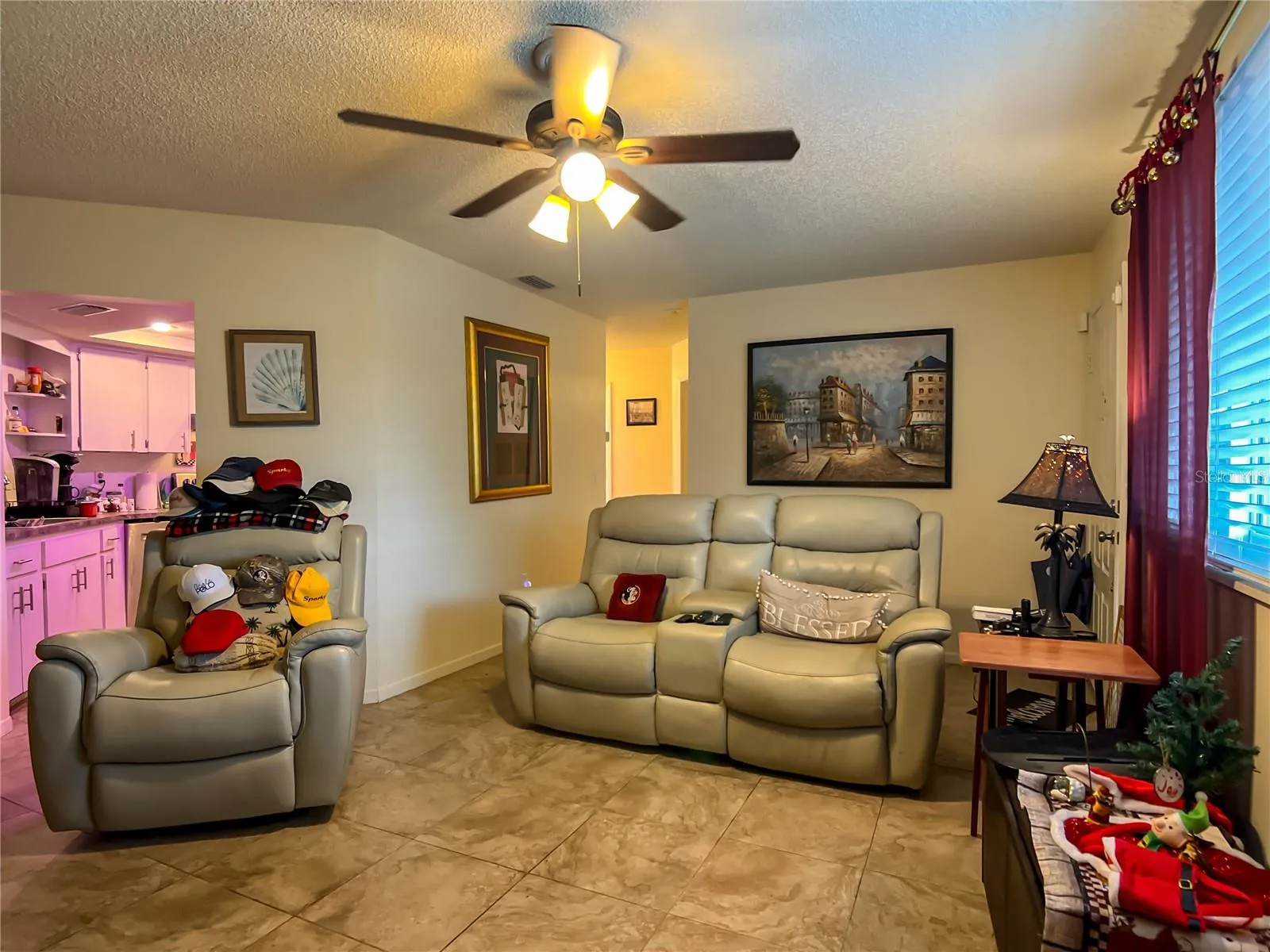 Introducing this Expanded Hickory model with newer impact-resistant windows,THAT COMES FURNISHED (minus the primary bedroom furniture) that is situated on a fenced lot with an expanded driveway for LOADS of parking! The home features Beautiful porcelain tile and 2” Levolor blinds throughout the house, A cozy kitchen with NEWER appliances, hot water tank & AC were UPDATED in 2021. Roof was COMPLETED in 2017 w/gutters & Also with Solar Panels making for a lower electric bill only as much as $40 a month! This home is also equipped with a Water softner that transfers with the sale.