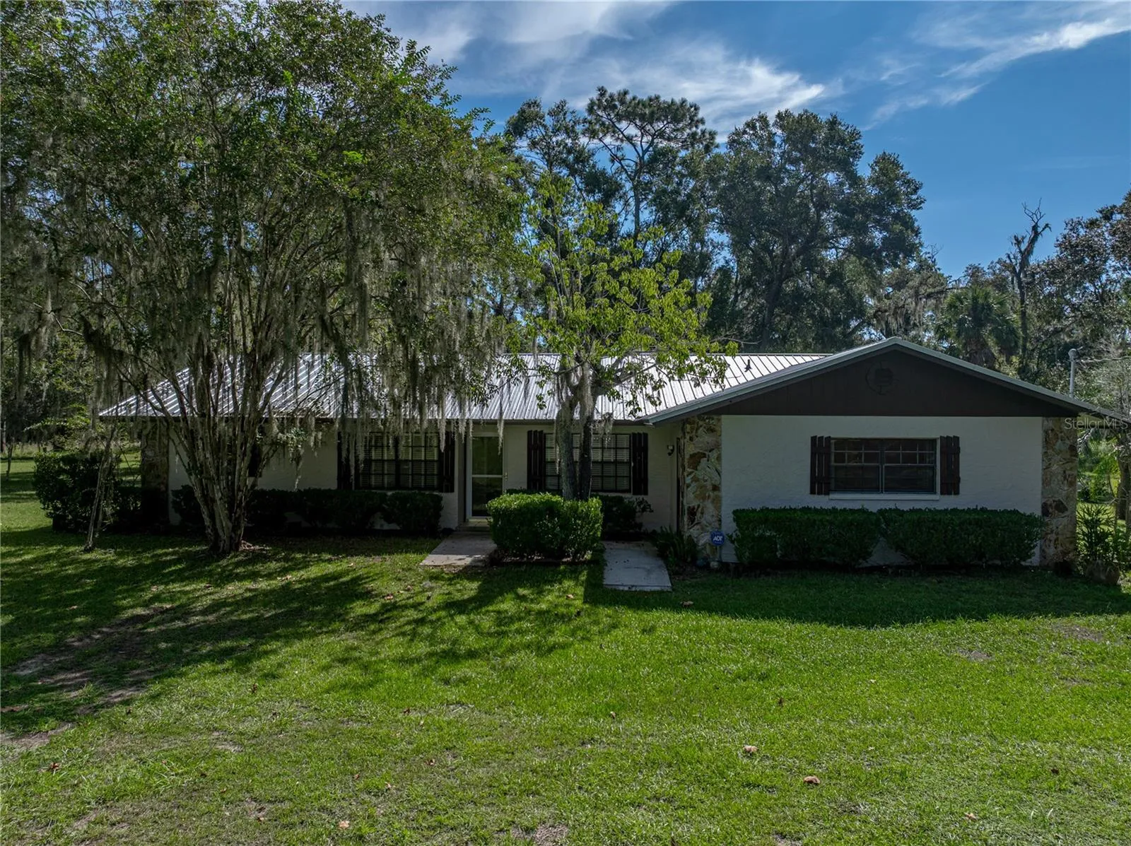 Priced Below Appraised Value! Endless nature is at your doorstep with this 20-acre property that borders over 100,000 acres of SWFWMD trails for walking, horseback riding, and exploring. With no rear neighbors and wide-open natural surroundings, this truly is a tranquil retreat. The peaceful drive in is bordered by rows of pine trees that not only add to the setting but also provide greenbelt tax savings. A canopy of trees opens to reveal a welcoming 2000+ sq ft home with a 2022 metal roof, 3 bedrooms + office, 2 baths, and a thoughtfully designed floor plan. Inside, the light-filled formal living room flows easily into the open family room and kitchen. A gas fireplace with a stone surround, French doors to the screened porch, and easy access to the chef’s domain create a warm and functional layout. The kitchen is well-equipped with ample wood cabinetry for storage, some stainless steel appliances and generous prep space. There are multiple dining options including a breakfast bar, eat-in dinette, and a charming formal dining room nearby. A private office and convenient laundry closet sit just off the kitchen. The split bedroom layout offers a secluded primary suite with private porch and Jacuzzi access, and an ensuite bath featuring an accessible walk-in tub. On the opposite side of the home, two secondary bedrooms share a beautifully updated 2025 guest bathroom with a new vanity, fixtures, paint, and toilet. Throughout the home, easy-care flooring means no carpet to worry about! Step outside to enjoy a screened back porch overlooking your own wooded sanctuary. There are three outbuildings for storage or projects, a second well for the pine trees and plenty of space for animals. With endless opportunities to create a farm lover’s dream, this property truly delivers. All while bordering thousands of acres of protected land where nature is your closest neighbor. If you’ve been searching for a spacious home surrounded by tranquility and trails, this is the one. Call today for your private showing.