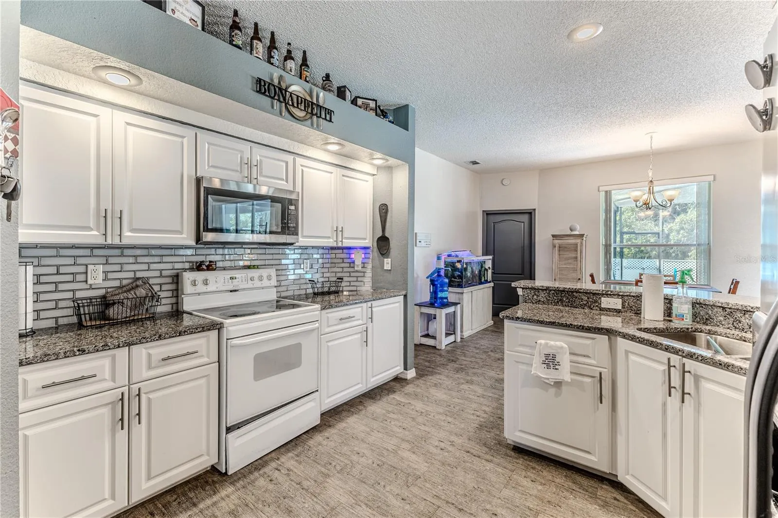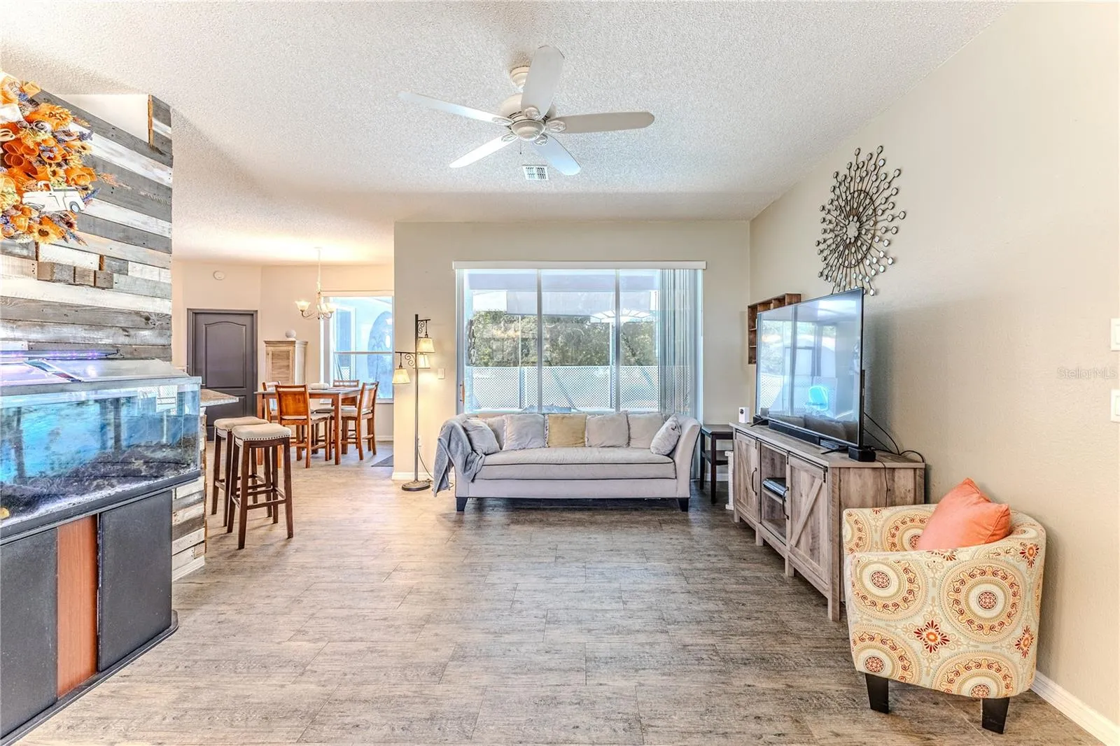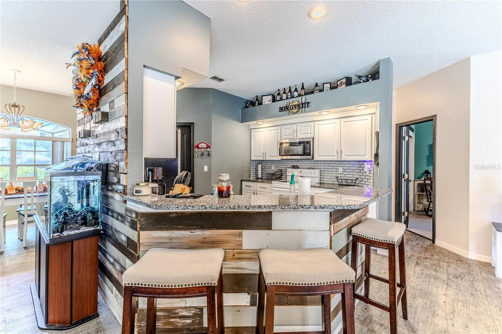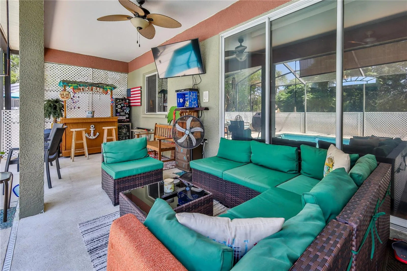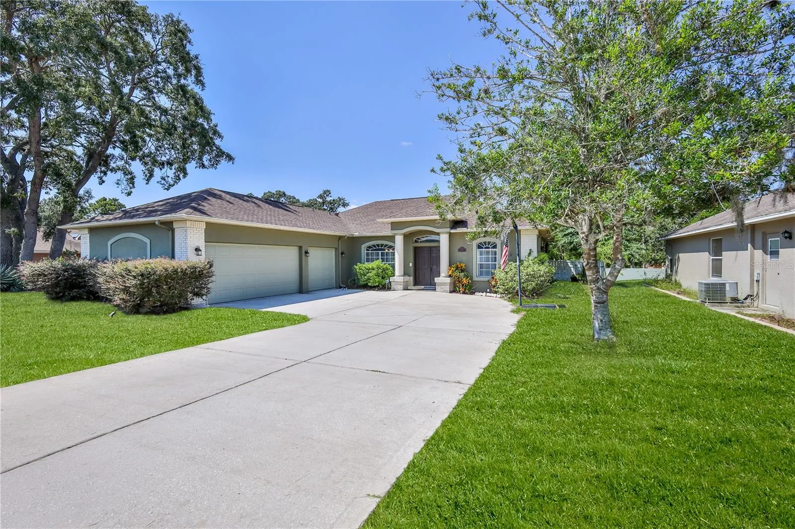 Welcome HOME! This Rustic charm , well maintained 4 bedroom 3 bath 3 car garage pool home has all you need. As you walk through the double entry doors you will love the rustic wood looking tile floors that run in main areas , and the wood featured decor wall . As you come into the kitchen you will notice the beautiful white kitchen cabinets , tiled backsplash and granite counter tops . Home also features an inside laundry room with a closet for storage, slider doors to let in light throughout home, a laundry tub, attic stairs in garage, and storm shutters. This home is a split bedroom floor plan,as the master bedroom has a walk in closet, and master bath that includes double sinks, and a snail shower . The double master bedroom which includes a bathroom is big enough to use as a den, office or entertainment area as it looks onto the pool . As you step into pool area you have a sitting area with plenty of shade and privacy with vinyl fence surrounding back yard. Pool features salt water system. Main items that have been done on home include : Roof 2022, AC 2018, salt system recently, fence 2019. This home is a repaired sinkhole home that is fully insurable and docs available.