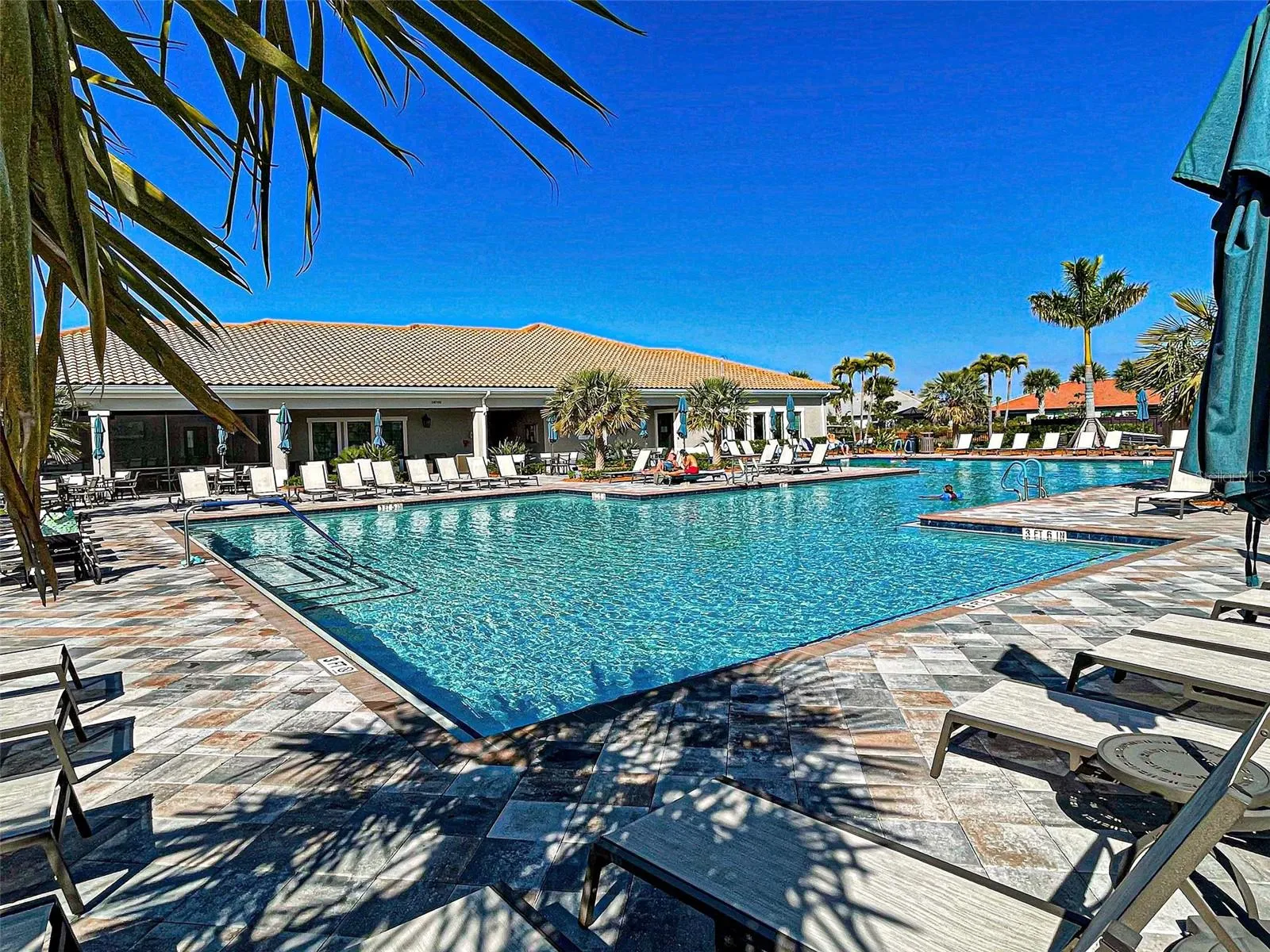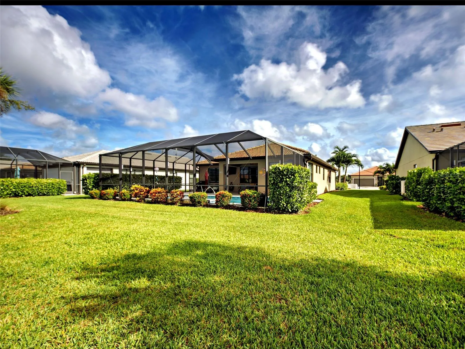 Stunning PARTIALLY FURNISHED Abbeyville POOL home in IslandWalk, boasting 1,800 sq ft, featuring a spacious open floor plan, abundant natural light, and a PREMIUM OVERSIZED LOT, with lovely WATER VIEW! The highlight of this property is the EXTENSIVE LANAI, offering OVER 1000 Sq Ft of OPEN AREA and 120 sq ft of COVERED AREA, ideal for al fresco dining! With a large (14×30 feet) HEATED AQUATECH POOL, a spacious SPA (8.4 X 8.4) and decorative STONE flooring, you will be able to relax and entertain all year round. The kitchen offers a LARGE ISLAND, ideal for cooking and casual dining, ample cabinetry, a built-in pantry, and is perfectly positioned adjacent to the dining room and the additional SUNROOM, that creates a flexible space for dining, reading, a playroom, or simply unwinding. The primary suite showcases a TRAY CEILING, a ceiling fan, a generous walk-in closet, and a beautiful en-suite bath with glass-enclosed walk-in shower. The guest bedroom features charming turret windows, bringing plenty of natural light in, a generous built-in closet, a ceiling fan, and it is paired with a full guest bath, including a bathtub with glass doors and a linen closet, providing additional storage. You’ll love the spacious laundry room equipped with white cabinetry, tile flooring and ADDITIONAL STORAGE CLOSET. The versatile flex room offers ideal functionality as a home office, den, or potential third bedroom. The garage features plenty of OVERHEAD RACKS FOR STORAGE and EPOXY FLOORING. The exterior of this home was freshly painted in 2024 and it is situated on a lot which is bigger than the usual size for this floor plan. For peace of mind, a 1 YEAR AHS HOME WARRANTY is offered to the new homeowners. All homes on Sayda Street were built on lots originally designated for estate homes, resulting in each home site being much larger. It’s conveniently located on a tranquil street, just two blocks away from the main resort center. Future connectivity to Manasota Beach Road (projected to be done by August 2026) will enhance this home’s already excellent accessibility. Residing in Islandwalk will give you a sense of resort-style living all year around since it is a very active community with rich amenities including geothermal pools, Har-Tru tennis, pickleball and bocce ball, lap pools, spas, playground, basketball court, a dog park, two State-of-the-Art Fitness Centers, a 24 hr staffed front gate, on site 7 day/week HOA staff, outdoor pavillions with BBQ grill, a library and much more that will keep you and your guests active and engaged. Golf carts are permitted throughout the community and can be taken out of the community if registered. Enjoy exclusive access through a resident-only back gate to the exciting Downtown Wellen Park, featuring a Marketplace anchored by Publix, Atlanta Braves ballpark, restaurants. Conveniently located just 4 miles from I-75, it offers easy access to multiple pristine Gulf beaches and airports. Historic Venice Island, and cultural events are just a short drive away.