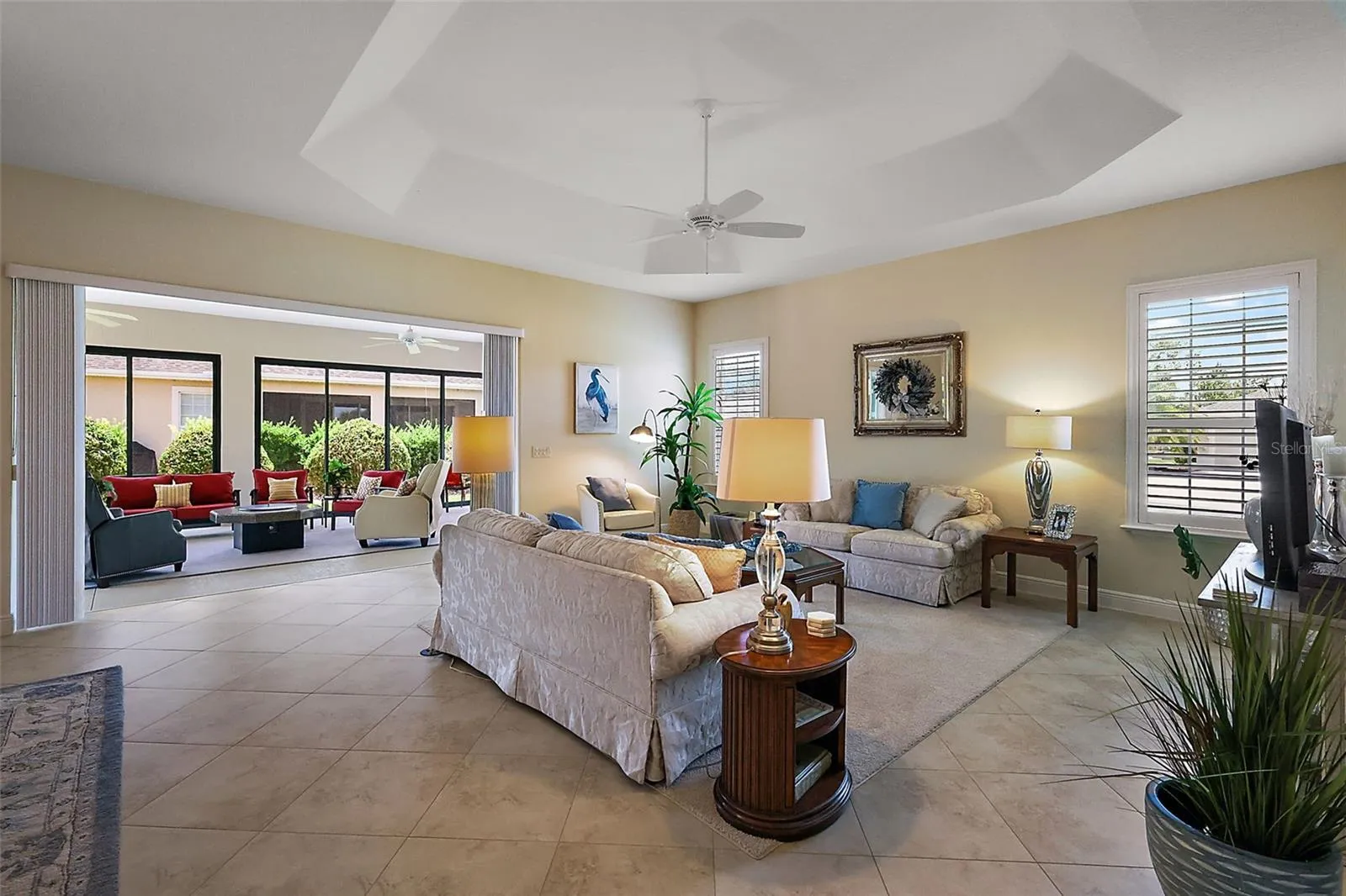 Experience PREMIER LIVING at its best in this EXQUISITE, ONE OWNER, 3/2 Natchez boasting an OVERSIZED (998 sq ft) full 3-CAR GARAGE, and an EXPANSIVE 30’ x 18’ enclosed lanai, situated on a .30 acre CORNER LOT with ROOM FOR A POOL and/or outdoor living addition, in an enclave all-PREMIER neighborhood of the village of Charlotte! BOND PAID! Includes a HOME WARRANTY! Enjoy the financial benefit of a BOND-FREE HOME – a $32,300 value PAID OFF early by the current owner! A FRESHLY PAINTED exterior, TROPICAL landscaping with CURVED walls, and QUAINT front porch welcome you in to this METICULOUSLY-MAINTAINED home. Step inside the beautiful LEADED-GLASS entry door with sidelight and retractable screen into the GENEROUS foyer. Setting a tone of PURE ELEGANCE throughout the ENTIRE home are 10′ ceilings, 8′ doorways, 5¼” baseboards, and PLANTATION SHUTTERS. The VOLUMINOUS, OPEN CONCEPT living and dining rooms showcase DIAGONAL TILED floors. ELEGANT columns add to the grandeur of the formal dining room while a 12′ TRAY ceiling adorns the living room. From these rooms, a DOUBLE set of POCKET sliding glass doors, invite you in to the EXPANSIVE 30’ x 18’ ENCLOSED LANAI featuring 10′ ceilings, FULL LENGTH sliding glass door panels, and solar shades. This FABULOUS ROOM offers 540sf of ADDITIONAL LIVING SPACE to this AMAZING home! The adjacent REAR PATIO with PRIVACY landscaping is ideal for grilling or simply enjoying the beautiful Florida weather! Back inside, the STUNNING kitchen features RICH WOOD cabinetry, GRANITE countertops, center ISLAND, STAINLESS appliances, WALL oven, BUILT-IN pantry, EAT-IN breakfast bar, and an ADJACENT DINETTE with DOUBLE arched windows for an ABUNDANCE of natural light. The LUXURIOUS primary bedroom features a 12′ TRAY ceiling, LVP flooring, and TWO CUSTOM WALK-IN closets. It’s en suite bathroom boasts TILED ROMAN STYLE WALK-IN shower, SOAKING TUB, RICH WOOD cabinetry with DOUBLE sinks and GRANITE counters, LINEN closet, and separate water closet. Near the front of the home, a POCKET DOOR separates two remaining bedrooms and additional bath by creating a PRIVATE guest wing and/or QUIET home office area. Bedroom two boasts a BAY window, HIGH ceiling, LVP floor, and a CUSTOM built-in closet. The second bathroom features a RICH WOOD vanity with GRANITE top, TILED tub and shower combination, and hall LINEN closet. Bedrooms three offers HIGH ceiling, LVP flooring and CUSTOM built-in closet. A centrally located interior laundry room features additional RICH WOOD cabinetry, TILE floors, shelving, and utility sink. Completing the package is the OVERSIZED (998 sq ft) full 3-CAR GARAGE, EPOXIED floors, ABUNDANT storage cabinets, and attic access stairs. ADDITIONAL UPGRADES include an alarm system and whole-house water softener. DON”T MISS the OPPORTUNITY to make this MAGNIFICENT HOME YOUR OWN! The Village of Charlotte is conveniently located between Brownwood Paddock Square and Lake Sumter Landing; Belle Glade, Bonifay, Havana, and Evans Prairie Championship Golf Courses and Country Clubs; Colony Cottage and Rohan Regional Recreation Centers; Charlotte Neighborhood Pool and Recreation Center; Sarasota Golf Academy and Practice Center; Sharon Rose Wiechens Preserve; Atlas Dog Park; Colony Shopping Plaza; and 466A with an abundance of shopping, restaurants, banks, medical, and more! PLEASE WATCH OUR WALKTHROUGH VIDEO of this EXCEPTIONAL HOME IN A FABULOUS LOCATION and call today to schedule your Private Showing or Virtual Tour!