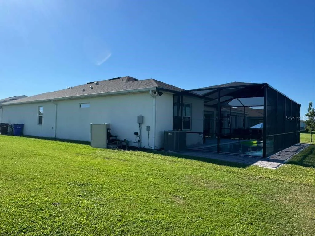 Welcome to this stunning modern single-family home offering the perfect blend of comfort, style, and relaxation. Featuring 3 spacious bedrooms and 2 full bathrooms, and a den perfect for an office. This home is designed with an open-concept layout that seamlessly connects the living, dining, and kitchen areas perfect for entertaining and everyday living. Step outside to your private screened-in pool and patio area, where you can lounge under the sun, enjoy a swim, or simply take in the breathtaking lake view right from your backyard.