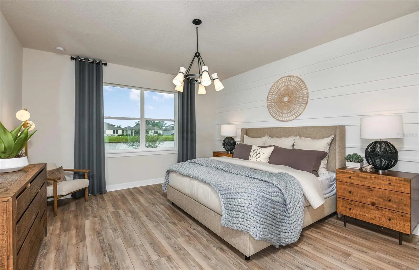 The bathrooms have white cabinets and quartz countertops, dual sinks in the Owner’s bath and walk-in shower. There is luxury vinyl plank flooring in the main living areas and flex room, 18”x18” tile flooring in the bathrooms and stain resistant carpet in the bedrooms.