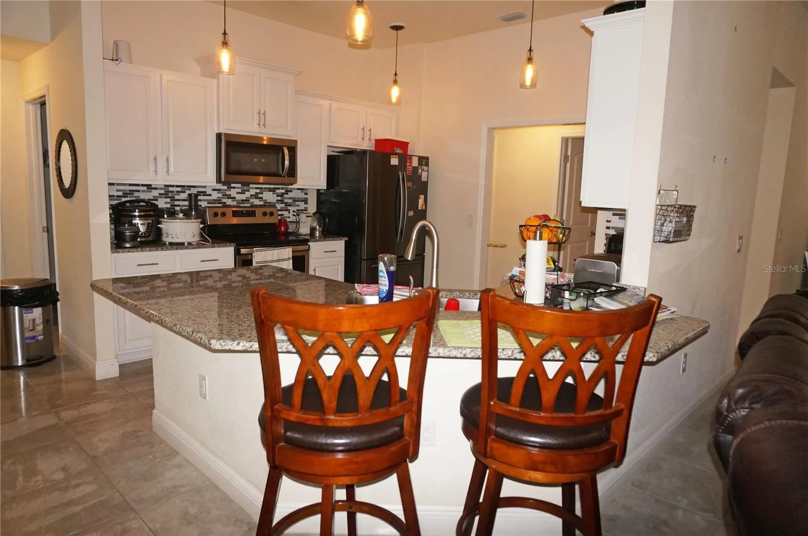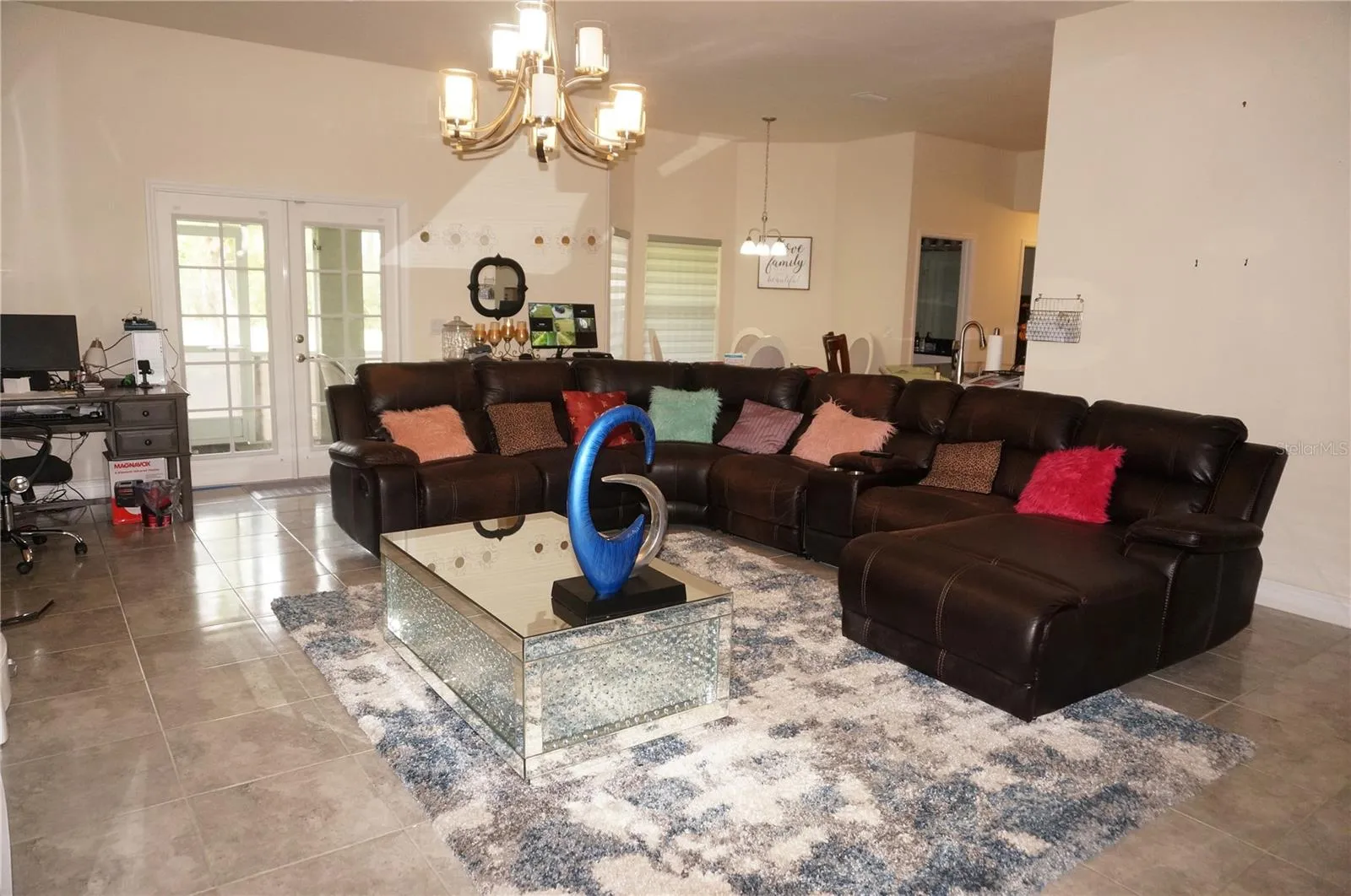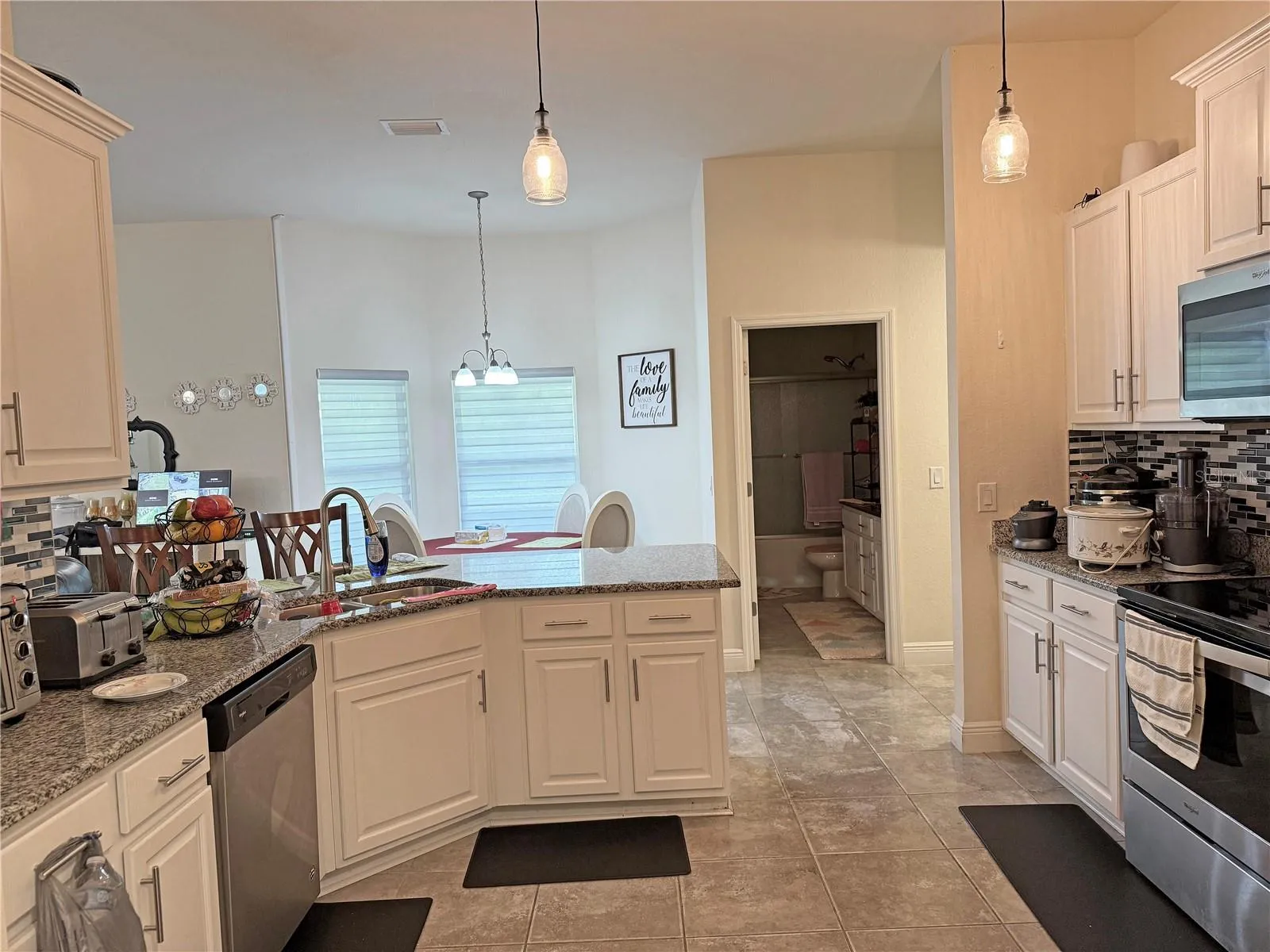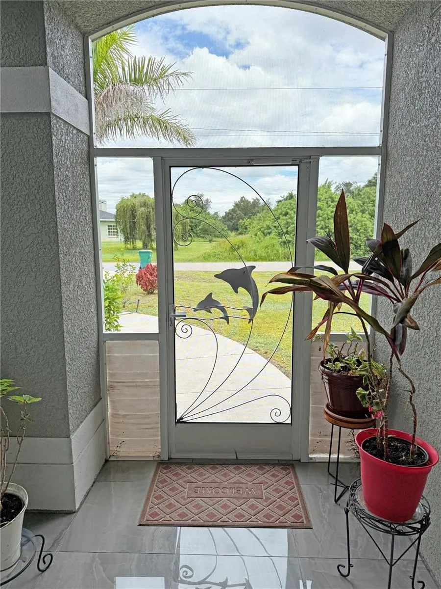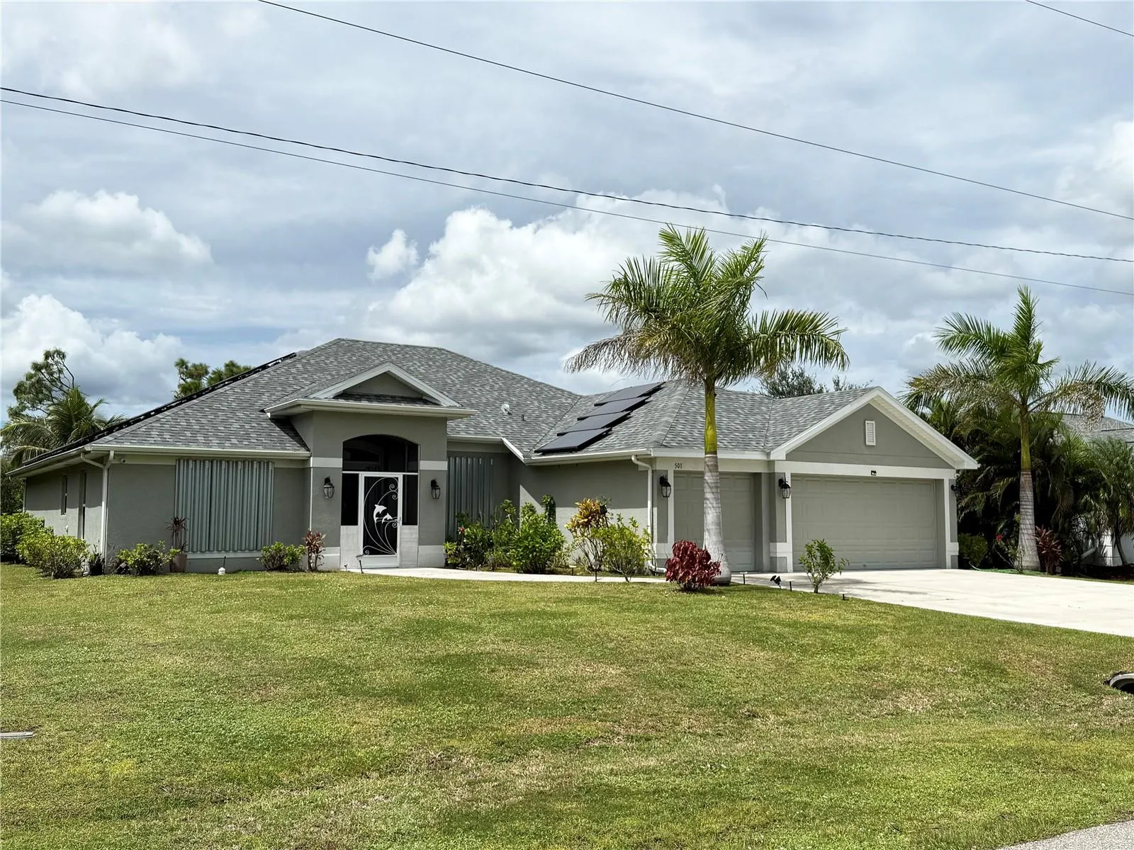 Impressive 4 Bedroom, 3 Bathroom home with attached 3 Car Garage located in desirable deed restricted DEEP CREEK. This spacious light and bright home offers an open and split bedroom floor plan with Great Room, separate Dining Room, large Den, well appointed Kitchen, Inside Laundry Room and 23×9 screened covered lanai. The Great Room features French doors to the screened lanai, plant shelves, tile flooring and access to the separate dining room. The Kitchen offers white cabinetry, tile backsplash, granite counters, breakfast bar, pantry closet, dining area and stainless appliances. Appliances include: French door refrigerator, oven/range, built in microwave, dishwasher. There is also a disposal and a double sink. The Inside Laundry has a washer, dryer and chest freezer. The spacious Master bedroom suite features lanai access, two walk in closets and private bathroom with garden tub, his and hers sinks and walk in shower, There are 3 additional bedrooms with double closets and two additional full bathrooms- one with access to the screened lanai. Enjoy your morning coffee on the screened covered lanai with greenbelt view. Other features include: hurricane shutters, transom window over the front door, irrigation system, NEW ROOF 2023. NOT in a flood zone. This home is minutes from golf, shopping, dining, I-75, entertainment, medical care, waterfront parks. This is perfect for a family or those expecting lots of winter visitors.