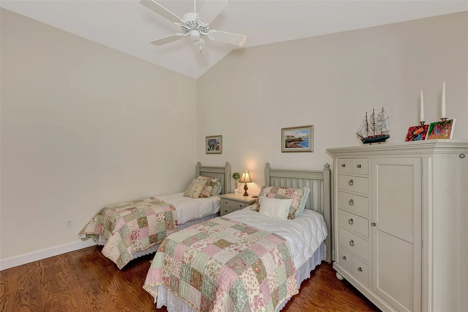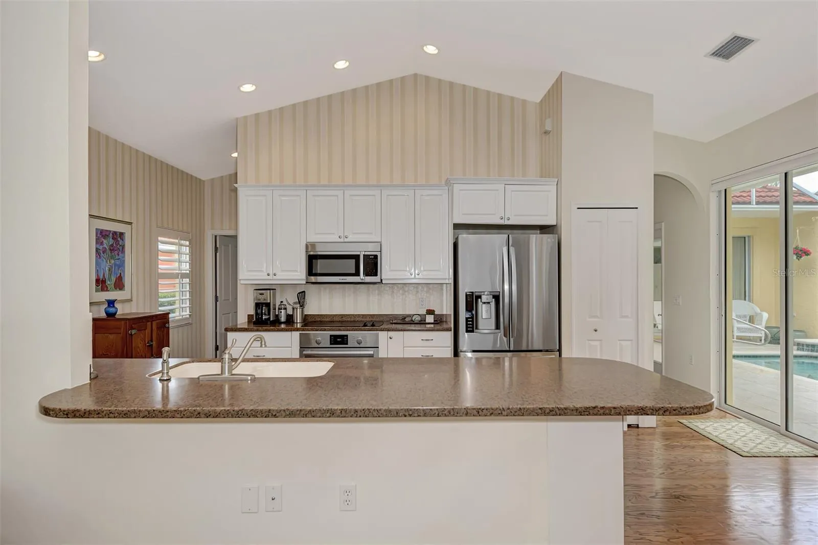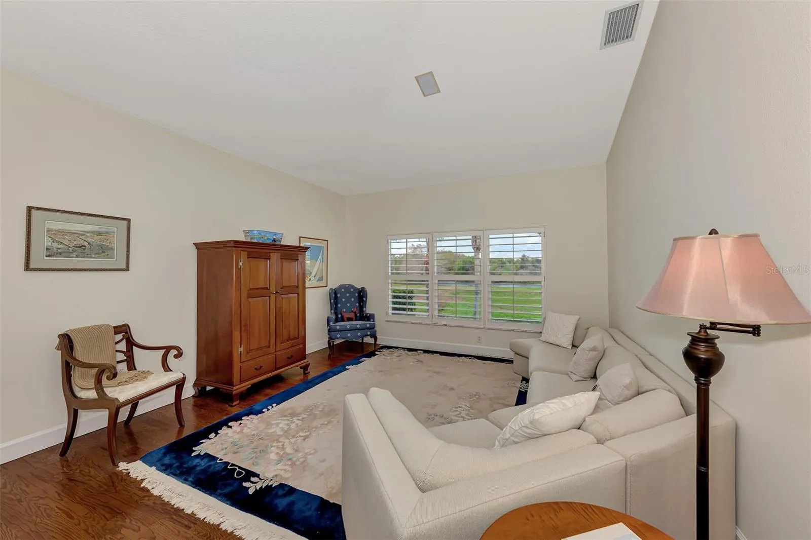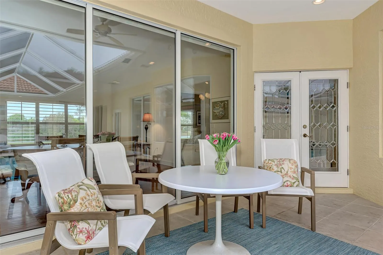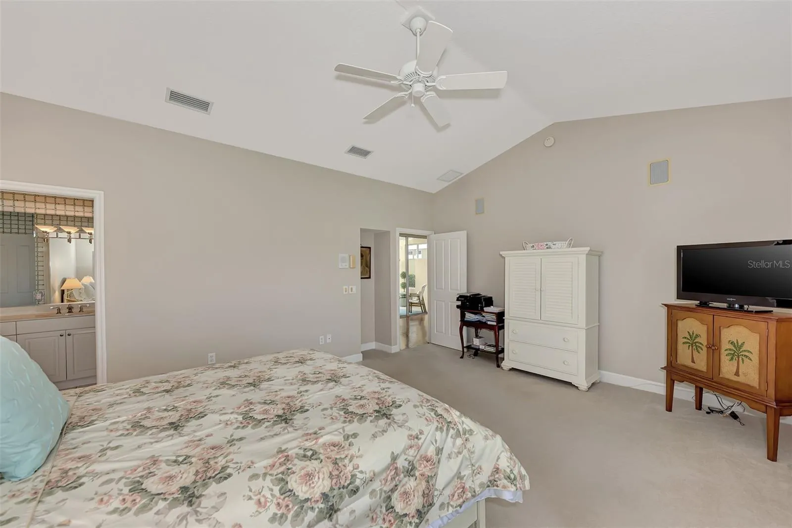 Welcome to your dream home, nestled within the exclusive, gated community of TPC Prestancia Golf and Social Club—a 565-acre oasis of luxury, world-class golf, and serene Florida living. Located in the highly coveted Valencia section, this charming, maintenance-free courtyard-style residence offers over 2,100 square feet of elegant living space, complete with a private pool featuring a soothing waterfall and lush, tropical landscaping. It’s the ideal setting for both tranquil relaxation and entertaining guests. This exceptional home includes a private casita, perfect for guests, family, or versatile use as an exercise studio or home office. With natural light pouring in, a full bathroom, and its own private entrance, the possibilities for this unique space are endless. As you enter the main home, you’re immediately greeted by a bright, welcoming courtyard that sets the tone for the meticulous attention to detail throughout. The open, airy living areas boast high ceilings, beautiful wood floors, and expansive windows that flood the home with natural light while framing peaceful views of the greenbelt and lake / creek. The spacious gourmet kitchen is a true chef’s delight, featuring top-of-the-line stainless steel appliances, generous counter space, and a breakfast bar, all overlooking the oversized family room and dining area. A cozy breakfast nook, highlighted by an aquarium window, provides the perfect spot to savor your morning coffee while enjoying nature’s beauty. The owner’s suite is a private retreat, offering panoramic views, plantation shutters, and a spa-like bath with double vanities, a soaking tub, a walk-in shower, and a generously sized walk-in closet. The split floor plan provides privacy for guests, with a spacious guest room and a full bathroom that conveniently doubles as a pool bath. Additional amenities include a two-car garage, laundry room, and abundant storage space, seamlessly blending practicality with luxury. TPC Prestancia offers optional memberships for golf and social activities, providing access to 36 holes of championship golf, fine dining, and a calendar of engaging social events. The home’s prime location offers unparalleled convenience, with the world-renowned Siesta Key beaches just minutes away, as well as downtown Sarasota, dining, shopping, and the newly extended Legacy Bike Trail. With easy access to I-75 and Sarasota’s airport, this is the perfect setting for both relaxation and adventure. This maintenance-free, luxurious courtyard home at TPC Prestancia is a rare find where comfort, style, and Florida living converge. Call today to schedule your private tour and experience the lifestyle you’ve always dreamed of!