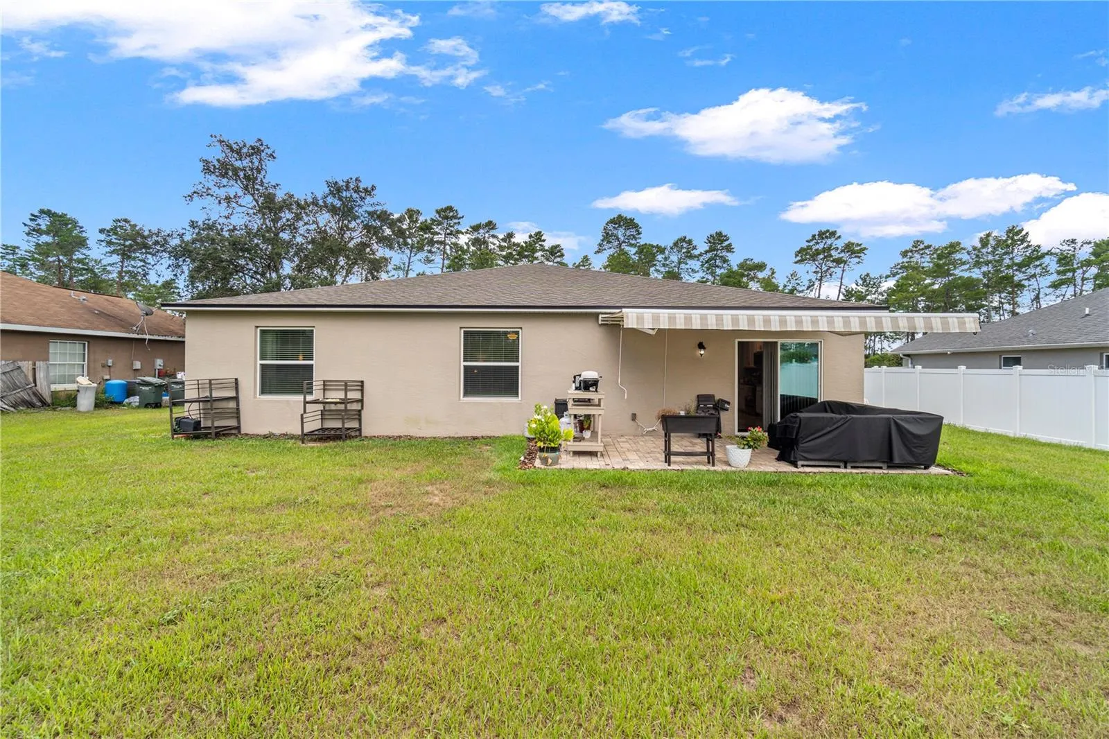 Welcome to 3697 SW 128th Place, a stunning residence nestled in the heart of beautiful Ocala, Florida. Built in 2020, this home boasts a modern and open floor plan, perfect for both relaxation and entertaining. The interior is beautifully decorated, featuring elegant granite countertops that add a touch of luxury to the space.