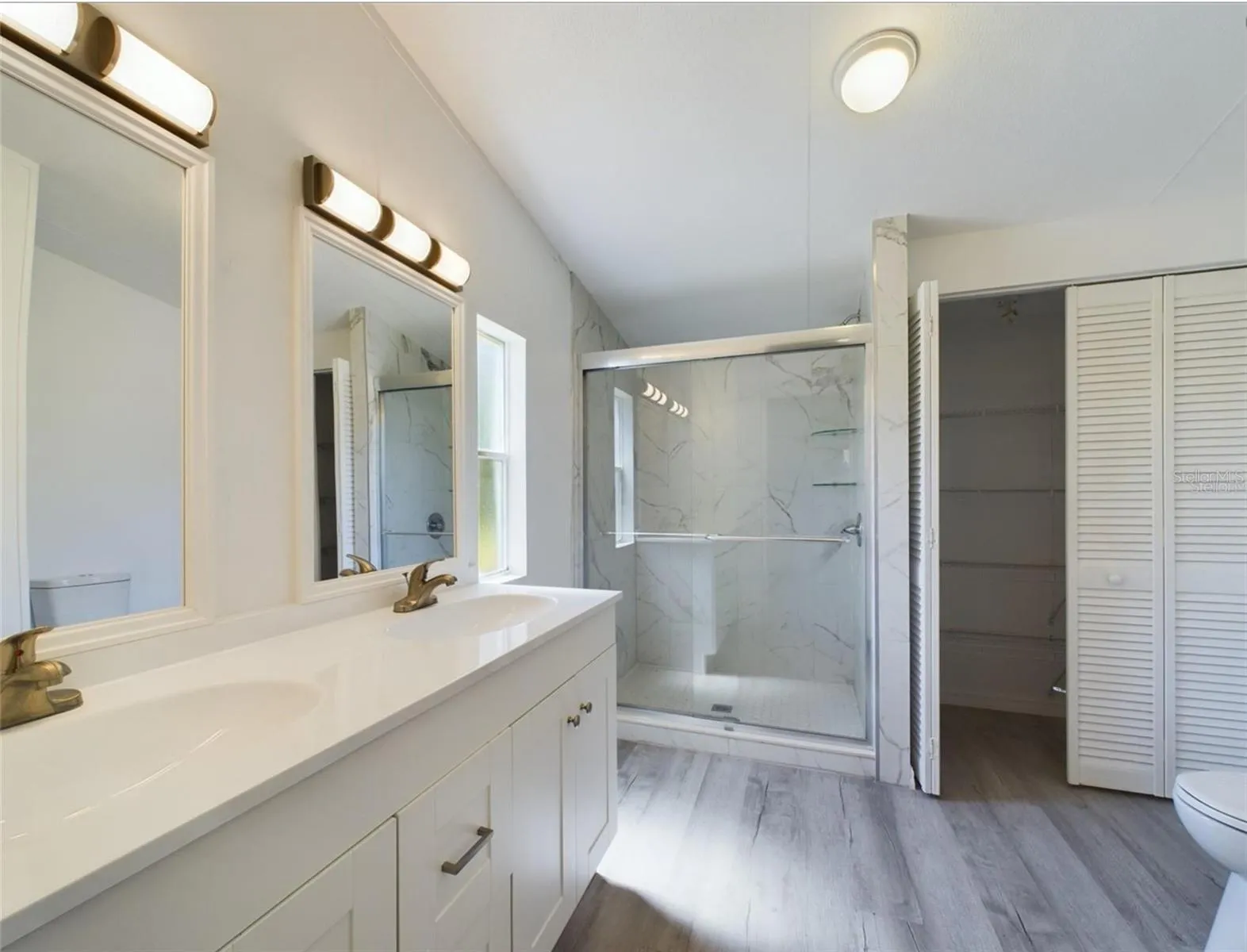 A paved private entrance leads you to the beautifully remodeled mobile home, complete with a welcoming front porch ideal for enjoying sunsets while watching your horses graze. Inside, you’ll find three bedrooms, two bathrooms, all with laminate flooring, plus a modern kitchen featuring granite countertops.