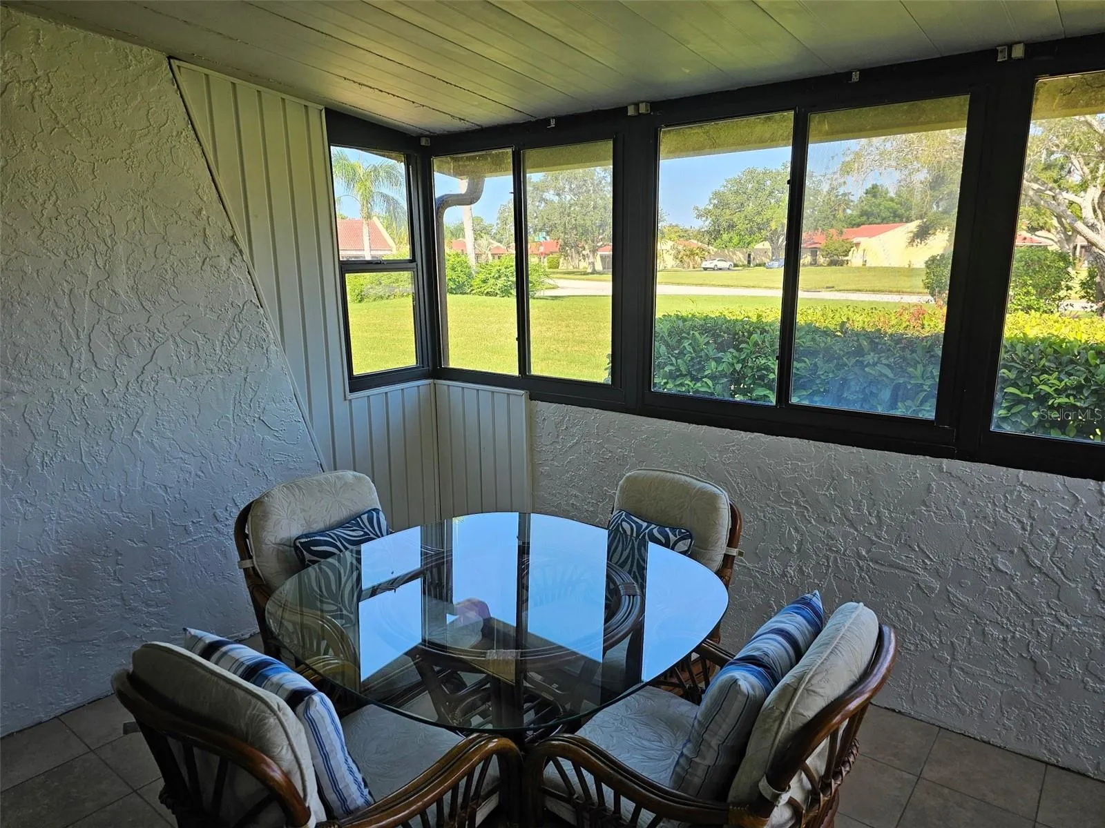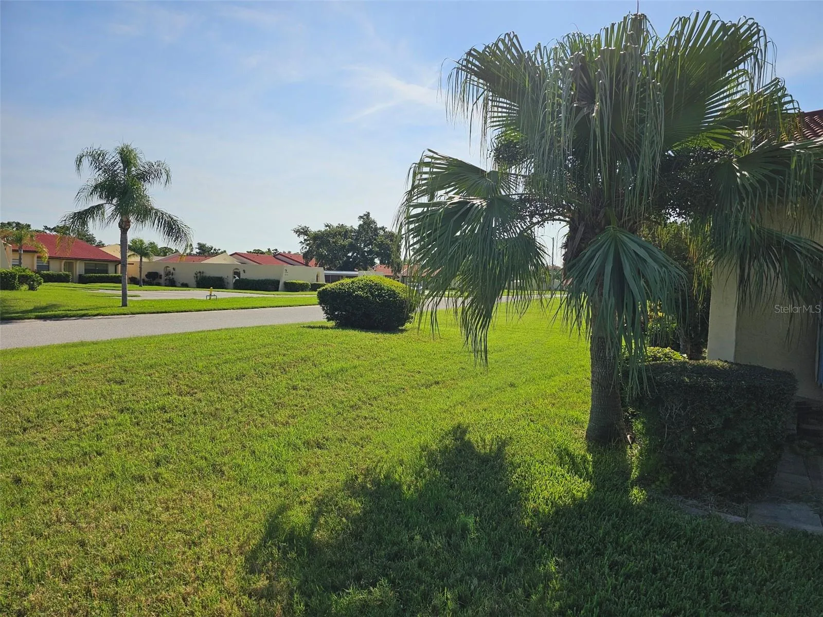 Welcome home to this inviting 2-bedroom, 2-bath corner villa, perfectly situated on a desirable corner lot in a vibrant 55+ community. Step inside and you’ll immediately appreciate the open, airy feel created by high ceilings, elegant crown molding, and a stylish tray ceiling in the main living area. The spacious living/dining combination flows seamlessly into the well-appointed kitchen, where granite countertops, a full-size washer and dryer, and abundant cabinetry make everyday living a breeze. Tile flooring runs throughout the home for easy maintenance, while large windows bring in plenty of natural light. The primary suite offers a serene retreat with a walk-in shower featuring a built-in seat, while the guest bath offers a convenient tub/shower combo. Enjoy your morning coffee in the enclosed patio or soak up the Florida sunshine on your private open-air patio. A detached 1-car carport is also included. This friendly community offers a clubhouse, heated swimming pool, tennis, shuffleboard, and pickleball courts. You’re just minutes from shopping, restaurants, medical facilities, and only a short drive to our beautiful Gulf Coast beaches.
