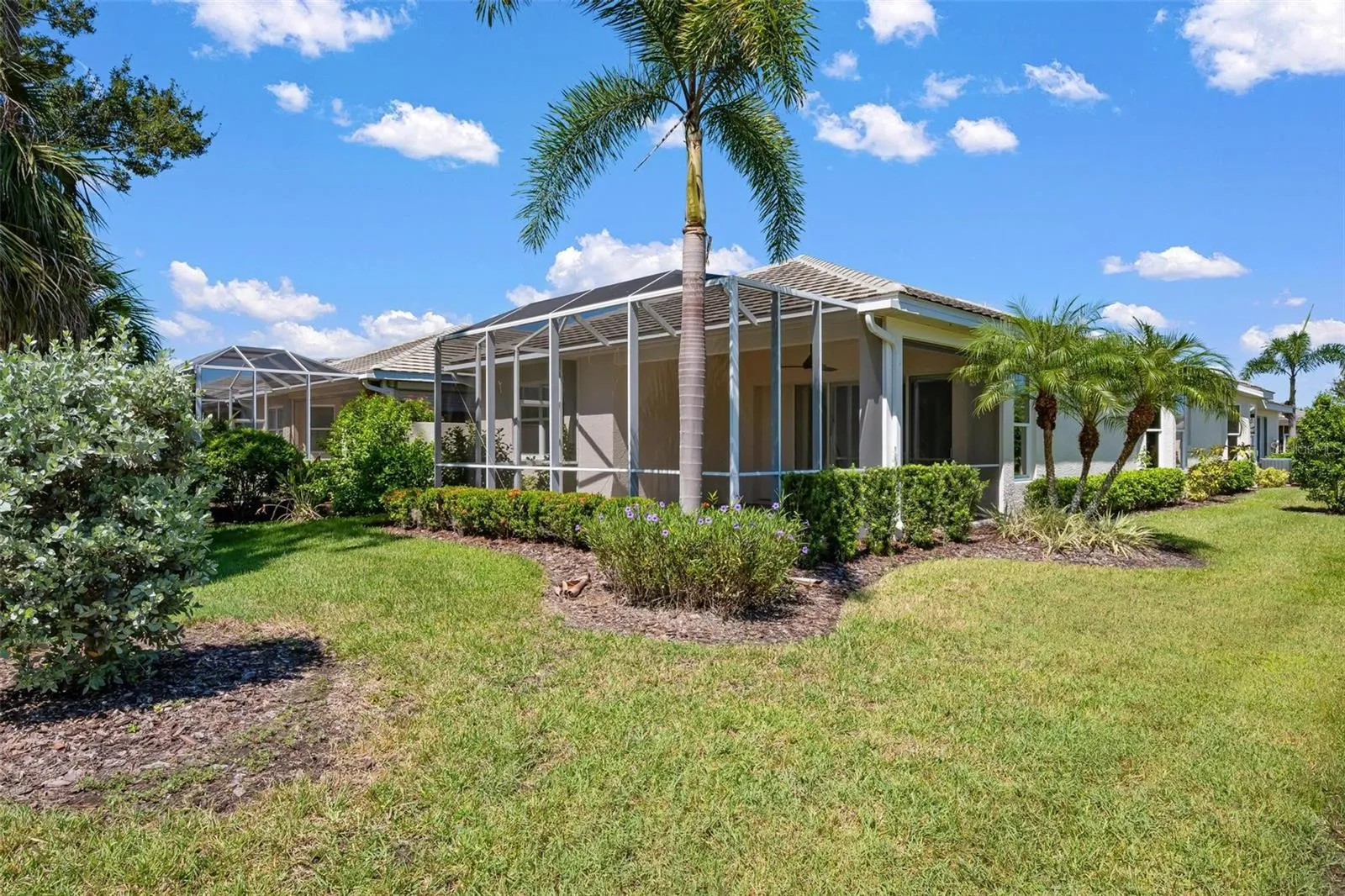 Lovely maintenance-free home in St. Andrews East in “The Plantation Golf & Country Club”. Discover worry-free living in this spacious free-standing villa. Roomy kitchen, granite countertops, stainless appliances &, built-in oven. cozy breakfast nook bathed in natural light. Luxurious primary suite featuring dual walk in closets with double sinks, and a large walk-in shower. A flexible layout with split floor plan ensures guest privacy. The second bedroom includes an ensuite bath and walk in closet, while the third bedroom/den/office offers versatile space with a full closet.. Elegantly designed with tray ceilings, crown molding and stylish lighting creates a serene inviting atmosphere. An expansive lanai nearly 800 sf perfect for entertaining or relaxing. HOA fees cover exterior, roof reserves, exterior painting, roof, lawn care, pest control, high speed internet, community pool, clubhouse and management. The Plantation membership is an optional membership with two 18-hole championship golf courses, 13 Har-Tru tennis courts, six pickleball courts, bocce ball, a fitness center, Jr Olympic pool and exceptional dining and activities. Prime location near Gulf Beaches, Wellen Park, Downtown historic Venice, dining, shopping and easy highway access.