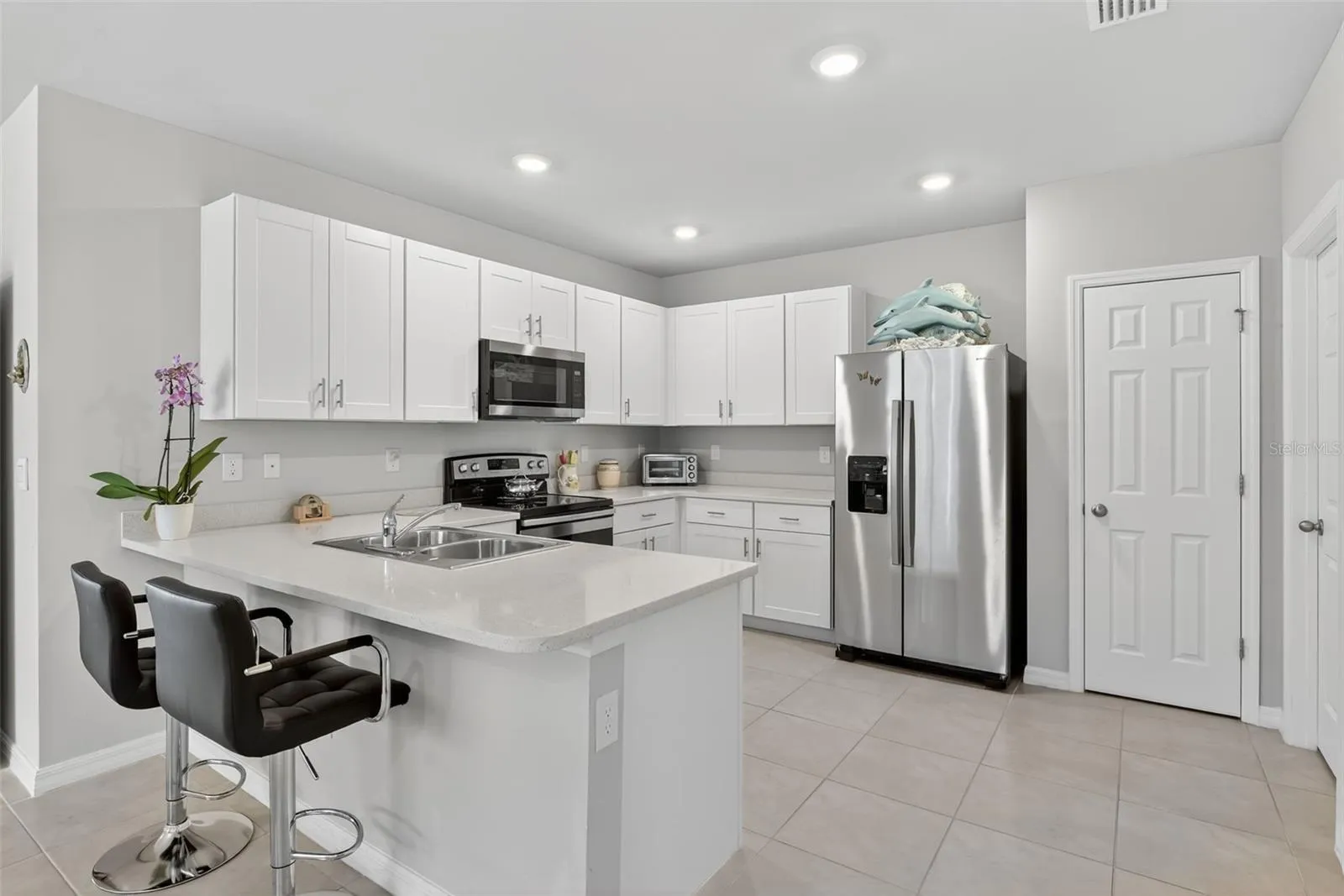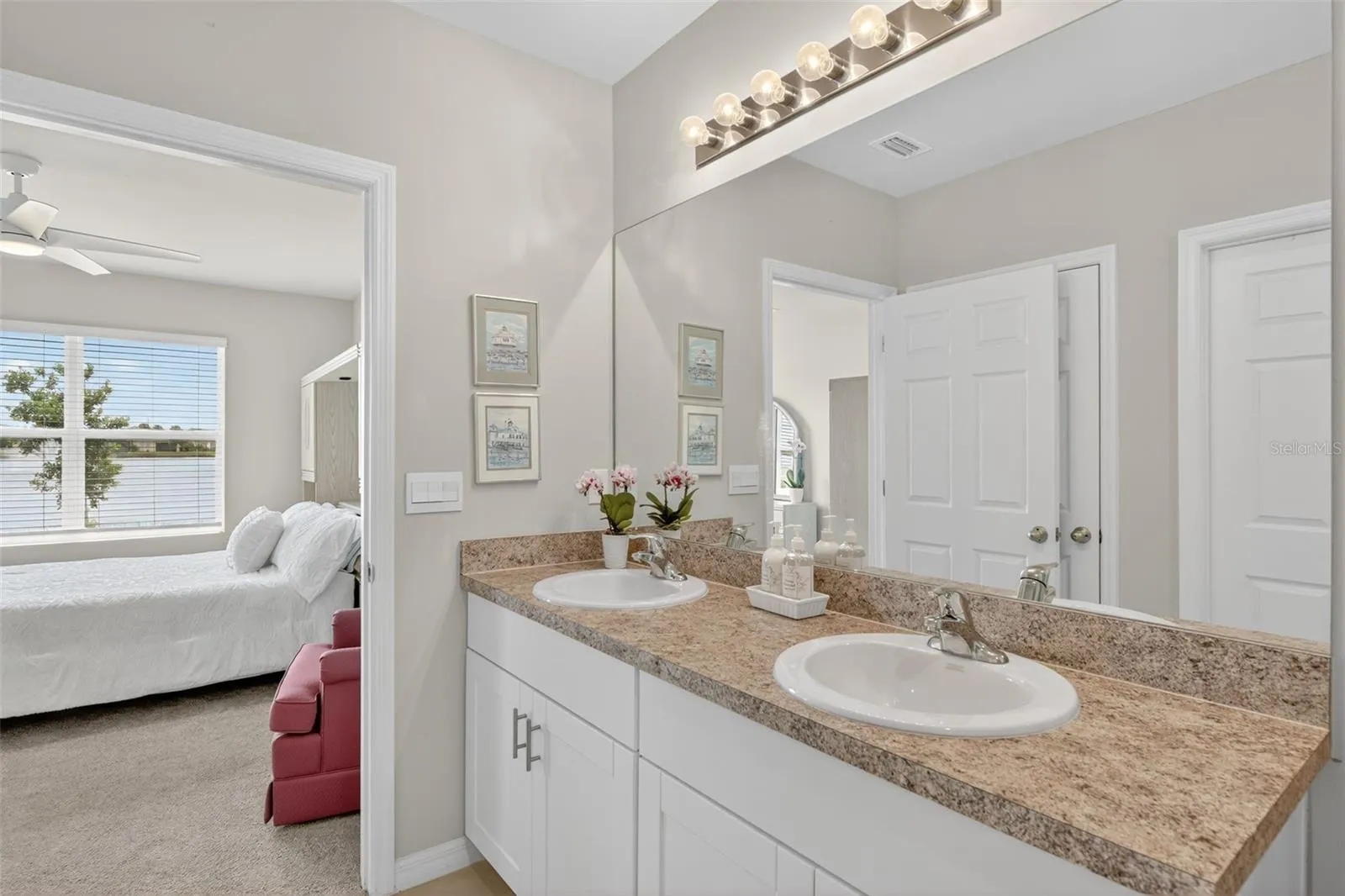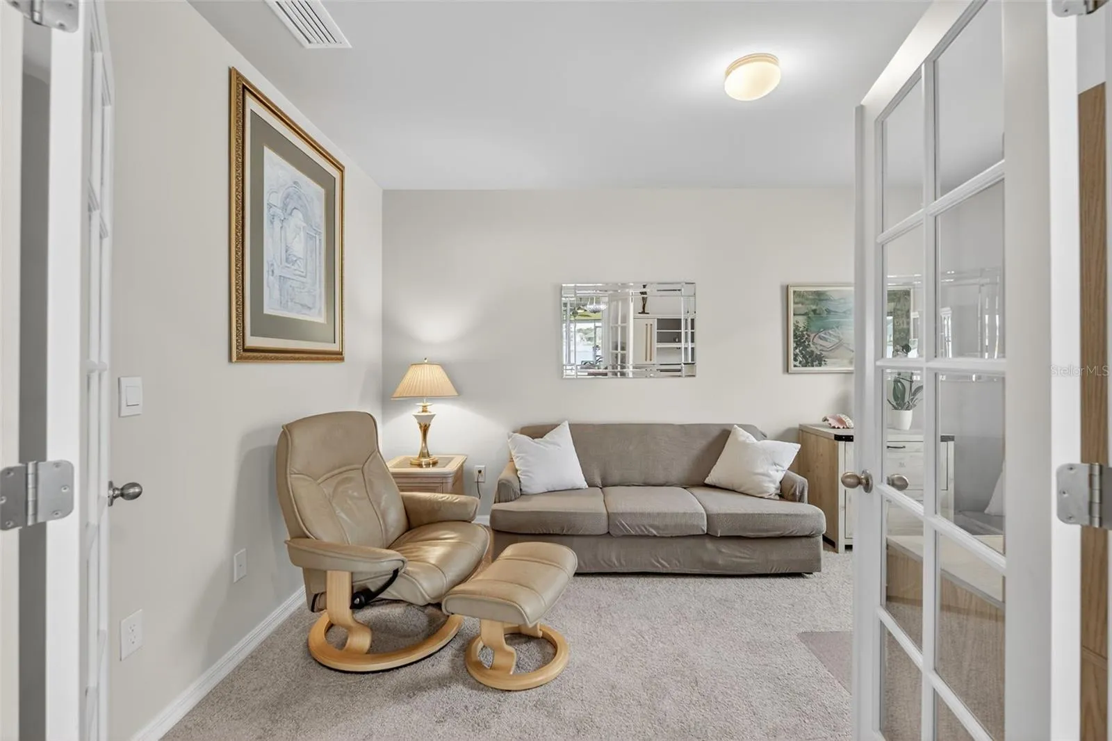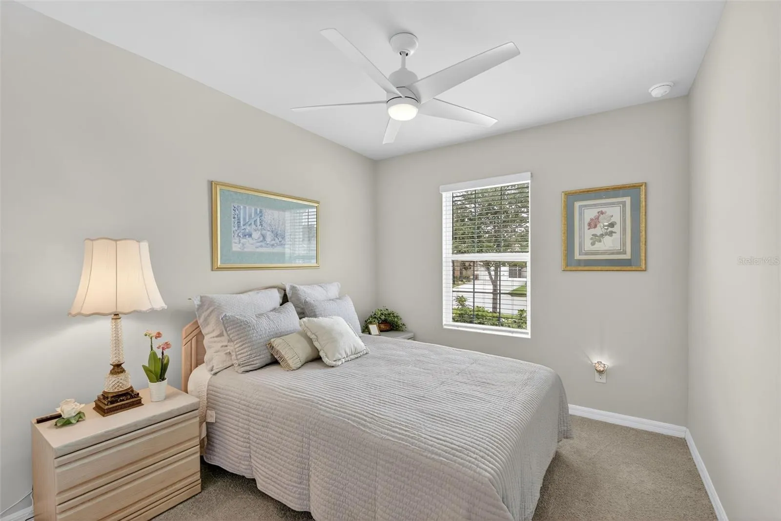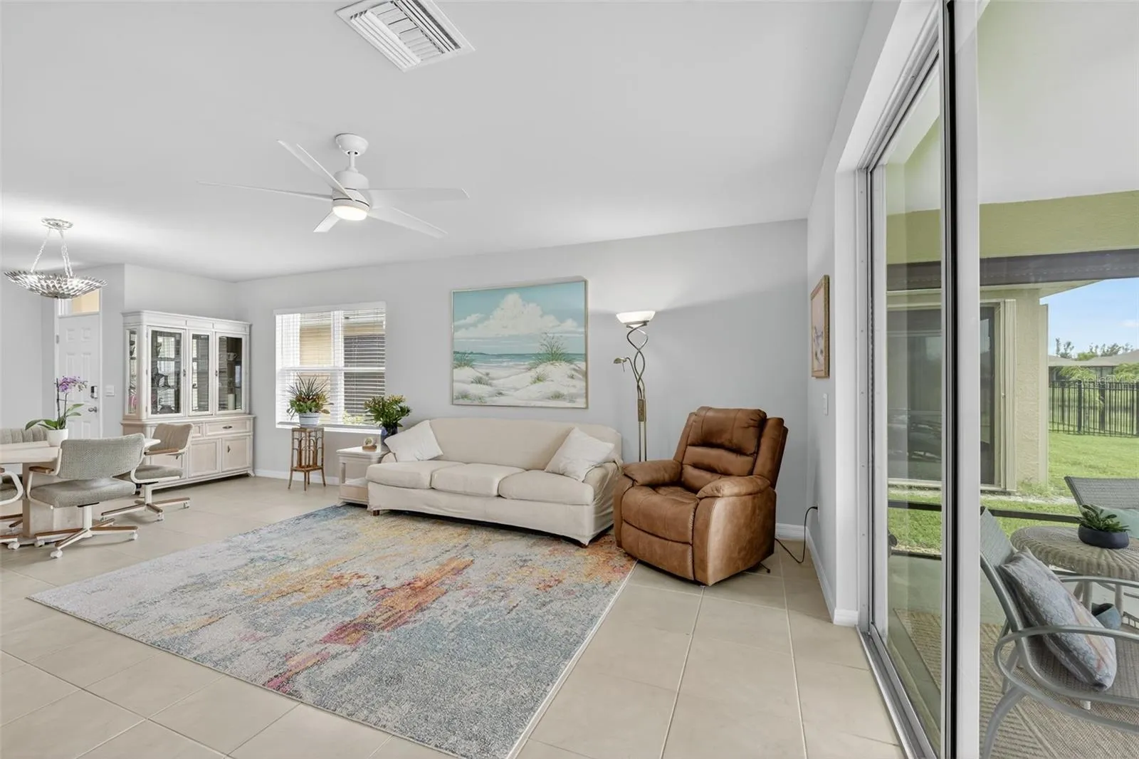 Waterfront Villa!! Delightful Waterford Estates Villa built in 2022, 2 bedroom 2 bath plus a den, fully furnished turn-key home offers perfect blend of comfort and convenience while enjoying the Southwest Florida Lifestyle. The split-bedroom floor plan ensures privacy while the open-concept kitchen featuring quartz countertops, stainless steel appliances, abundant shaker style cabinetry, and a casual eat-in kitchen counter- ideal for entertaining or everyday living. Enjoy peaceful mornings or relaxed evenings on the screened in lanai overlooking tranquil lake and fountain views. Inside, the home boasts tile flooring throughout the main living areas with the carpeted bedrooms for added comfort. The den offers flexible space perfect for home office, reading room, or guest space with French Doors. Couches are pull out sleeper sofas. So many added highlights include: 2 car garage, accordion and newly installed roll down hurricane shutters on Lanai, separate laundry room, lots of room for storage. Located in a gated community with with resort style amenities, including 2 pools, a clubhouse, billiard room, fitness room, card room, lounge area, shuffleboard, pickleball. Move right in-this home is being sold fully furnished. Property is located in the vibrant city of Punta Gorda, within close proximity to restaurants, Fisherman’s Village and cultural events.