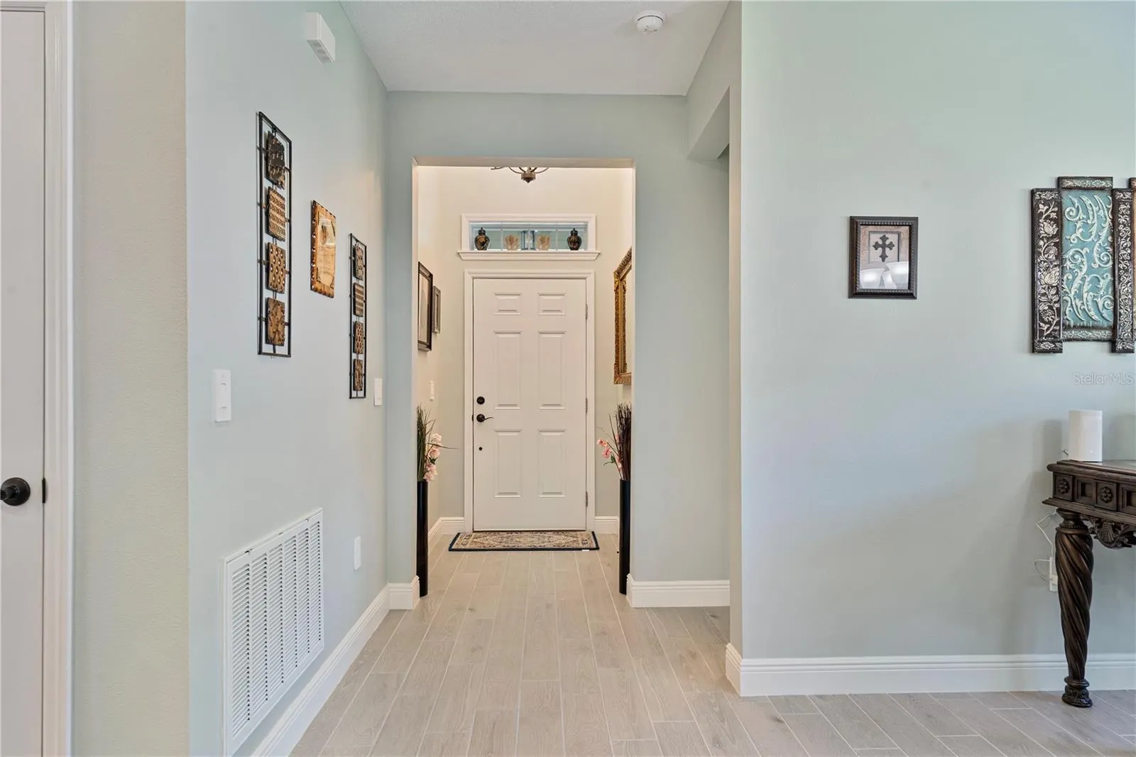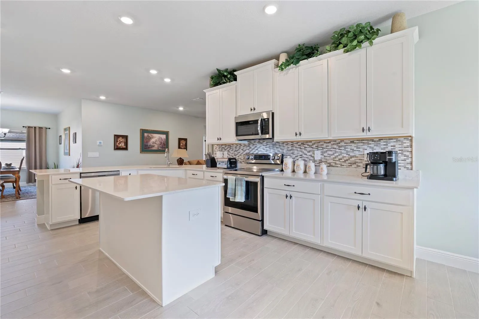 Improvements completed by seller: Matching ceramic tile extended to the lanai, upgraded bathroom tile around soaking tub, pull-down stairs for additional storage in garage, professionally painted in warm colors, tiled backsplash in kitchen, additional landscaping, and an irrigation well. Come see all this property has to offer.