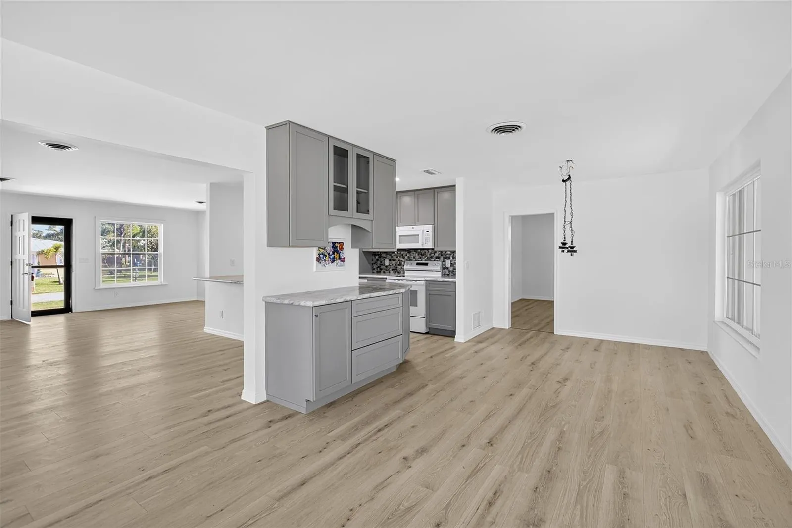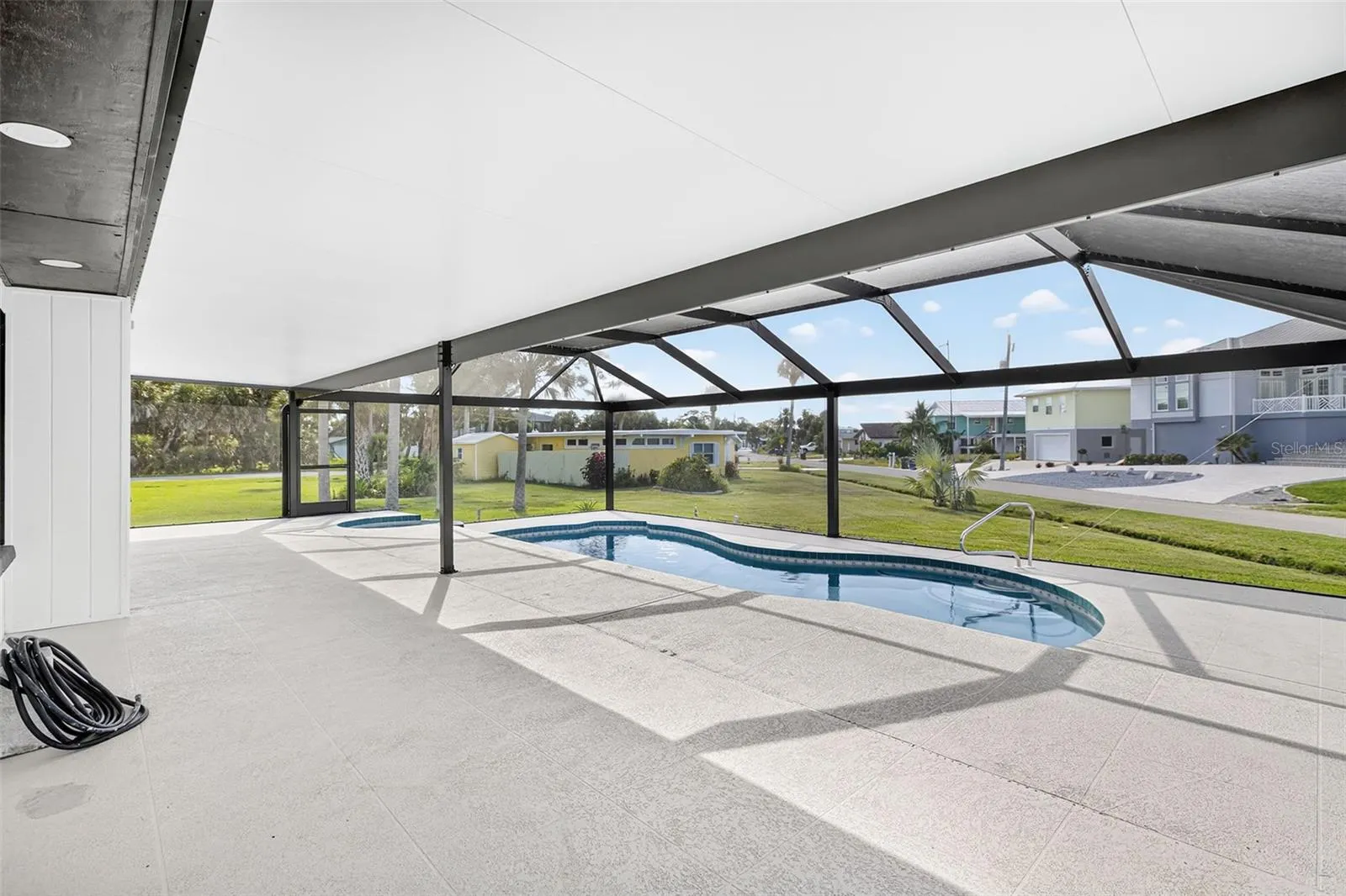 Step inside and discover a completely transformed interior with new flooring, a brand-new kitchen, and two updated bathrooms, all featuring modern fixtures and finishes. A new hurricane slider door opens to your private backyard oasis, where a recently lined gunite inground pool, with a depth of 8′, new pool mechanics and a relaxing Jacuzzi await. The addition of an outdoor shower makes rinsing off after a swim a breeze.