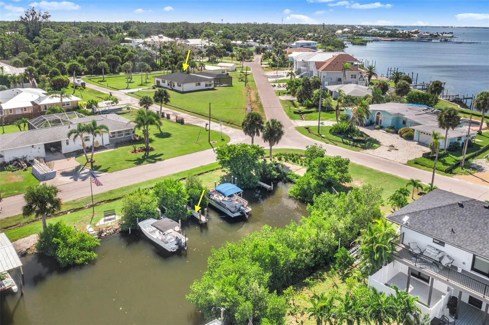 One or more photo(s) has been virtually staged. There is the possibility of owner financing. Be sure to watch the video. It is a drone tour of the external property and it’s relationship to Lemon Bay. Then, experience the best of Florida living in this stunning, fully renovated home. This house has been meticulously updated from top to bottom, ensuring a lifestyle of comfort and convenience. Just across the street from spectacular Lemon Bay, this property has two private, owned boat slips at the deeded wooden dock. The new roof includes solar panels, allowing for extremely low monthly electric bills.