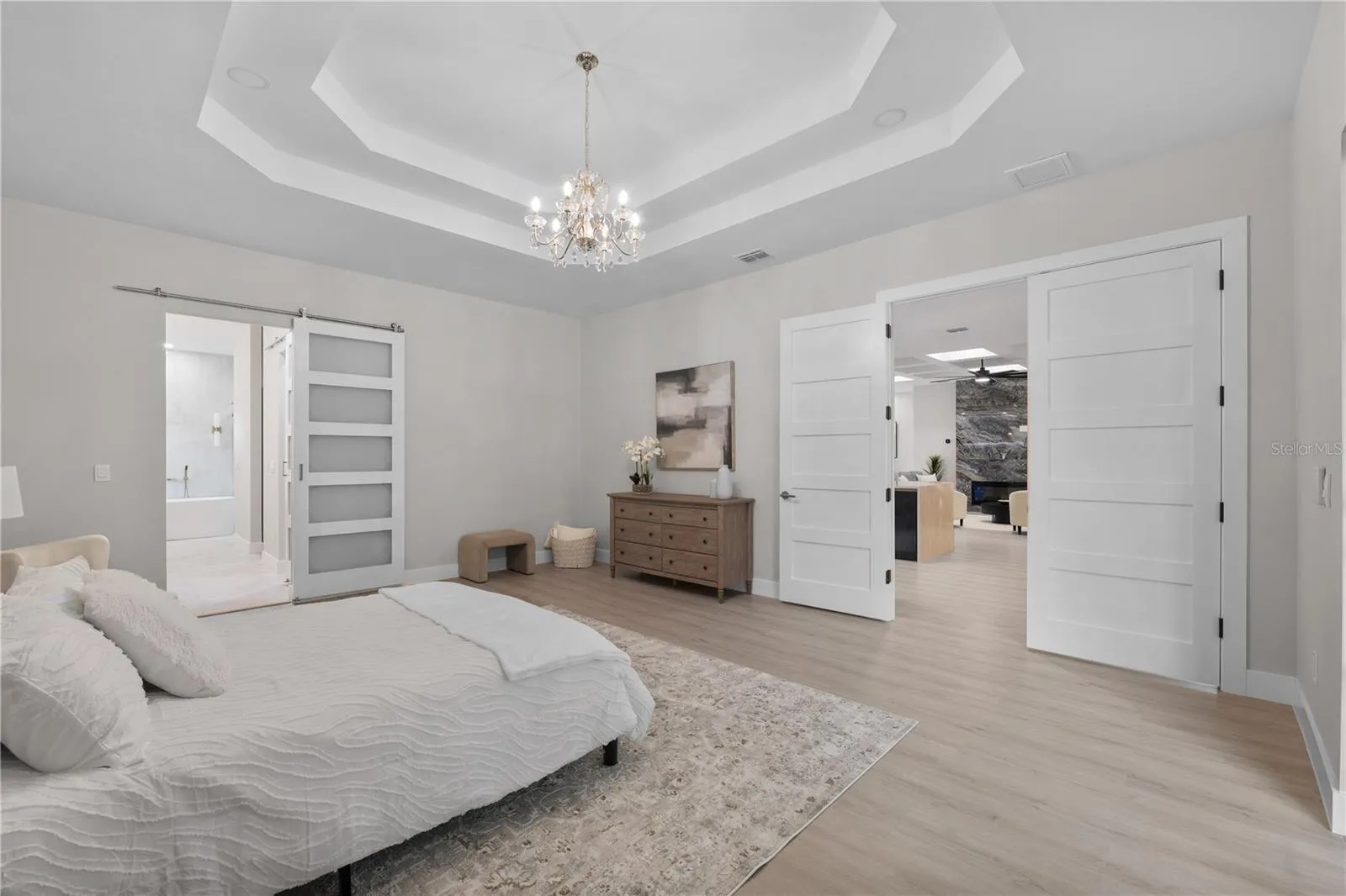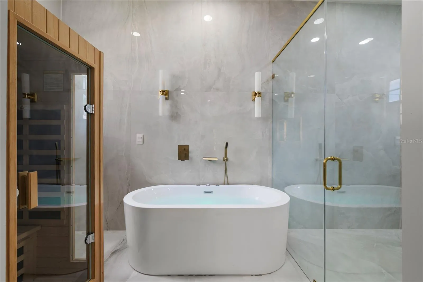 The kitchen is sleek and contemporary, featuring built-in appliances that keep the space looking clean and modern. The primary bathroom is a true retreat, complete with a jacuzzi and private sauna—your own personal spa.