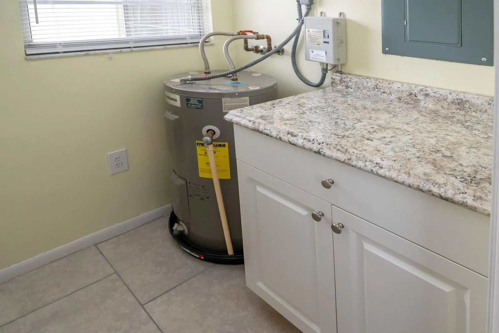 The kitchen, updated in 2020, includes newer cabinetry, countertops, backsplash, stainless steel appliances, and a garbage disposal. Just off the kitchen, the laundry room is equipped with a washer and dryer installed in 2020, as well as cabinetry and countertop space for storage and folding. Additional improvements include a new electric panel box, a water heater that is four years old, and an air conditioning system that is six years old. The living and dining areas feature luxury vinyl flooring, while tile extends through the kitchen, bathrooms, laundry, and lanai, creating a carpet-free home that is easy to maintain. The primary suite includes dual wall closets and direct access to the lanai, while the guest bedroom and hallway provide additional storage with a clothes closet and linen closet.