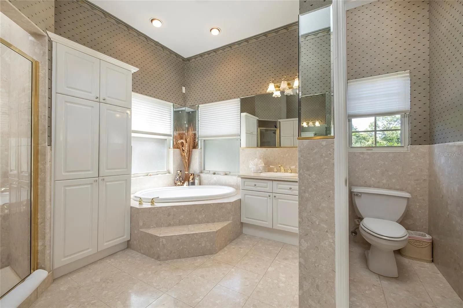 Designed with versatility in mind, the home features two distinct wings joined by a remarkable custom, high-tech bookshelf that opens by key fob. Closed, it’s a sophisticated architectural statement; open, it reveals the West Wing with a formal living room, library/guest suite, large private office with extraordinary water views, elevator, and a dramatic staircase leading to the second primary suite. This third floor primary suite with elevator access offers westward water views, a fully remodeled spa bath with soaking tub, walk-in steam shower, and dual vanities and dual walk in closets.