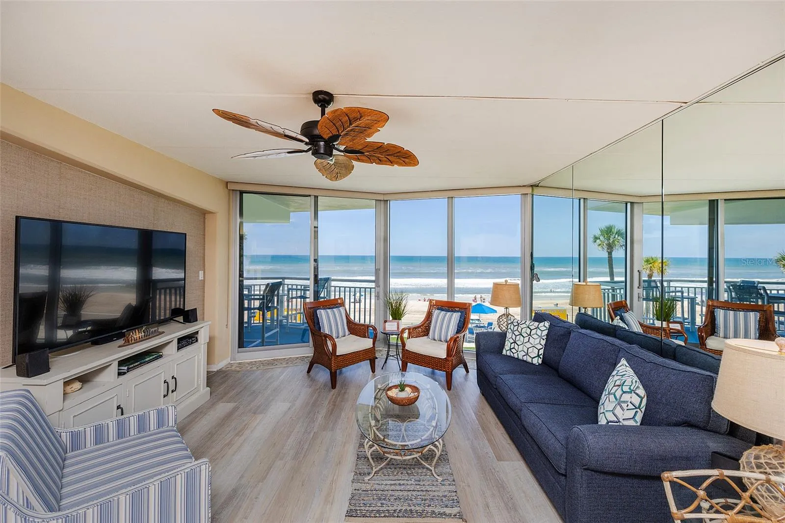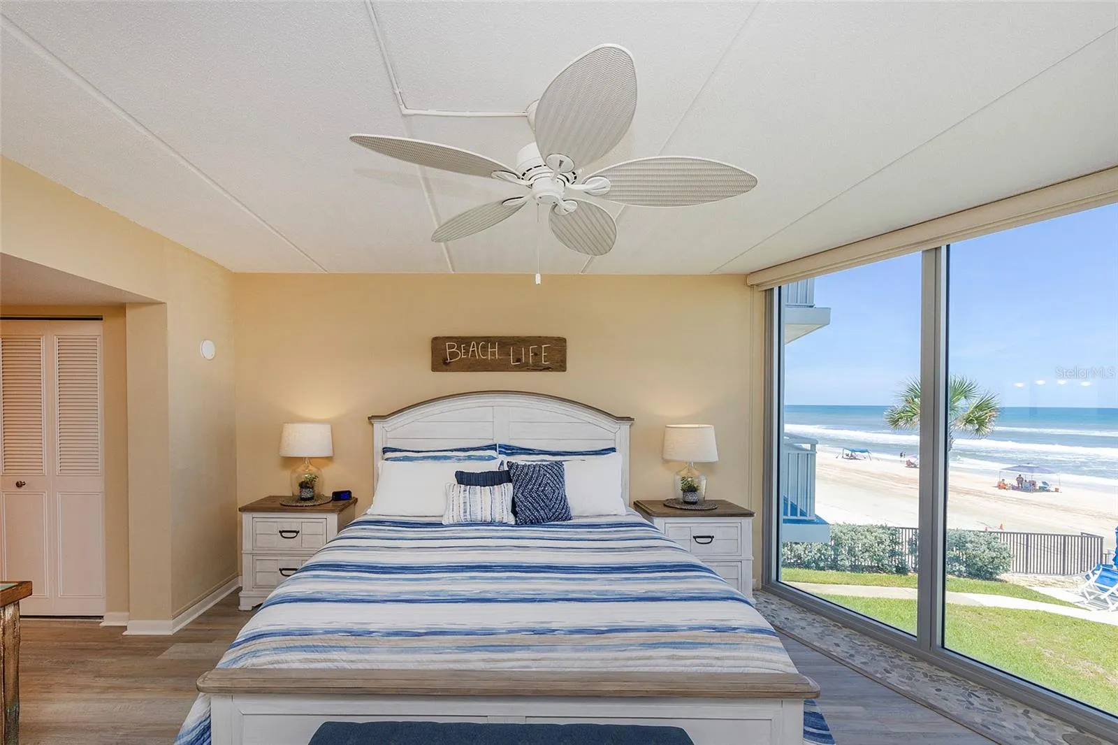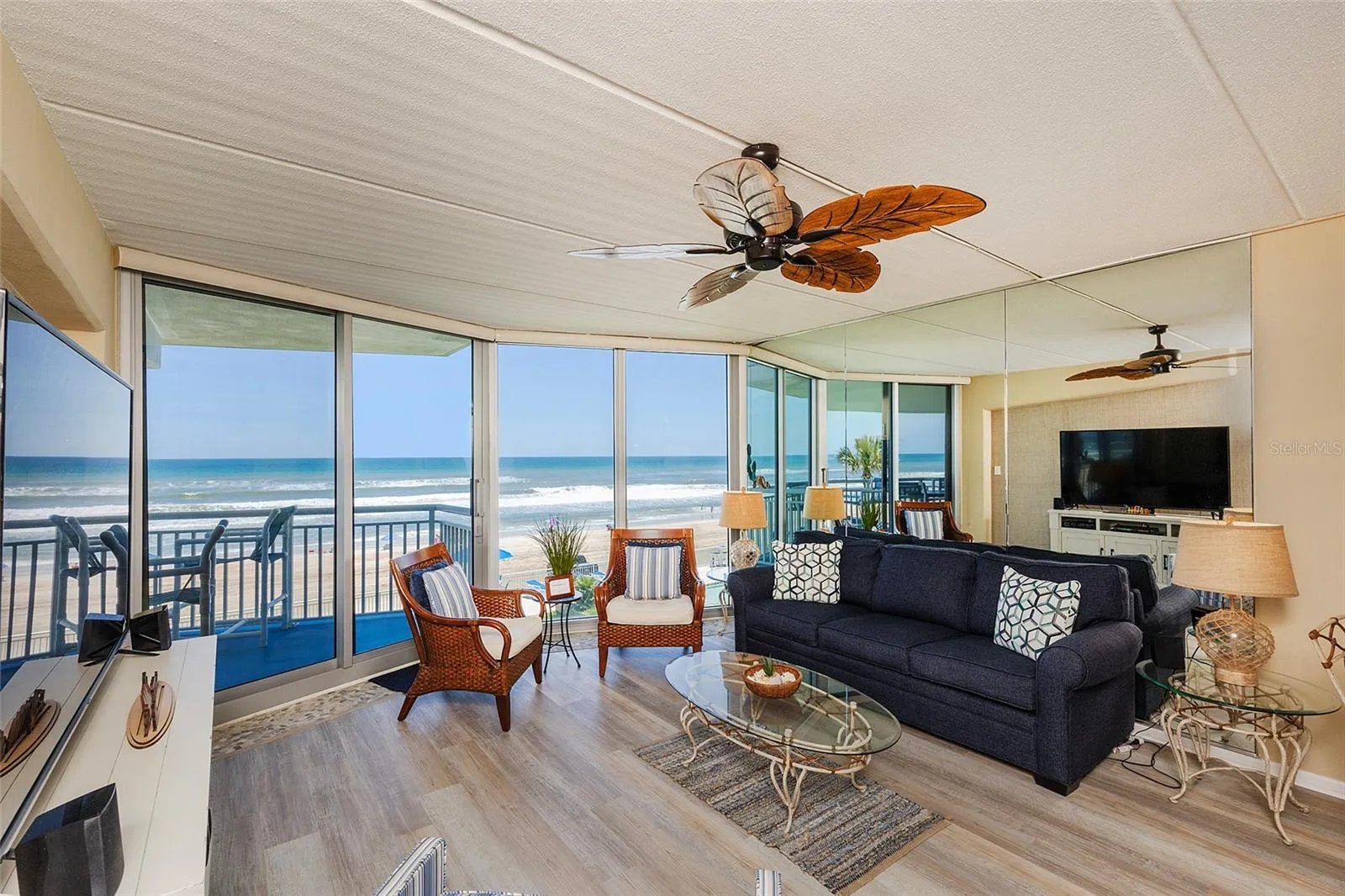 Enjoy postcard-worthy panoramas of the brilliant blue Atlantic coastline from this updated and turnkey beach escape. Direct surfside scenes are the daily backdrop from this inviting condo that features modern LVP flooring throughout, custom ceiling fans, and charming wall accents. The kitchen is white, bright and ready for convenient meal prep. The primary suite provides opulent oceanfront views with balcony access. Plus, this condo comes with a deeded one-car garage and the convenience of a private storage unit. At Surfside Club residents enjoy a convenient location near bridge access, with community amenities that include an oceanfront, zero-entry heated swimming pool, an oversized pool deck, and more. This condo community allows one-month rentals which can help owners produce rental income if desired. Don’t miss your chance at one of Florida’s best beach condos!