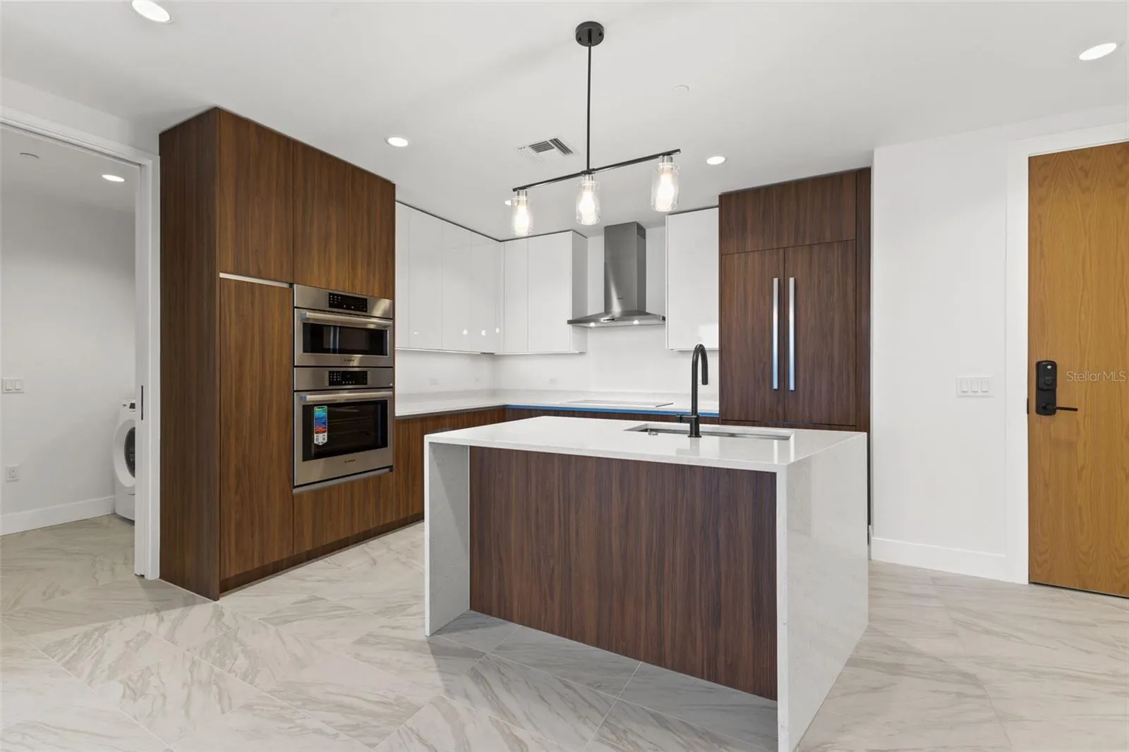 This 2-bedroom, 2-bathroom corner home spans 1,436 square feet and is filled with natural light, thanks to its open-concept Amber floor plan. The chef-inspired kitchen is a true centerpiece, showcasing quartz countertops, a double-waterfall island, sleek modern cabinetry, and premium Bosch appliances, including cabinet-panel ready options for a seamless look.