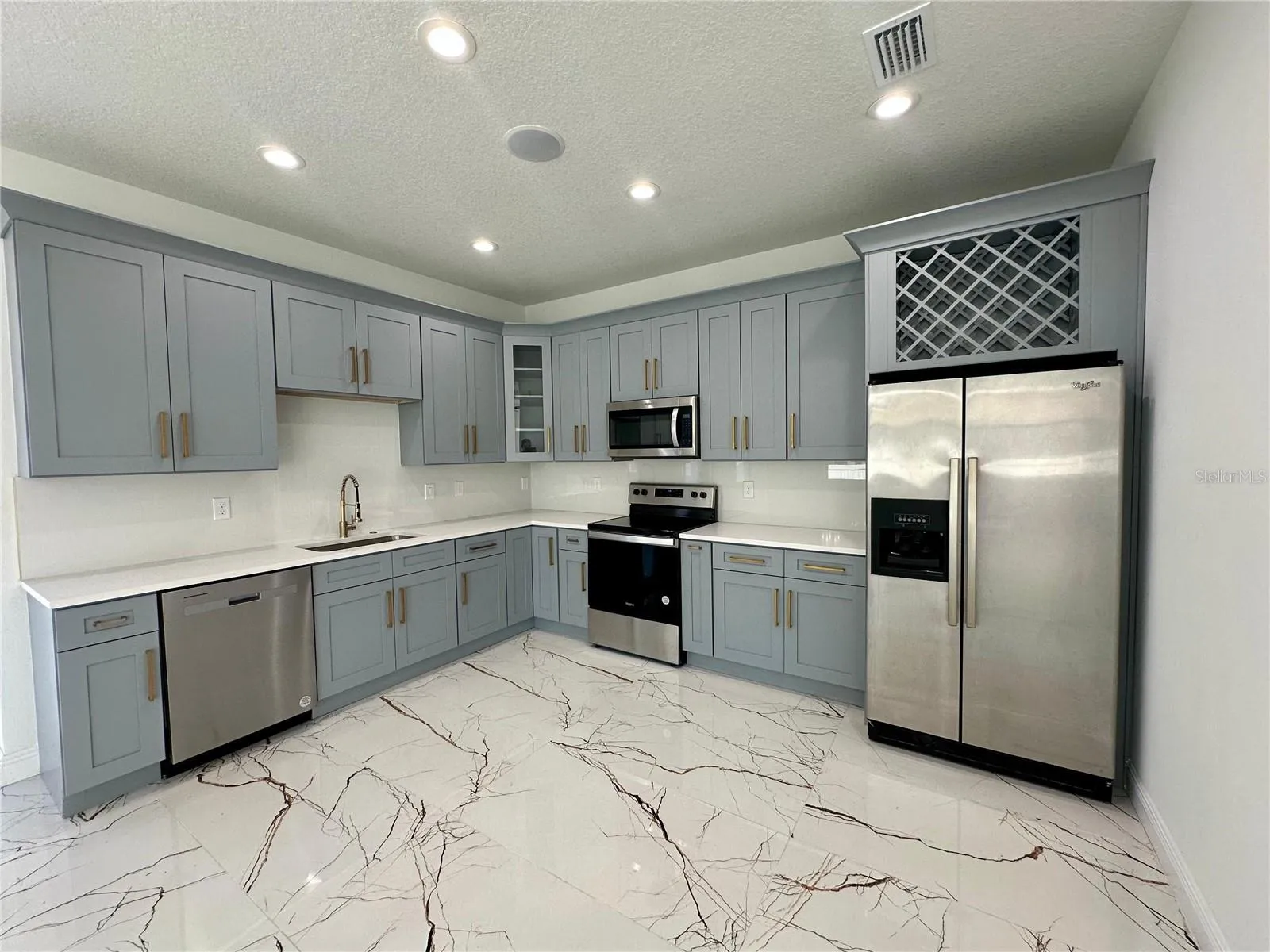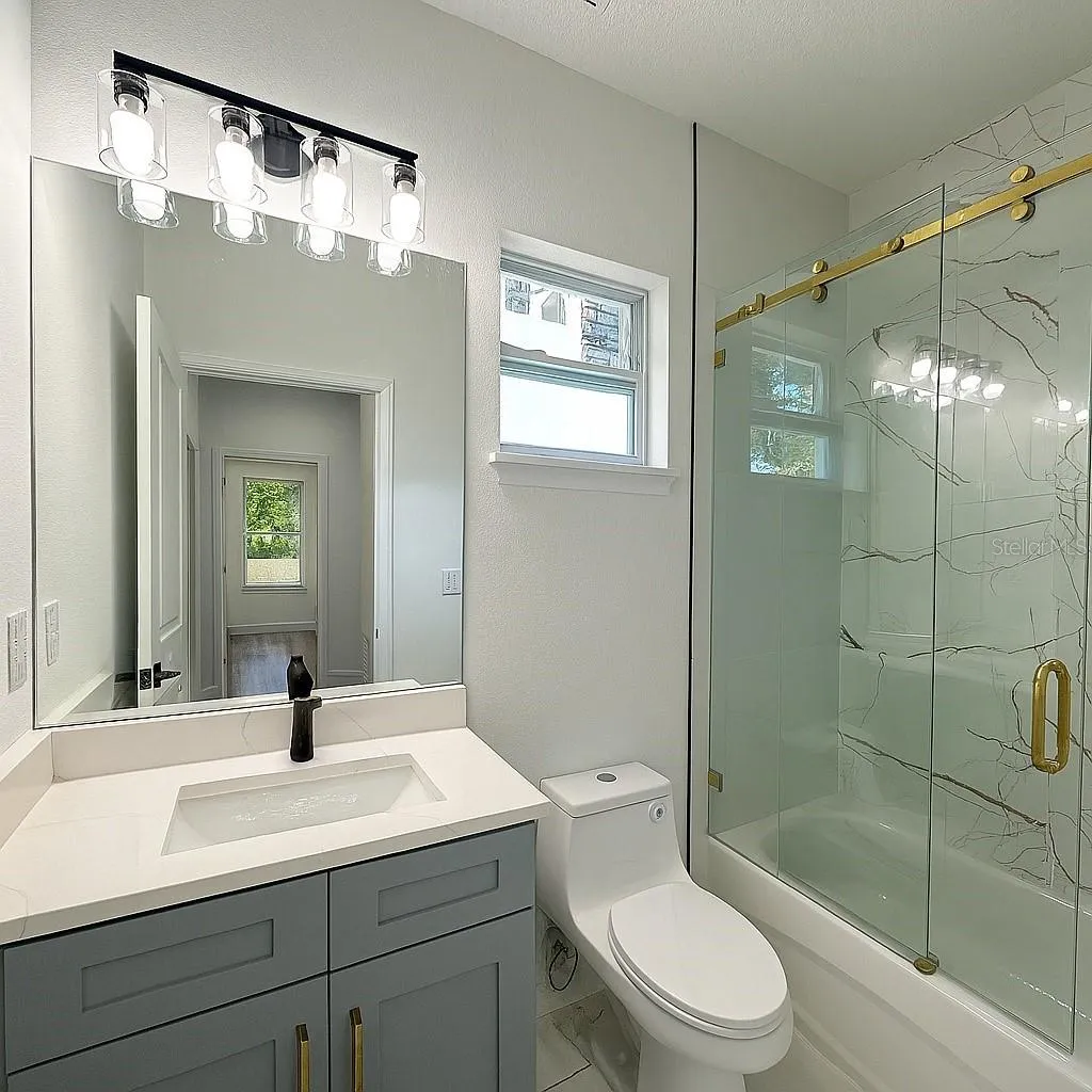 One or more photo(s) has been virtually staged. **Seller is willing to contribute to buyers closing costs**Welcome to this brand-new, beautifully designed two-story contemporary home in the heart of Tampa! From the moment you arrive, you’ll notice the clean modern lines, fresh stucco exterior, and striking entry door that set this property apart. Step inside to an inviting open-concept living space with soaring ceilings, elegant marble-look porcelain tile flooring, and abundant natural light. The stunning kitchen features modern blue cabinetry, stainless steel appliances, quartz countertops, a built-in wine rack, and a sleek undermount sink with gold-tone fixtures. Upstairs, retreat to a serene primary suite filled with light and views of the treetops, complemented by spacious secondary bedrooms perfect for family or guests. The spa-inspired bathrooms boast designer tilework, frameless glass shower doors, contemporary vanities, premium lighting, and Sprayfoam Insulation for energy efficiency. The private fenced backyard offers ample space for pets, entertaining, or relaxing. Conveniently located just minutes from Downtown Tampa, Seminole Heights, Armature Works, Riverwalk, and some of the city’s best dining, shopping, and entertainment. Schedule your private tour today and make this home yours!