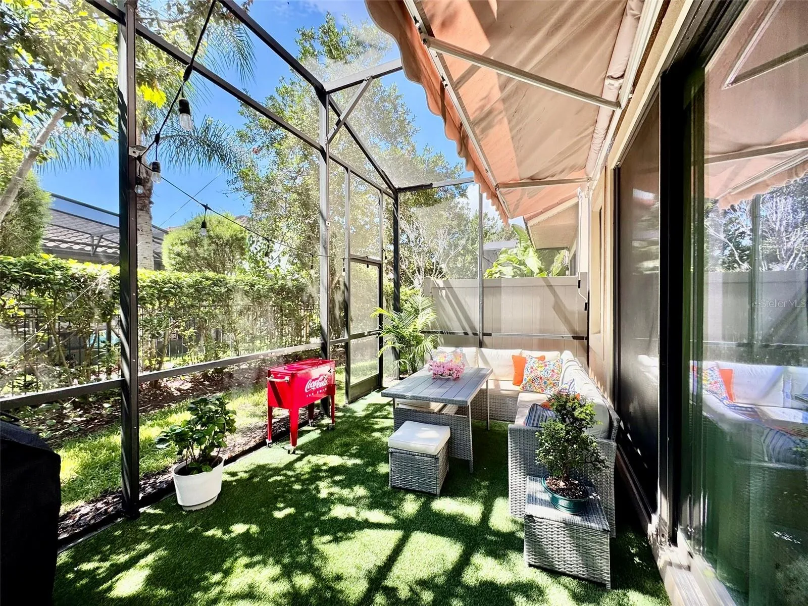 Natural light fills every corner, creating a warm and inviting atmosphere. Step outside to a renovated patio with artificial turf and a screened-in lanai, offering protection from insects and the perfect setting for gatherings, outdoor dinners, or simply enjoying the Florida sunshine. All installed light fixtures convey with the property.