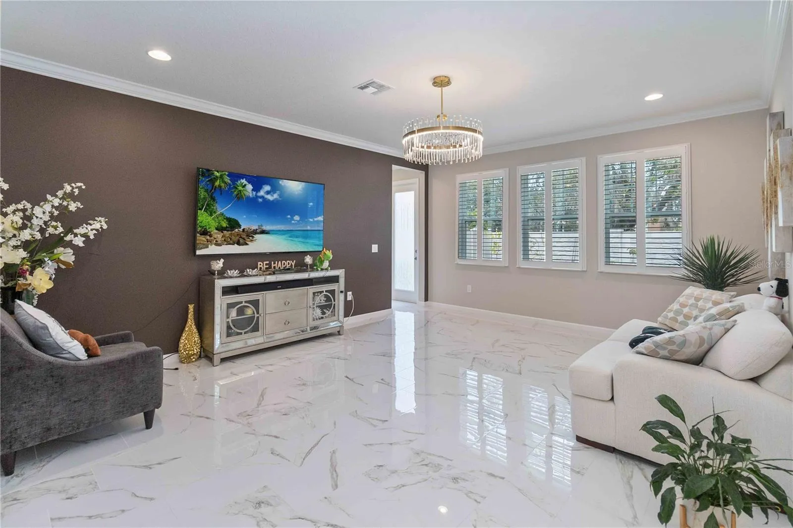 Welcome to this beautifully maintained home located in the highly desirable Independence/Horizon West community of Winter Garden! This spacious home showcases thoughtful upgrades and a bright open layout designed for modern living. The gourmet kitchen is the centerpiece of the home, featuring luxury cabinets, premium finishes, and ample counter space that flow seamlessly into the family and dinning areas. Elegant crown molding adds a touch of sophistication throughout, while European-style blinds bring a modern and functional design element to every room. The primary suite offers a peaceful retreat with a walk-in closet, complemented by well-sized secondary bedrooms. Enjoy Florida living with a covered patio, landscaping backyard, and two-car garage for convenience. Located just minutes from Disney, Hamlin Town Center, top-rated schools, shopping, dining, and major highways, this home is perfectly situated for both comfort and lifestyle. Don’t miss the opportunity to own this beautifully upgraded Winter Garden property!