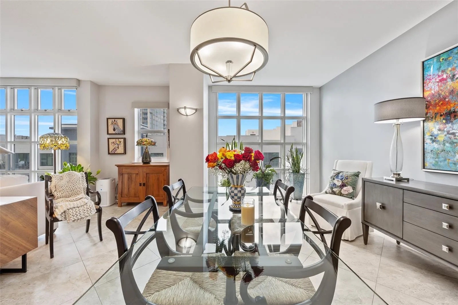 Bathed in natural light from sunrise to sunset, the home’s walls of glass frame captivating water and city vistas. From the moment you enter, it’s clear this is no ordinary condominium. Every inch has been meticulously reimagined with high-caliber finishes and superior craftsmanship, blending beauty with function.