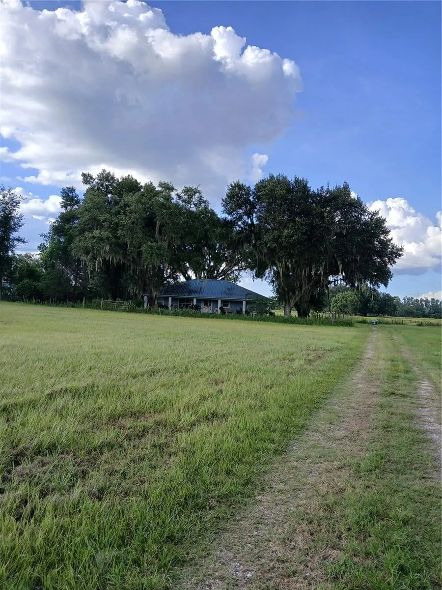 Almost 10 ac… Contemporary home, long front porch, screened in back porch. Huge detached 3 car grg, plus another free standing carport. Detached grg large enough for a shop also. Upon entry of hse, massive Great room; living room at front end, dining area at other end, family room on other side… Long, spacious kitchen. Master bedroom on one side, other 2 bedrooms and bath on other. Fenced in pasture. Per Lake County Zoning, please know if you want to add an accessory building, must be done in area outside FEMA. If not enough room, and you build in FEMA, county allows 600 sq ft building (all with approval from the county).