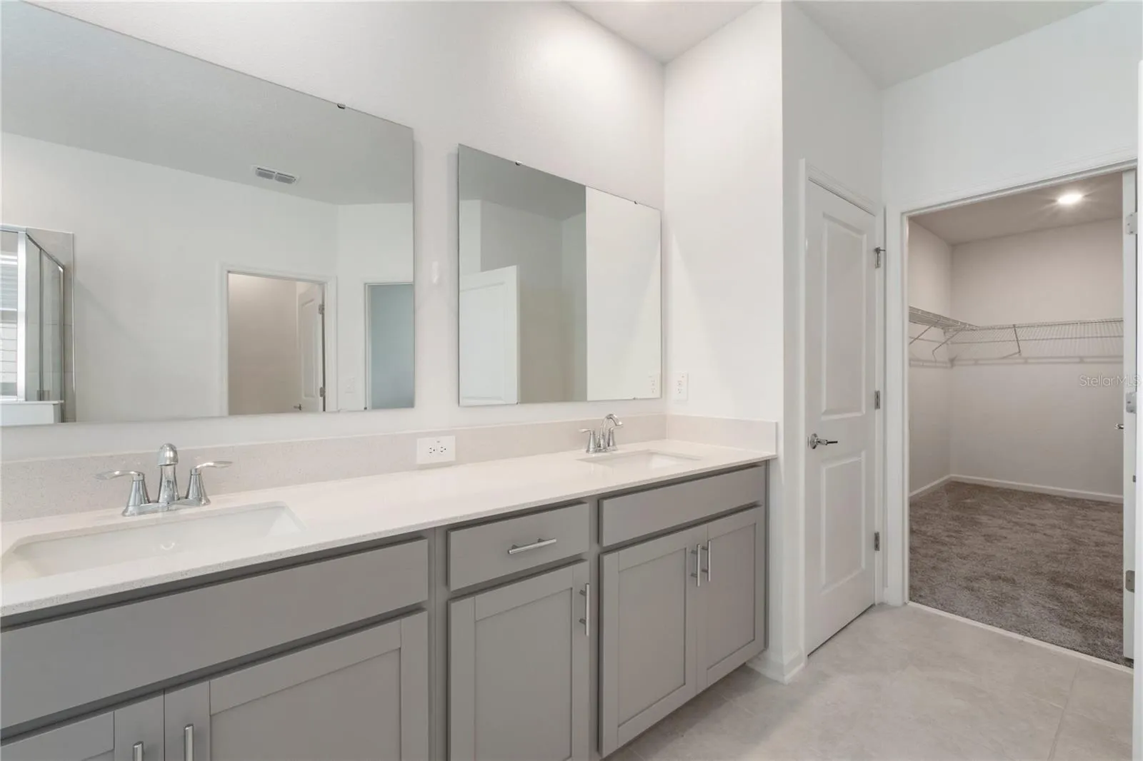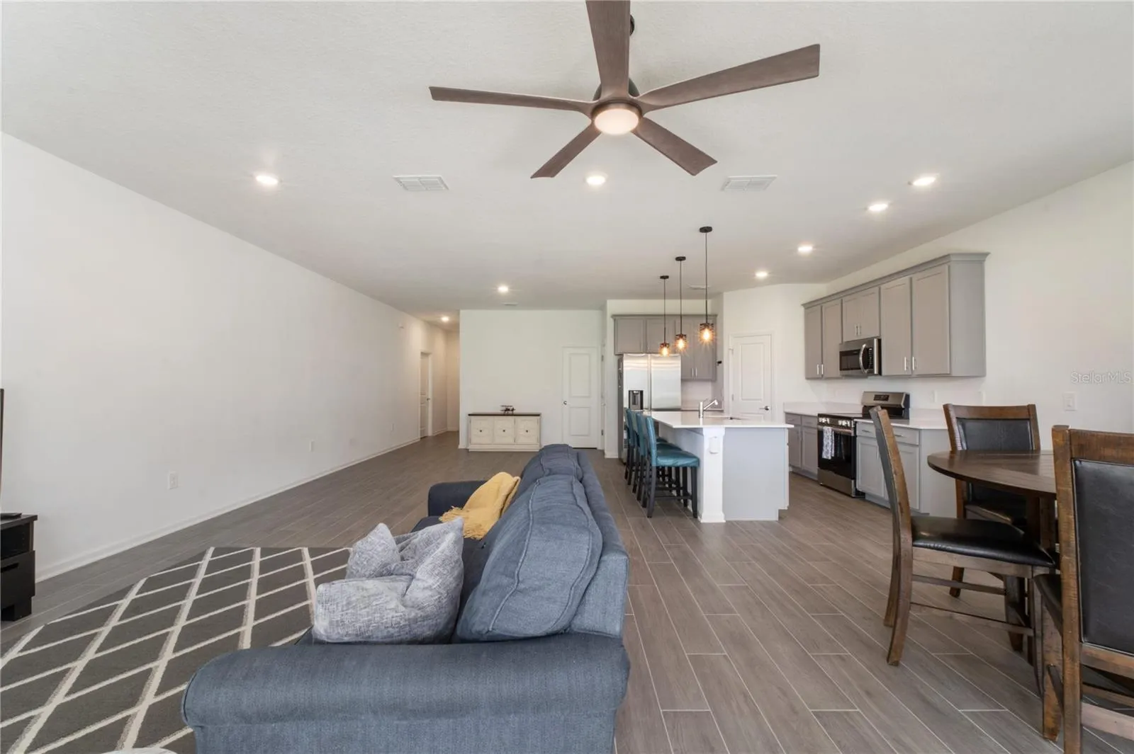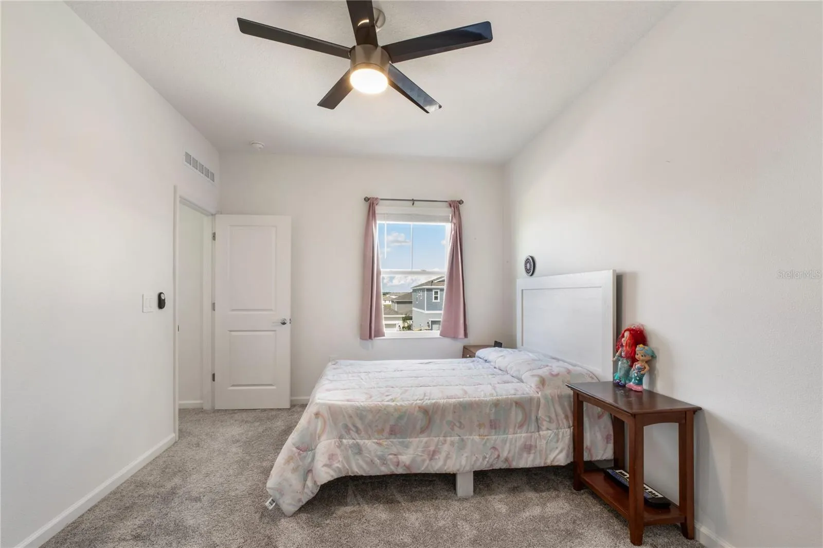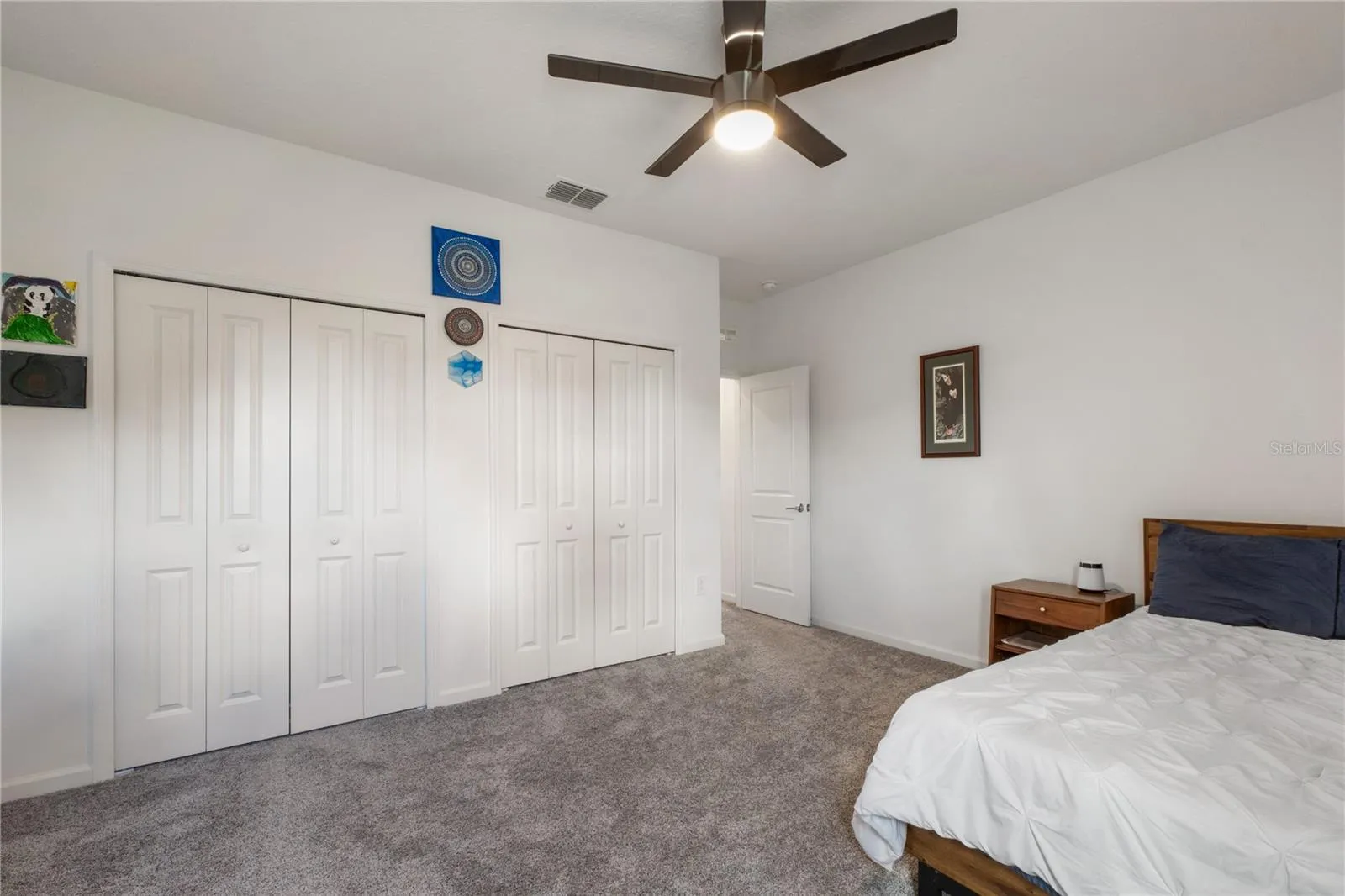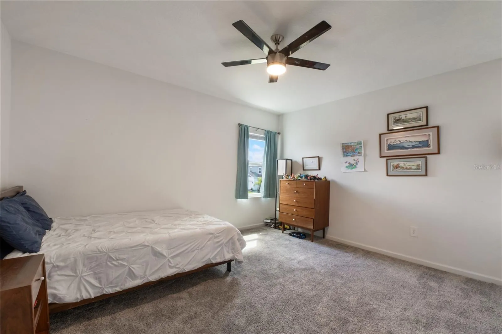 The floors are covered with grey plank titles, but all bedrooms are carpeted to keep your toes cozy out of bed. All bedrooms have ceiling fans.