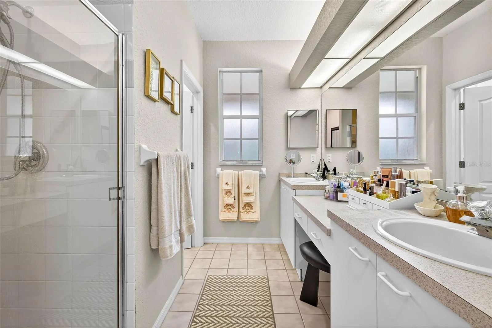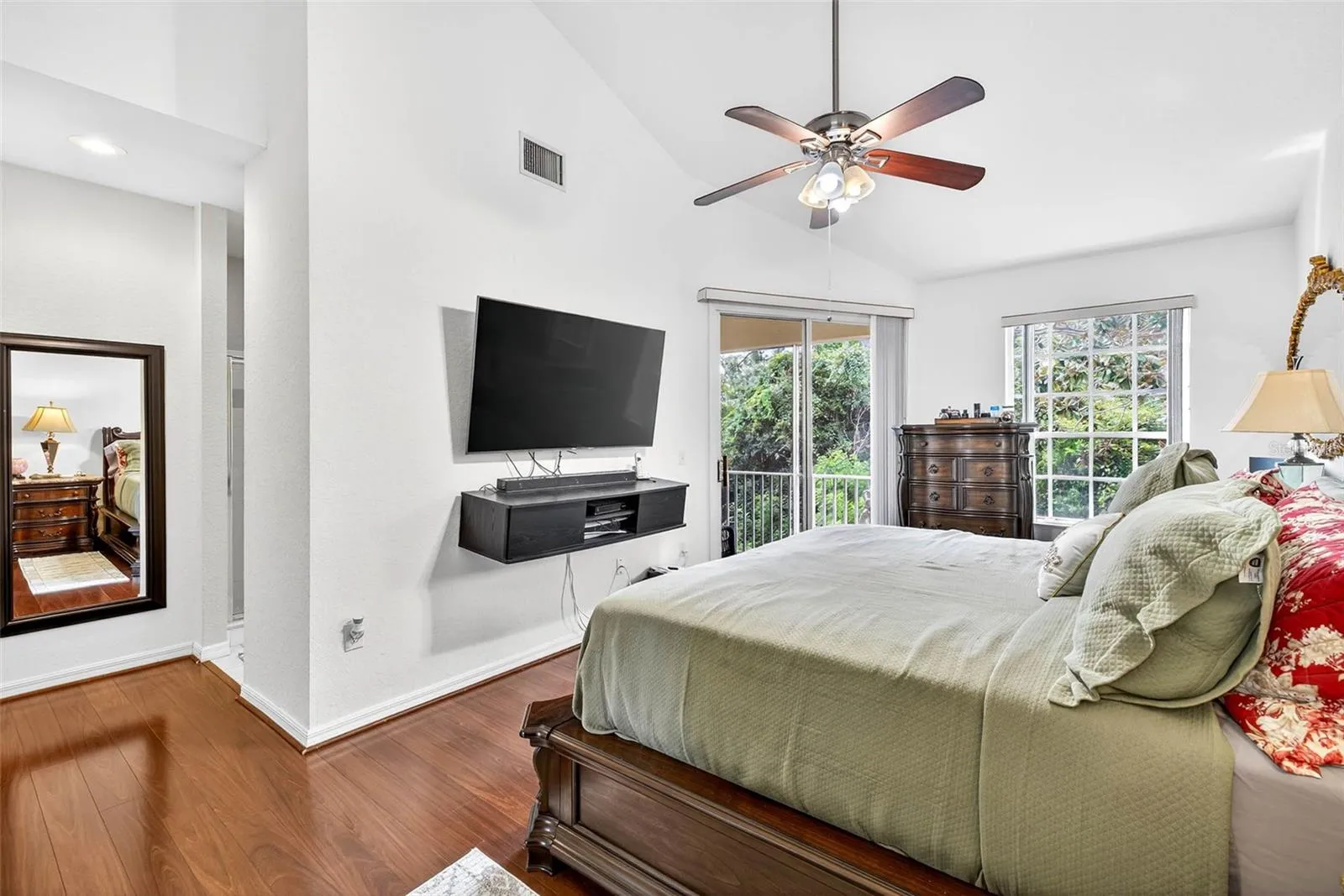Soaring volume ceilings and a dramatic staircase add to the spacious feel. Upstairs, you’ll find three generous bedrooms, including a large primary suite with sliding doors to a private screened balcony and tranquil conservation views. The ensuite bath offers dual vanities, a walk-in tiled shower, a private water closet, and a spacious walk-in closet. Two additional bedrooms with ample closet space, a full bath with a shower/tub combination, extra storage, and a conveniently located laundry closet complete the second floor.