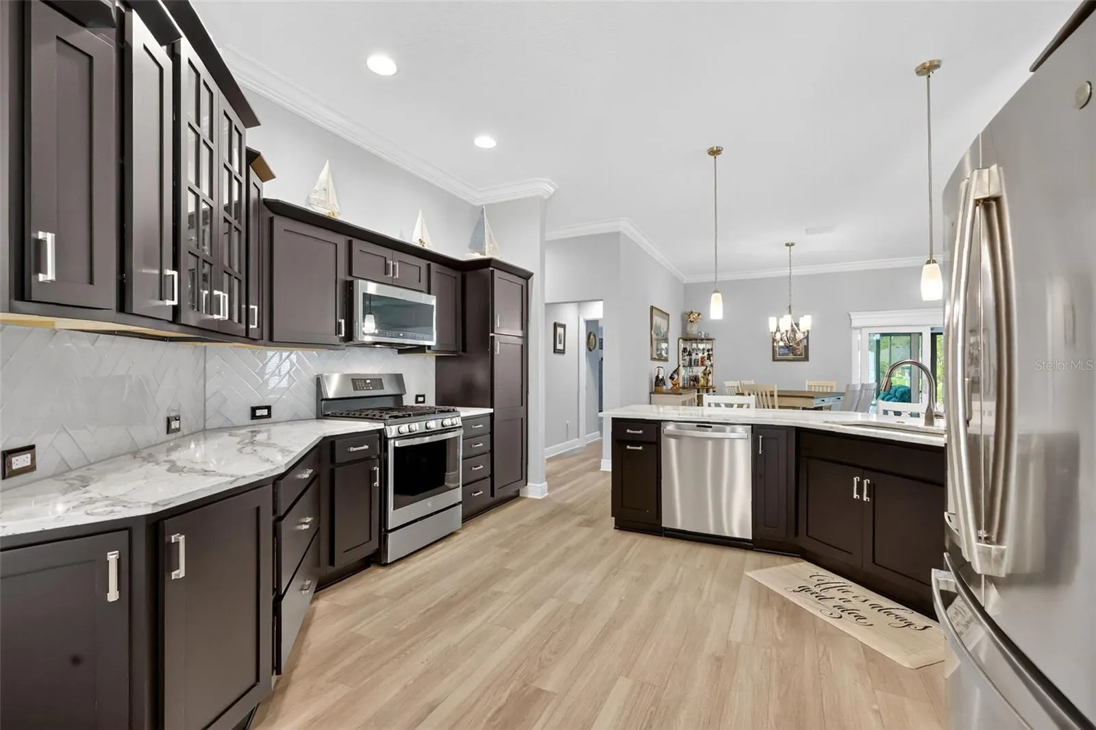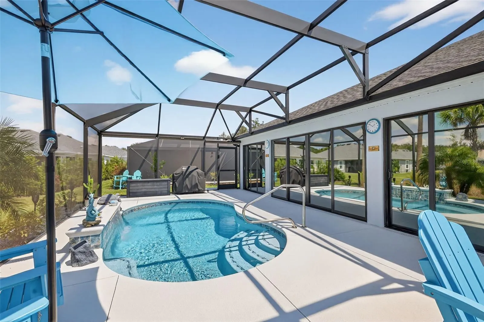 ENJOY SPECTACULAR WATERFRONT VIEWS in this ABSOLUTELY STUNNING 3/2 EXPANDED BEGONIA with CUSTOM SWIMMING POOL, PAVER DECK, 330sf CLIMATE-CONTROLLED ENCLOSED COVERED LANAI, and OVERSIZED 667sf TWO CAR + GOLF CART GARAGE in the CONTEMPORARY Village of Newell! JUST MINUTES from Sawgrass Grove; Franklin, Homestead, and Ezell Pool and Recreation Centers; and Southern Oaks Championship Course! STONED planting beds with CURBED edges, DECORATIVE STAMP driveway, and a beautiful FROSTED GLASS door with transom, side-lite, and RETRACTABLE SCREEN welcome you into the foyer of this MAGNIFICENT home! Built in 2023, this nearly NEW home offers LOW-MAINTENANCE peace of mind with MODERN DESIGN and boasts an ABUNDANCE of UPGRADES including PLANTATION SHUTTERS, LUXURY VINYL PLANK FLOORING throughout, HIGH BASEBOARDS, and Nova WATER FILTRATION and FULL HOUSE SURGE PROTECTION! The main living area features an EXPANSIVE OPEN LAYOUT with SOARING VAULTED ceilings adorned with CROWN MOLDING. From these rooms, sliding glass doors with a CUSTOM CORNICE lead you into the 30’x11’ CLIMATE-CONTROLLED ENCLOSED LANAI! This FANTASTIC room adds 330sf of living area and features a MINI-SPLIT and four sets of FULL-PANEL, TINTED sliding glass doors that open to the INCREDIBLE OUTDOOR OASIS of the POOL and SPA area! The HEATED POOL boasts a WATERFALL and a HIDDEN, IN-GROUND SOLAR COVER! If you’ve been dreaming of RESORT-STYLE LIVING AT HOME—THIS IS IT! Dive into the refreshing POOL, soak up the sun on the deck, or simply enjoy the PEACEFUL WATERFRONT VIEWS! Back inside, the AMAZING kitchen showcases STAGGERED EBONY cabinetry with PULL-OUTS, QUARTZ countertops, built-in PANTRY, STAINLESS appliances, herringbone TILE backsplash, GAS cooking, COUNTER-HEIGHT EAT-IN counter, and an ADJACENT DINETTE. The luxurious primary bedroom boasts a TRAY ceiling and TWO LARGE CUSTOMIZED WALK-IN closets. Its en-suite bathroom features JACK & JILL vanities, QUARTZ counters, TILED WALK-IN ROMAN shower, BUILT-IN LINEN closet, and separate water closet. The SPLIT floor plan offers two additional bedrooms and second bathroom, conveniently hidden behind a POCKET door near the front of the home, creating a PRIVATE GUEST WING and/or QUIET home office. Bedroom two boasts a walk in BAY window, TRAY ceiling, and built-in closet. A third bedroom features VAULTED ceiling, DOUBLE windows, and built-in closet. The second bathroom offers a SPACIOUS blue vanity with QUARTZ countertop, TILED WALK-IN shower, and a hallway LINEN closet. A centrally located INTERIOR laundry room features EBONY cabinetry, shelving, and a utility sink. Completing the package is an OVERSIZED 31’x25’ TWO CAR + GOLF CART GARAGE with MOTORIZED garage SCREEN, attic insulation and exhaust fan, insulated garage doors, and attic access stairs. DON’T MISS YOUR OPPORTUNITY TO MAKE THIS EXCEPTIONAL WATERFRONT POOL HOME YOUR OWN! The Village of Newell is close to Sawgrass Grove, Brownwood Paddock Square, and the new upcoming Eastport Square; six neighborhood pools and recreation centers (Franklin, St. Catherine, Bradford, Aviary, Hawkins, Homestead); three large regional recreation complexes (Ezell, Everglades, and Rohan); Southern Oaks Country Club and Championship Golf Course; Clifton Cove Putting Course; Mickylee Pitch and Putt; shopping and dining at Magnolia Plaza; Homestead dog park for your furry friends and more! PLEASE WATCH OUR WALKTHROUGH VIDEO OF THIS EXCEPTIONAL HOME and call today to schedule your Private Showing or Virtual Tour!