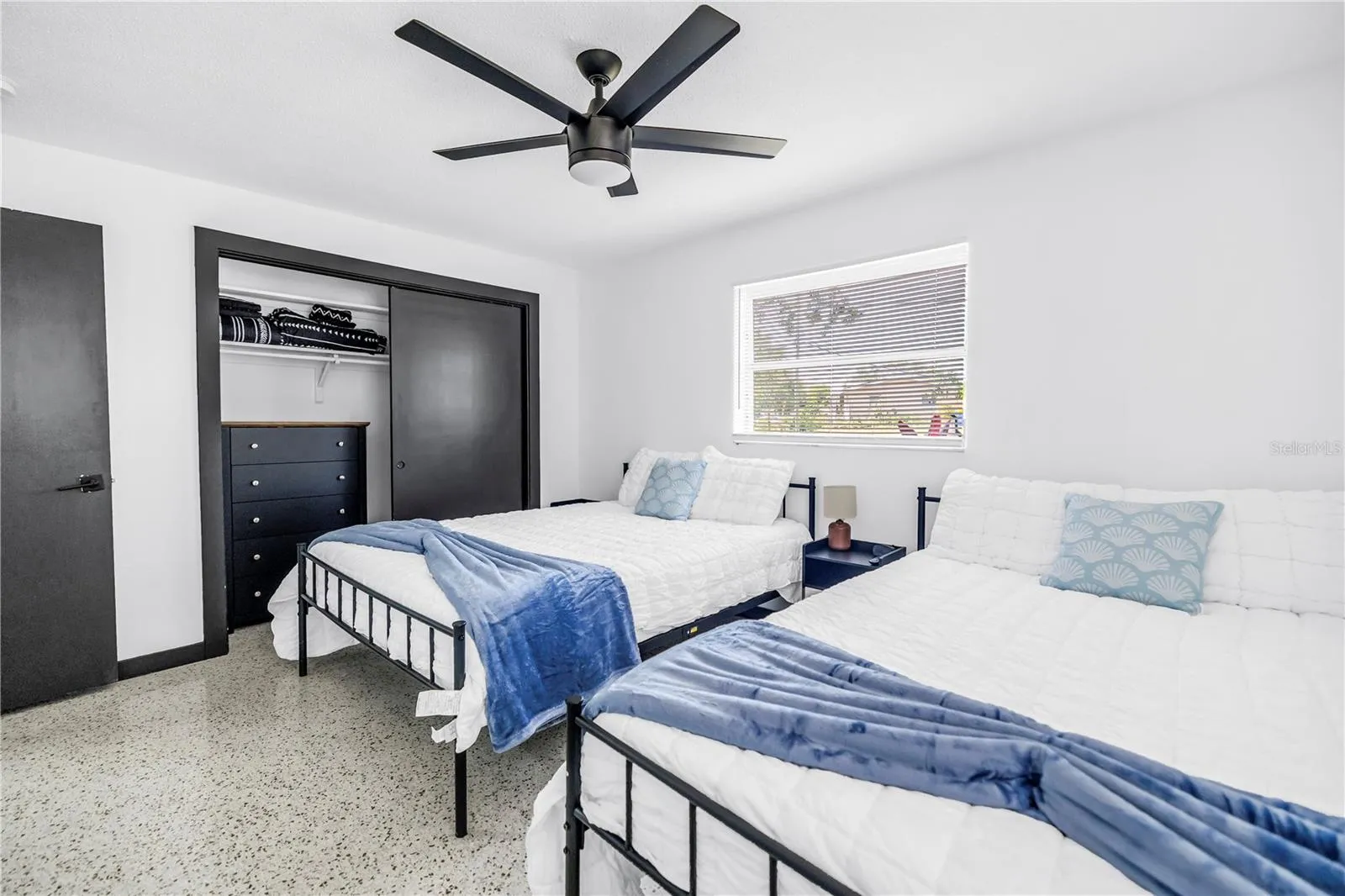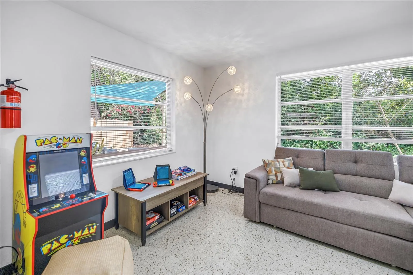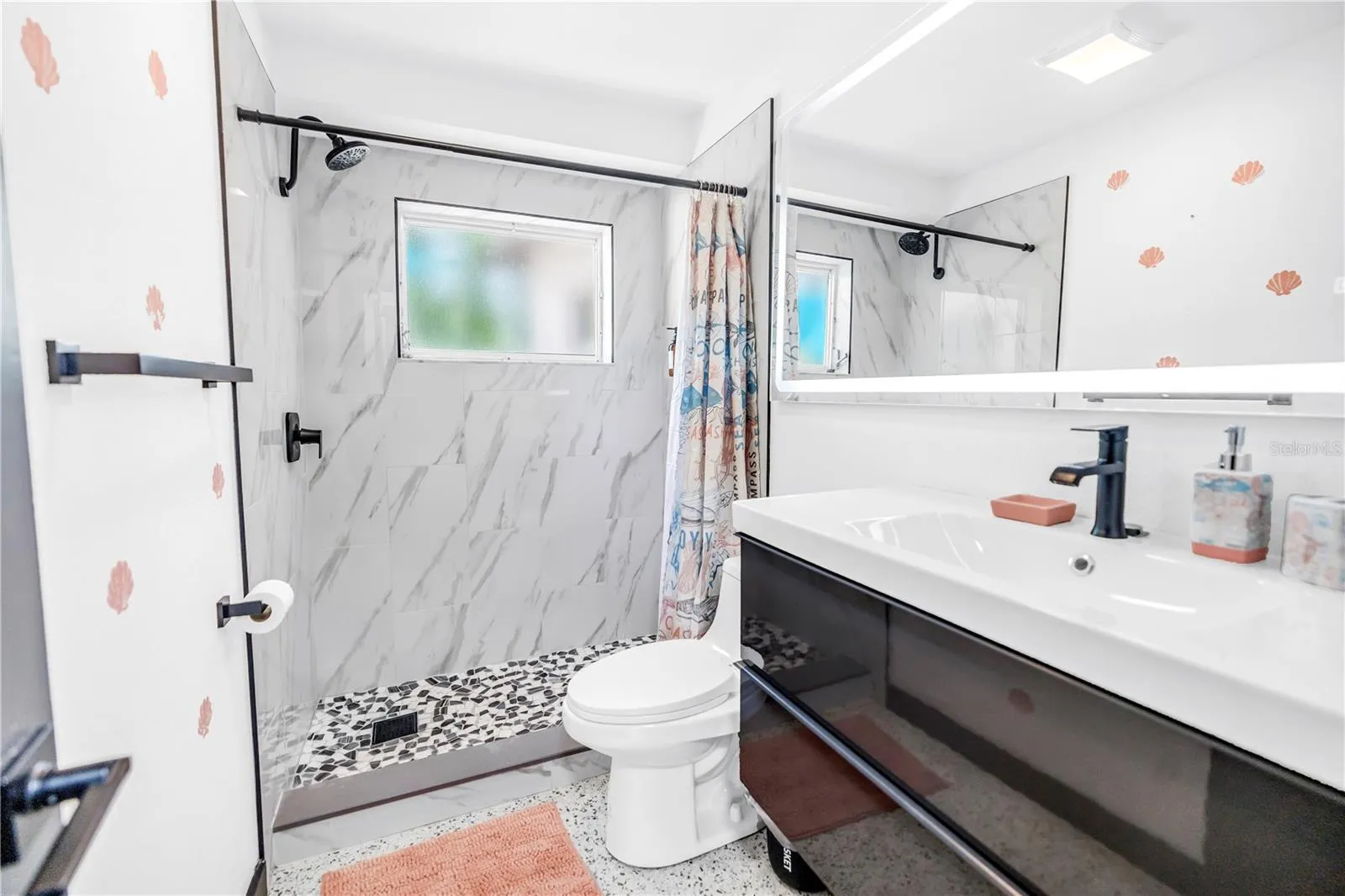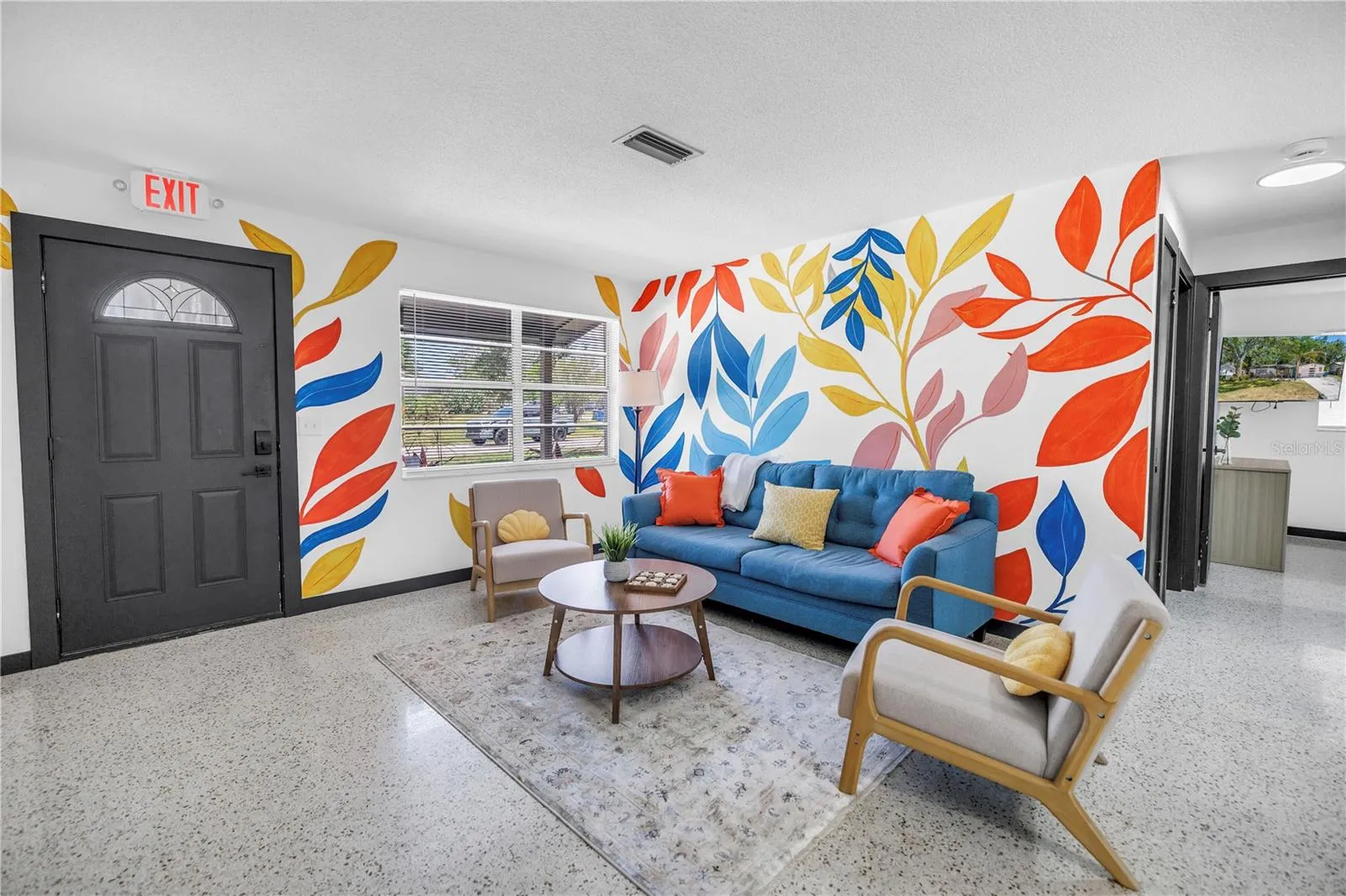 Nestled in Largo, this beautifully renovated 2-bed/1-bath home showcases stunning original terrazzo floors and a fresh, modern finish throughout. The kitchen features brand-new Samsung appliances, sleek cabinetry, and ample prep space. The light, bright bath includes a window for natural light and a large LED-lit mirror. The walk-in shower offers a clean, contemporary look and easy maintenance. Major systems updated in 2023—A/C, roof, and water heater—so you can enjoy low-maintenance living from day one. Outside, a lush, private green space creates a tranquil spot to unwind or entertain. Per local guidelines, short-term rentals are acceptable. Furniture may convey. Minutes to award-winning Gulf beaches, shopping, and dining—this versatile property works for a primary residence, seasonal retreat, or investment. The best part is this gem is it’s high and dry and not in a flood zone. Come see it today!