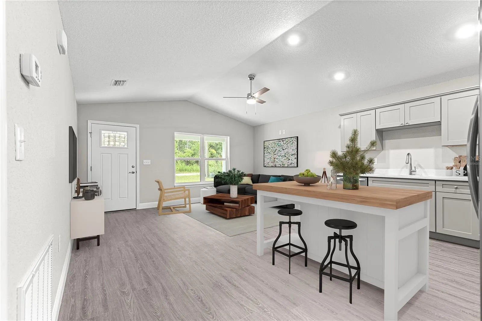 One or more photo(s) has been virtually staged. Welcome home to Belleview Heights Estates! This new construction, block home is centrally located to Ocala and The Villages with great proximity to I-75 for an easy commute. The unique home layout offers an open concept kitchen and living area with 3 bedrooms and 2 bathrooms. Kitchen is equipped with a stainless steel appliance package, quartz countertops, soft close cabinets, ample cabinetry and a large pantry. The primary bedroom is open and welcoming with an en suite bathroom, walk in shower and walk in closet. Other features include luxury vinyl plank flooring throughout, an indoor laundry room and a single car garage. This home offers convenience to amenities while still feeling like coming home to a quiet retreat to at the end of your day! Schedule your tour today!