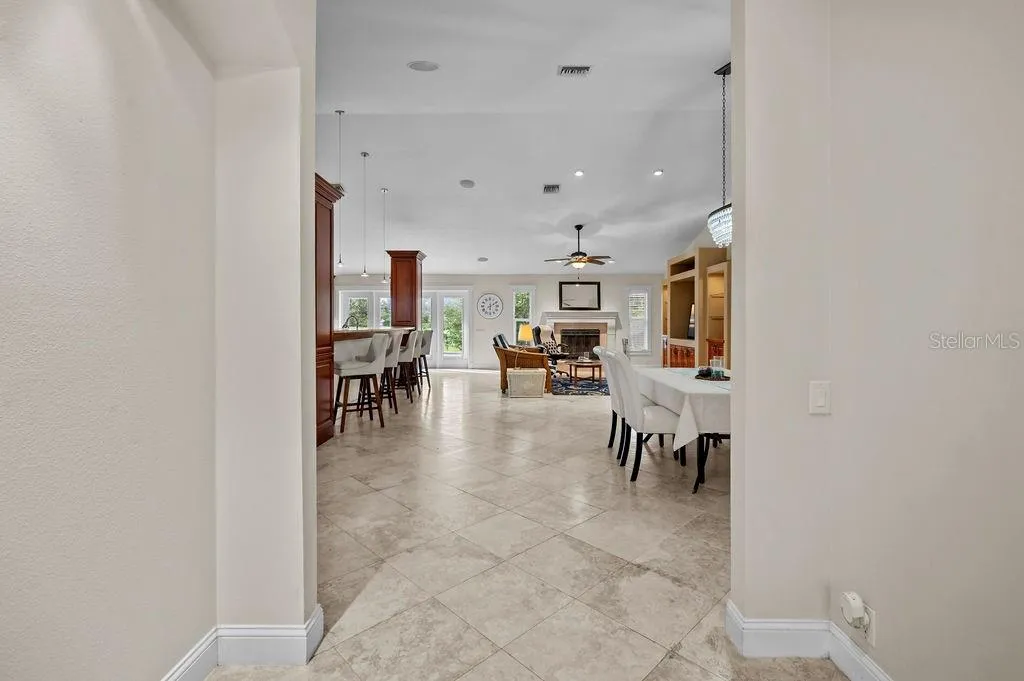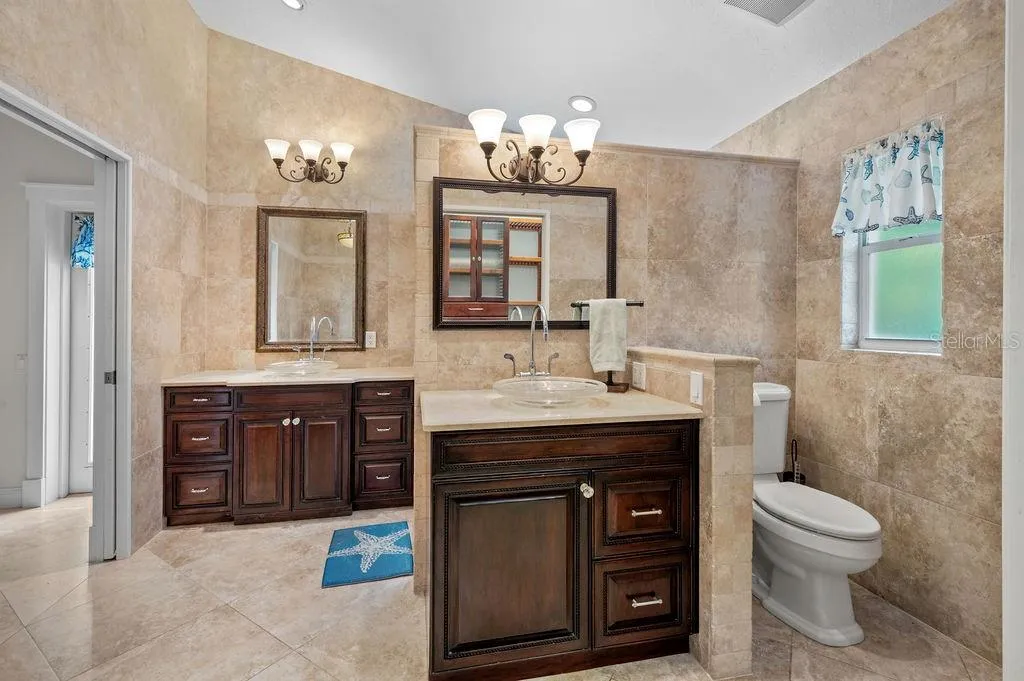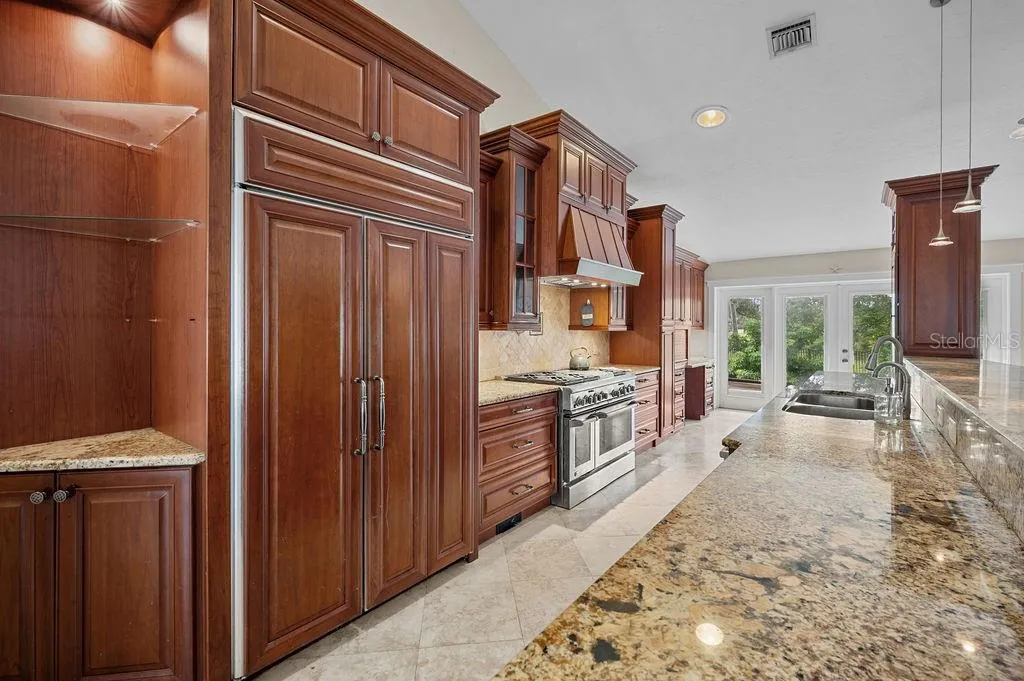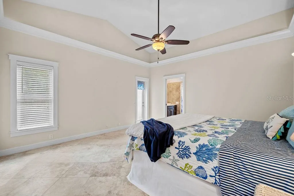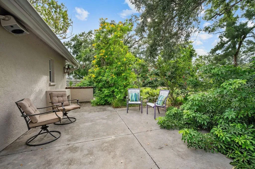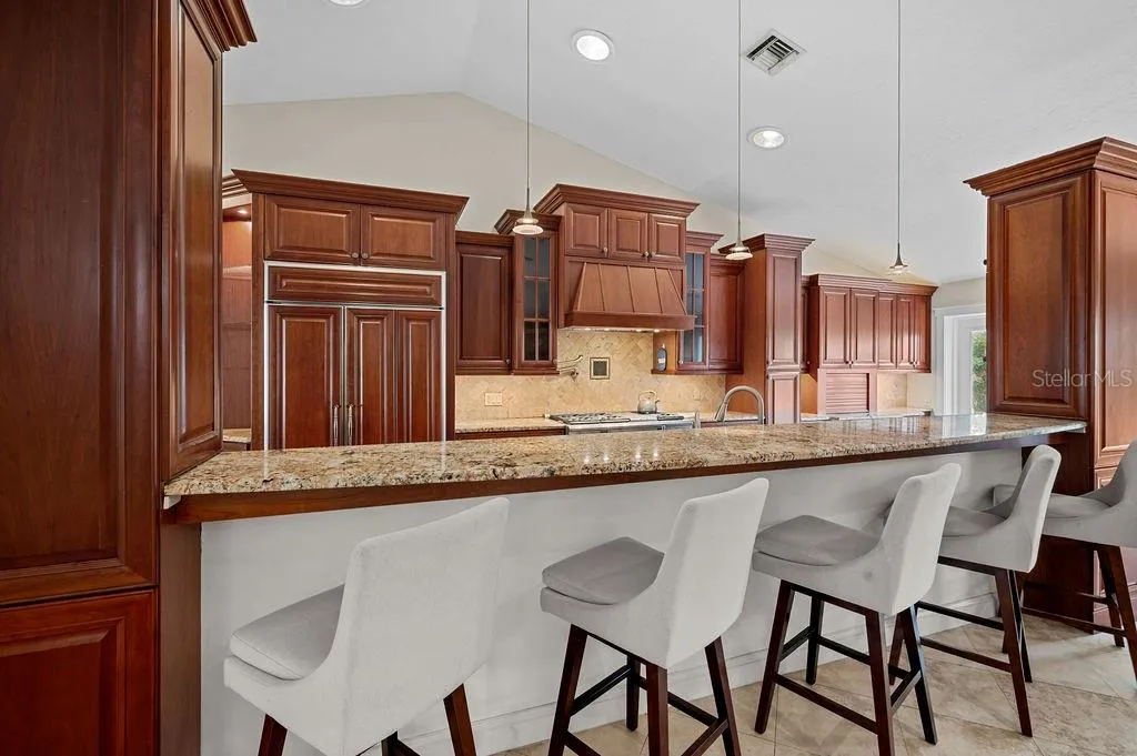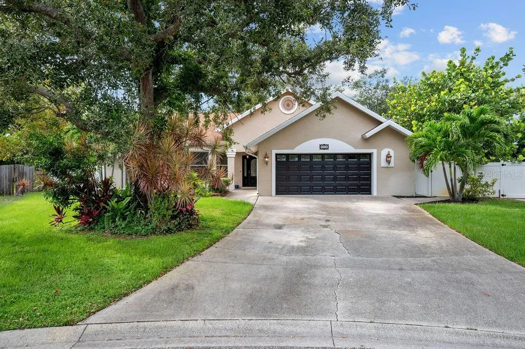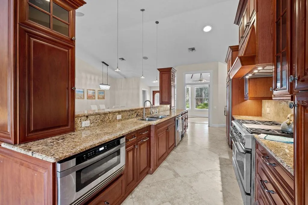 Welcome Home to Azalea Park! This 4 bedroom + den spacious home with 2.5 baths sits on one of the largest lots in the neighborhood! Situated on a quiet cul-de-sac, the large, fully fenced yard enjoys private water views. This spacious home features high ceilings and an open floor plan, with split bedrooms, open living space and a 2 car, air conditioned garage. You will love the chef’s kitchen with skylights and high counter seating, granite counters and solid wood cabinetry. This home is full of extras – like your GE Monogram 6 burner gas stove with griddle and double oven, touchless Moen faucet (2022), separate ice maker mini-freezer (2020), wall mounted pot filler faucet, double oversized stainless sink, tankless hot water heater (2023), updated A/C (2024) and remote controlled kitchen hood (2024). Enjoy the serene views through French doors to the large patio space. Attach your grill out back to the patio’s propane hook up, and enjoy the privacy of your large yard with the mature landscaping while relaxing under the trellis. You can even use the existing wiring hook up to add a spa. Or unwind inside the spacious family room with gas fireplace and built in entertainment center. The bedrooms have large windows with plantation shutters, ceiling fans and lighted closets. The den/office space with high coffered ceiling, is bright with natural light from the double glass doors and bay windows. The spacious primary bedroom, with private access to the side yard, has a large walk in closet with solid wood custom organizer. The primary bathroom includes dual glass bowl sinks and a walk-in shower with pebble shower floor, foot bath, dual shower heads and a soaking tub. All of this in the desirable Azalea Park neighborhood, with community pool and easy access to Robinson Preserve, DeSoto Memorial Park, the botanical gardens, and just minutes to the beaches of Anna Maria Island!