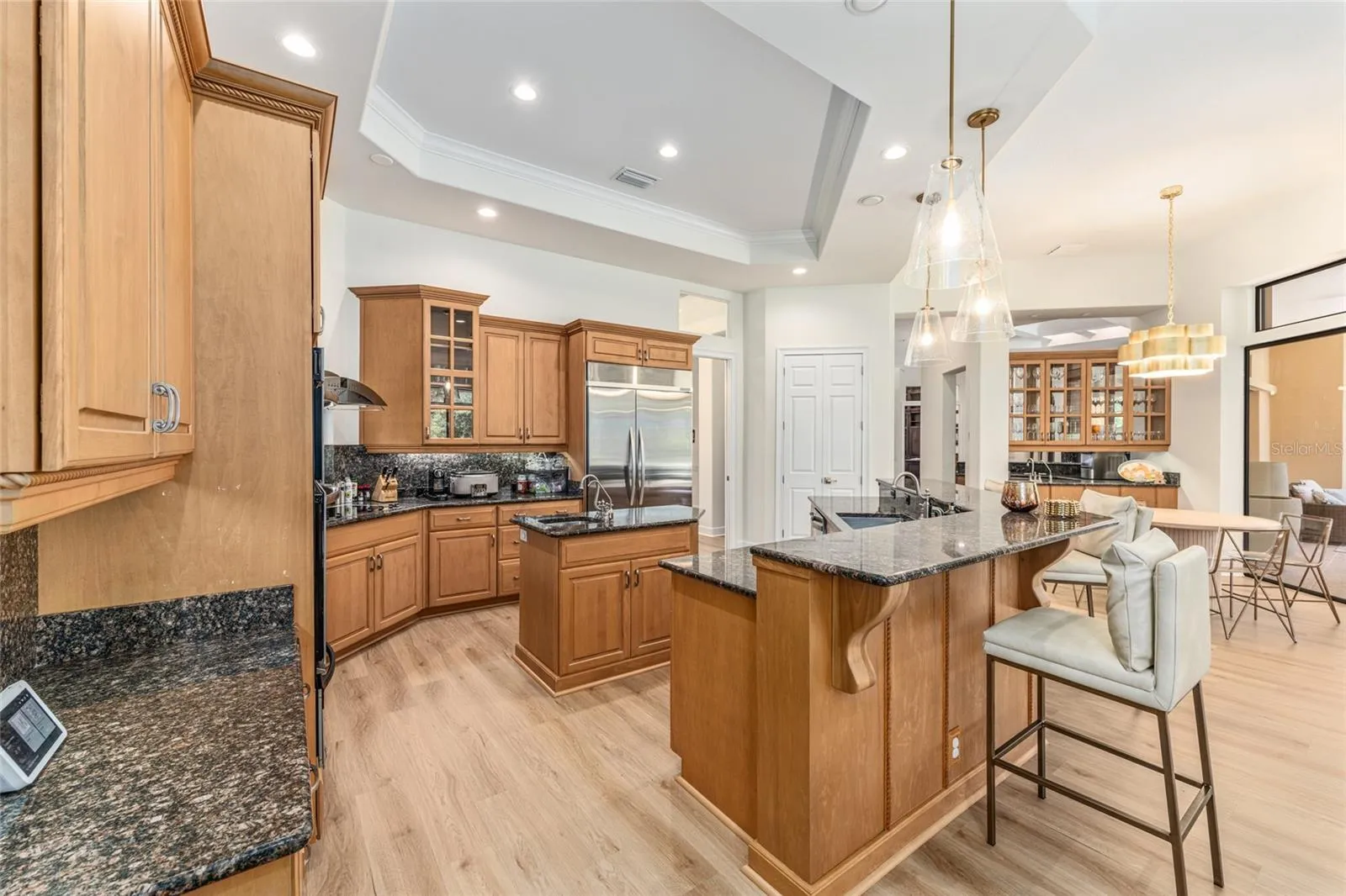 Recently renovated and topped with a brand-new roof, as well as new closet systems throughout. This 4-bedroom, 5-bathroom residence (plus office) blends modern updates with timeless elegance. Inside, soaring ceilings, a split-bedroom floor plan, and spacious gathering areas set the stage for both comfort and entertaining. The chef’s kitchen features high-end finishes and opens to a coffee/wine bar, while the master suite includes its own private office in addition to the home’s main office.