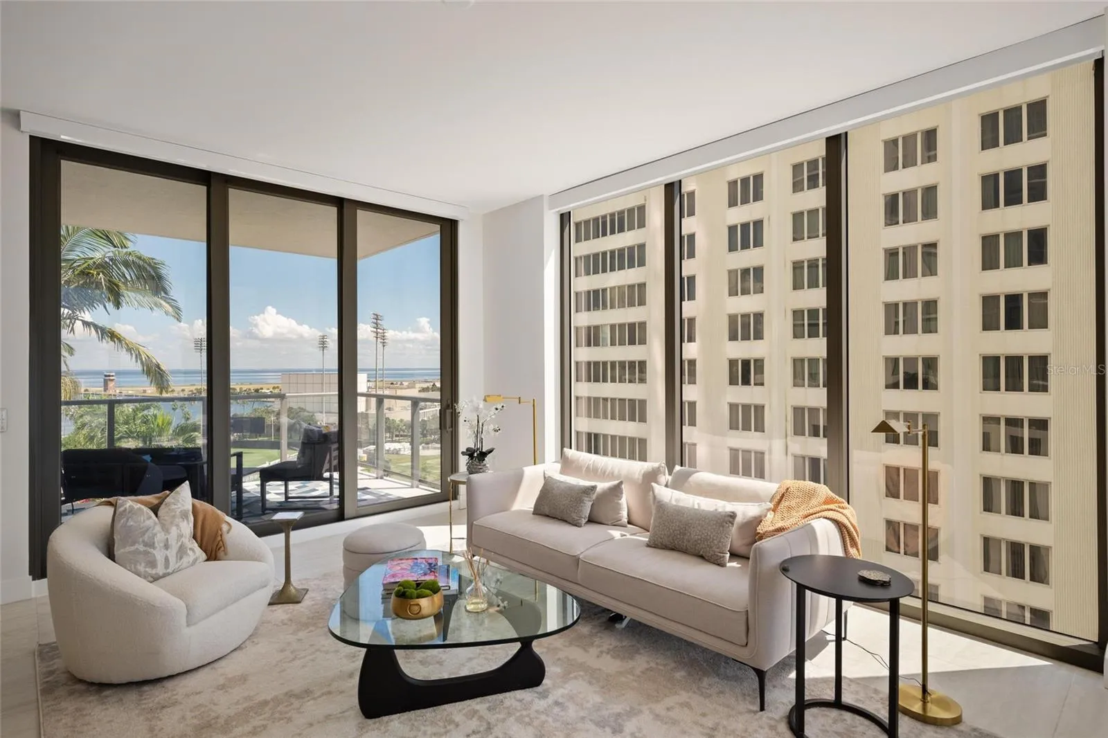 Welcome to luxury at Saltaire, situated in the vibrant heart of downtown St. Petersburg. Located at 301 1st Street South, Unit 807 offers a stunning combination of contemporary design, breathtaking views, and premium amenities. This meticulously maintained 2-bedroom, 3-bathroom residence with a versatile den features an open floor plan complemented by expansive windows that fill the space with natural light—plus dual balconies for outdoor enjoyment of the bay and city views.