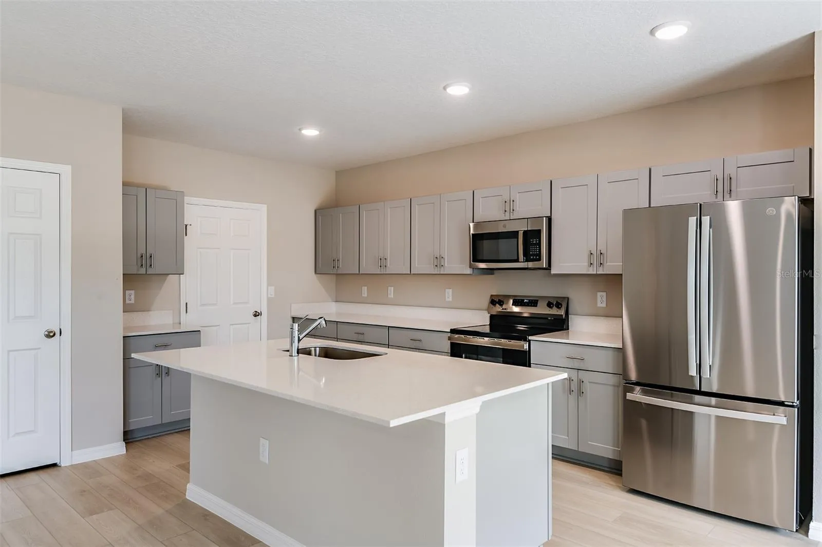 One or more photo(s) has been virtually staged. Under Construction. Welcome to The Azure, where modern design meets practical living in a home that has it all. With 4 bedrooms, 2.5 bathrooms, and a 2-car garage, this home is crafted for comfort and style. The extraordinary elevation and professionally designed landscaping create a captivating first impression. Step through the front door to discover luxurious vinyl plank flooring that extends throughout the open-concept layout. The kitchen shines with quartz countertops and all-new stainless-steel appliances, overlooking the dining area and patio. A convenient half bath is located downstairs for guests, while the spacious laundry room upstairs comes complete with a brand-new washer and dryer. Upstairs, you’ll find all four bedrooms, including the expansive owner’s suite with a walk-in shower, double vanities, and a spacious walk-in closet. A flexible recreation space upstairs provides an ideal spot for family gatherings. With a smart thermostat ensuring energy efficiency and comfort, the Azure seamlessly blends functionality and modern luxury. Experience the essence of community living at Two Rivers. Located North of Tampa, residents enjoy all the dining and shopping options the Wesley Chapel area has to offer while staying close to nature. This master-planned community is inspired by the surrounding nature, nestled within woods, grasslands, and water allowing homeowners to fully immerse themselves in the outdoors. Resort-style amenities add to the luxury of the Two Rivers lifestyle while a full calendar of events fosters a sense of community. Images shown are for illustrative purposes only and may differ from actual home. Completion date subject to change.