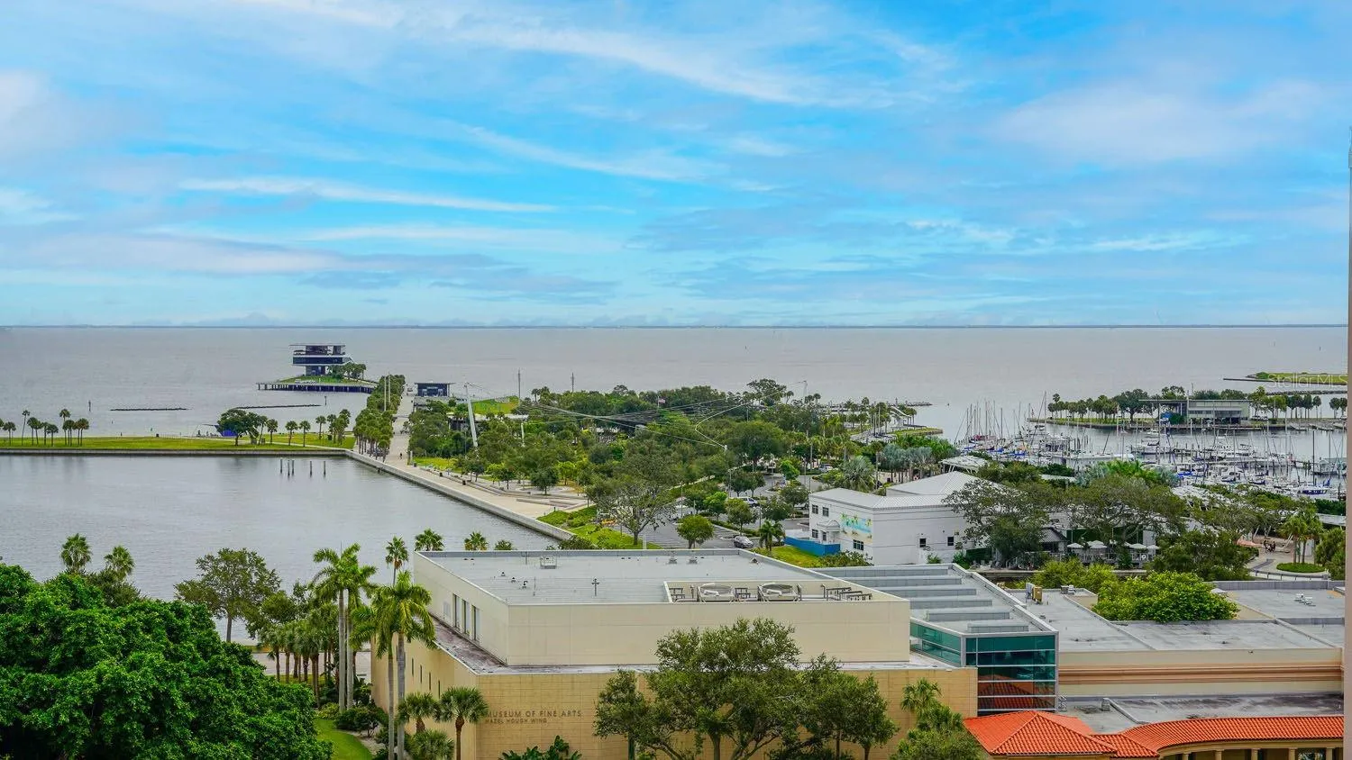 Welcome to Parkshore Plaza #1104, a beautiful 3 bedroom 3 and a half bathroom residence in the heart of Downtown St. Petersburg offering breathtaking views of Tampa Bay and the city skyline. Thoughtful upgrades include full interior painting and LED recessed lighting in 2015, dual EV charging stations in 2022. The chef’s kitchen now features a complete suite of upgraded premium appliances, while the primary suite showcases his-and-her walk-in closets and a spa-like en-suite bath with double vanities. Residents of this premier community enjoy an array of resort-style amenities including a heated pool and spa, fitness center, clubroom, 24/7 concierge, secure covered parking. Securely with a fob, the elevators open directly to your private foyer to enter your tasteful residence. With spacious living and dining areas designed for both entertaining and everyday comfort, this home combines modern luxury with unmatched access to waterfront parks, world-class dining, and the vibrant lifestyle of Downtown St. Petersburg.