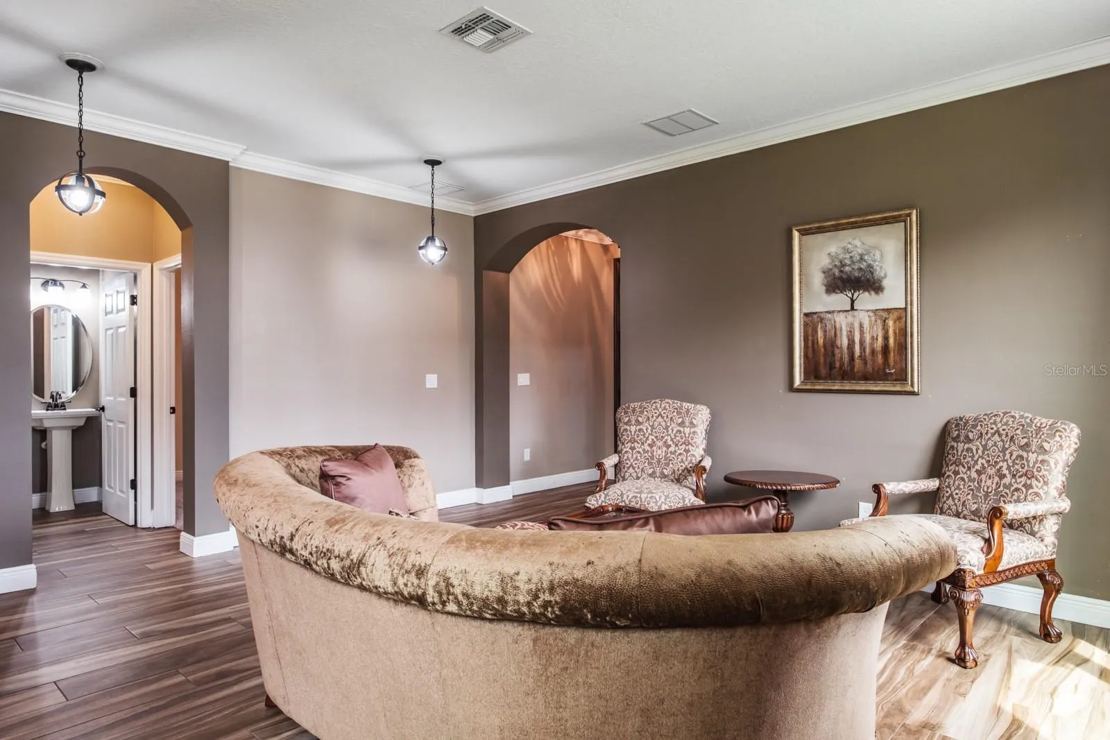 Wow!! Picture perfect model home located in the exclusive gated community of ‘Estuary of Mobbly Bay’. This home boasts 5 full bedrooms, plus a den/office, plus an upstairs bonus room, 4 full baths and a 3 car garage… Nearly 4,000 sq.ft. of grandeur! The moment you walk through the commanding solid wood front door you are greeted to excellence!!! A true “family home” with separate formal living and dining areas. The kitchen and family room are perfectly positioned as an entertainer’s dream! The kitchen includes a cook top, wall oven/microwave, granite counters and a designer tile back splash. The desirable double island layout allows for a substantial breakfast bar in addition to an eat-in area. And this wide open space overlooks the huge family room accented by magnificent French doors and views of a beautiful outdoor living space! Of course the splendor extends outside!! There is a large pavered lanai & beautifully designed pool, with a ‘sun shelf’ and raised hot tub!! The remainder of the main living level claims 4 of the 5 bedrooms. All generously sized with large windows revealing a light & bright setting. The primary retreat is fit for royalty and has upgrades galore! Crown molding, ensuite w center set soaking tub and a massive double-entry ‘walk in’ shower! All bathrooms are elegantly designed and completed with striking finishes! A bonus living space and the 5th bedroom with an additional full bath are found upstairs. Absolutely perfect for a nanny or in-law quarters or a fitting design for a large family! Infinite upgrades! Pride of ownership and exquisite taste prevail in this stunning home near to shopping, restaurants, Tampa International Airport and the famed Gulf beaches!! This one has it all! A true must see!!