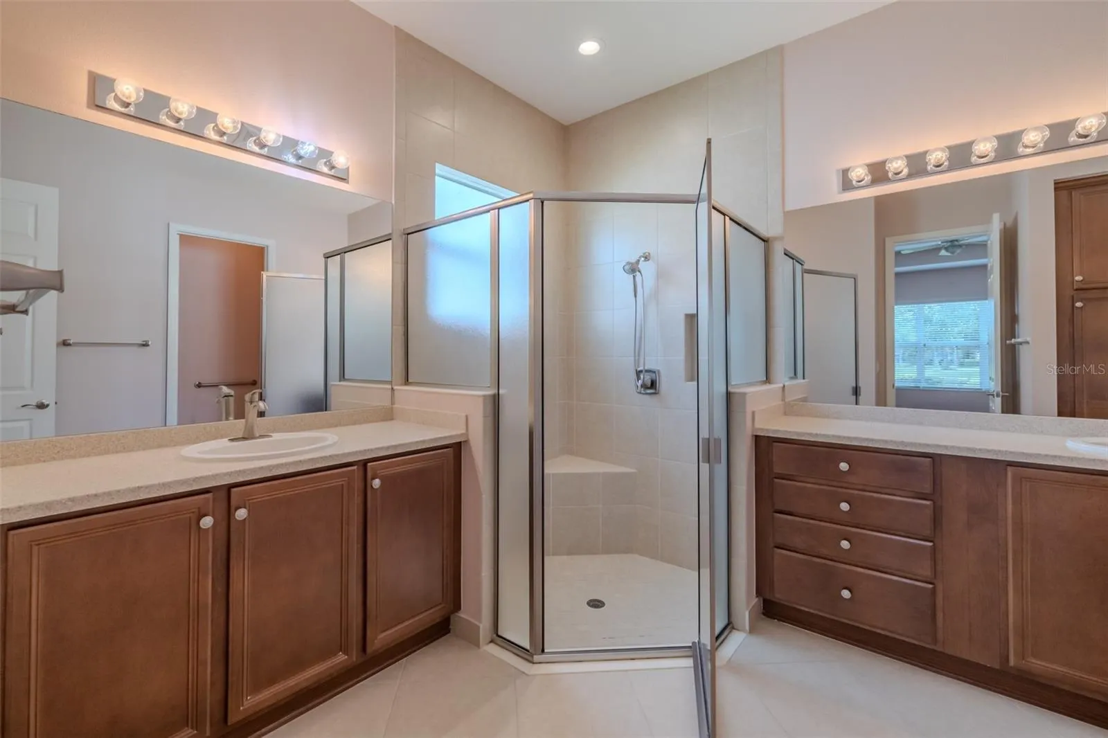 Located in Valencia Lakes, Tampa Bay’s premier 55+ Active Adult Community, this CAPRI has 1,870 square feet of stylish living space, and features 3 bedrooms, an open floorplan, and a spectacular backyard water view. Approach the house and observe the manicured gardens that are framed by poured concrete curbing. You might want to first sit and relax in the spacious screened-in front porch and take time to marvel at nature’s beauty. French double-doors welcome you into the home where you’ll be greeted into a Foyer with a soaring 10-foot ceiling. Gorgeous 17”x17” ceramic tile flooring on the diagonal graces the common and wet areas and carpet will be found in two of the three bedrooms. The airy Foyer flows into the open floorplan that encompasses the Chef’s Kitchen, Dining Room, and Great Room which offer a seamless space for everyday living and entertaining. The Dining Room is perfect for hosting dinner parties or family gatherings. The Chef’s Kitchen is a standout, featuring 42” solid wood cabinetry, granite countertops, and a stylish glass backsplash. Over-and-under cabinet lighting illuminates the space, a double-basin porcelain sink, and a spacious pantry make cooking and meal prep a breeze. The pantry and lower cabinets feature sliding shelves. The Kitchen includes a cozy Dinette that overlooks the front porch, and it’s a great space to enjoy daily meals. The 18’x15’ Great Room is inviting and functional, featuring two in-floor electrical outlets, a lighted ceiling fan and 10’-wide sliding glass doors that provide an amazing water view and lead to the serene Florida Room. The 228SF Florida Room features powered blinds and a ceiling fan, and it is the perfect space to relax, and enjoy the tranquil views of the pond and lush landscaping, and it presents a great opportunity to bring outdoor living, indoors. The Primary Bedroom is at the rear of the home providing gorgeous views of the water and the setting Sun, and it boasts a 10’-to-11’ tray ceiling, a lighted ceiling fan, two Walk-In Closets, and an Ensuite Bathroom. The Ensuite Bathroom is a spa-like retreat with two separated vanities with quartz counters, a large walk-in shower with floor-to-ceiling tile, a linen closet, and a private Water Closet for the commode. Bedroom 3 features French double doors, a large window and a ceiling fan, making it ideal for use as a guest room or home office. Bedrooms 2 and 3 feature closets and lighted ceiling fans. Environmental comforts are ensured by 46 Solar panels, a Goodman 2-stage HVAC, a Culligan water softener system, and an AO-Smith 50-gal water heater and Hurricane Shutters. The 2-car garage has epoxy floors, and plenty of storage shelves. Valencia Lakes is a great community featuring a 40,000SF Clubhouse, a 5,000SF State of the Heart Gym, 2 Multi-purpose Exercise Rooms, a Resort-style Pool, Resistance Pool, Spa, 5-Lane Lap Pool, Steam Baths, Saunas, 7 Pickleball Courts, 6 USTA Har-Tru Tennis Courts, 4 Bocce Lanes, 4 Shuffleboard lanes, Half-Court Basketball, the best Softball Stadium in the local area, a Dog Park, Garden Plots for the Green Thumbs, over 100 clubs and a Memorial Circle in honor of those who have served. HOA Fees provide SPECTRUM tv, internet, ADT monitored home security, lawn, garden and tree maintenance, and irrigation, and use of all Valencia Lakes amenities. This CAPRI is an ideal house to begin living your idyllic life. Seize the Day!