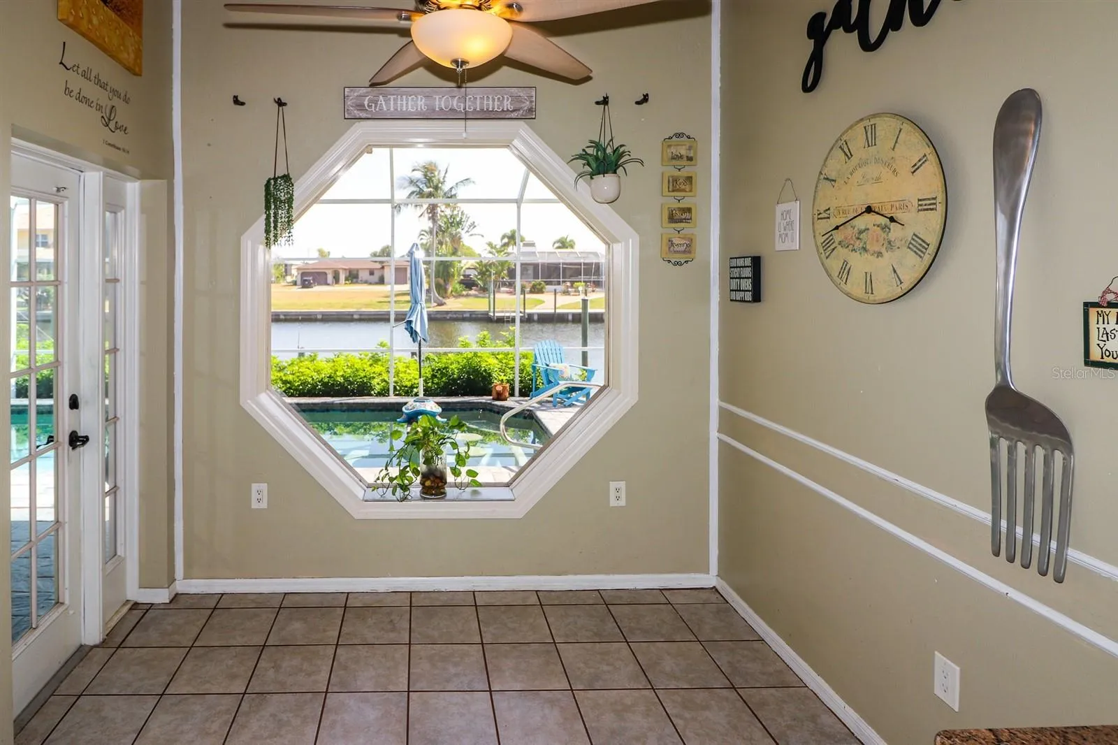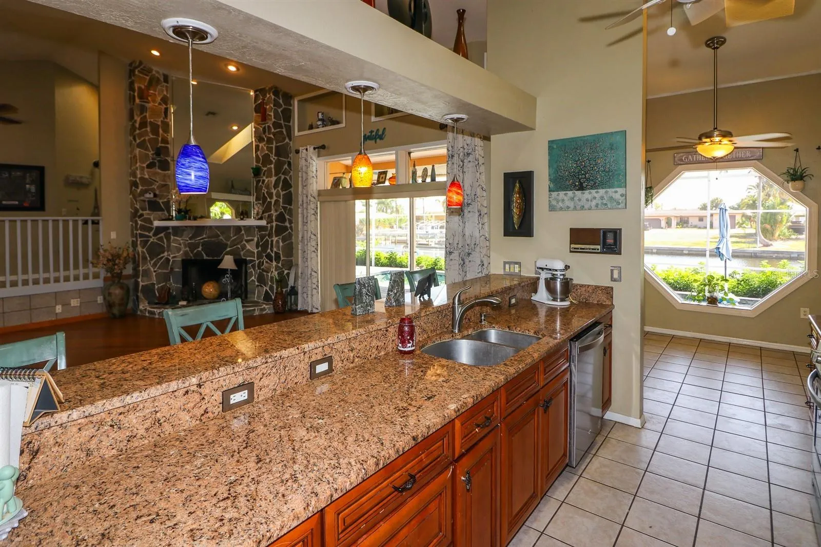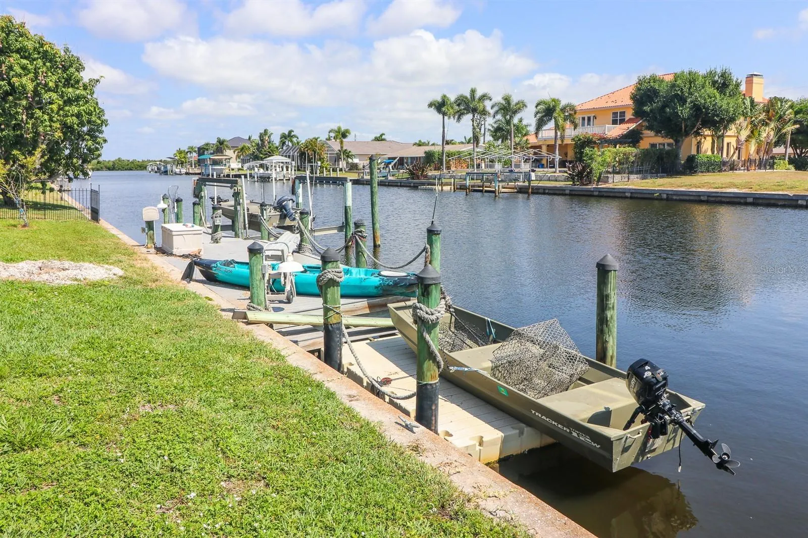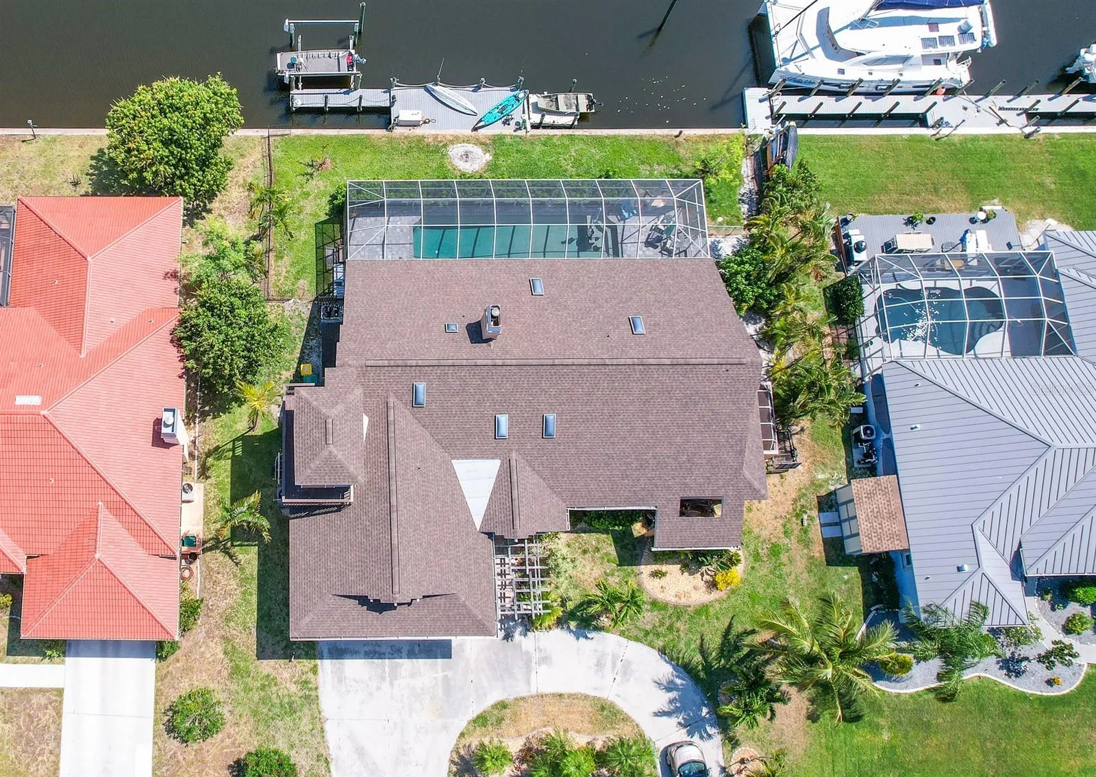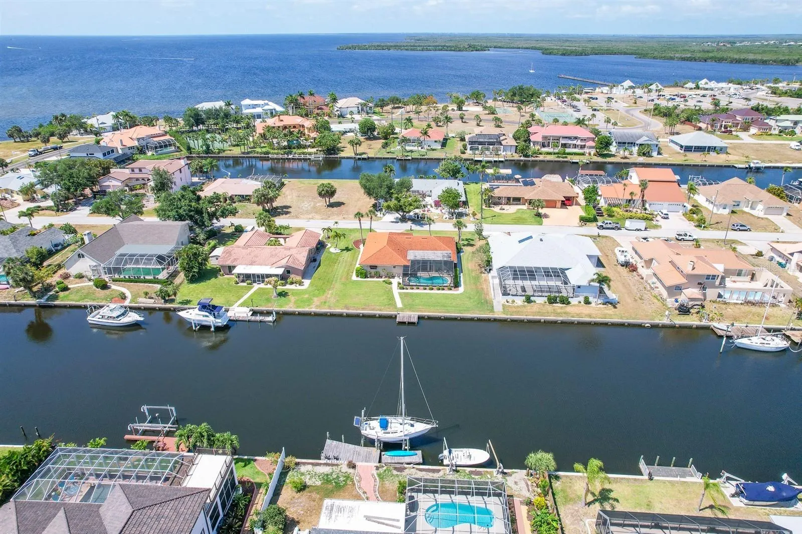 3 BR, 3 BA SAILBOAT WATERFRONT HOME WITH DOCK AND BOATLIFT ONLY MINUTES OUT TO THE HARBOR!! This is a boater’s delight. Enjoy quick access to the Charlotte Harbor to spend your days in the sunshine, fishing or just relaxing on the open waters. There is a Trek dock plus a floating dock with a 10,000 lb. lift. SELLER FINANCING IS AVAILABLE with 15% DOWN, 6% INTEREST, 5 YEAR BALLOON. Roof was replaced 8/2022, HVAC 9/2019. This beautifully designed home has stand-out architectural features throughout. You walk into a lovely foyer area and step up to the impressive great room with a fireplace, wet bar, high ceilings, upgraded flooring and sliders that lead to your elegant pool with seating and newer pavers. What great memories to make here. The gourmet kitchen has granite countertops, breakfast bar which overlooks the great room, stainless steel appliances, tall, elegant wood cabinets and decorative pendant lights. The breakfast nook area has a huge (5’10″x 5’10”) octagon window that gives beautiful views of the pool and canal. The whole house is unique with plenty of built-in shelving and nook areas for a decorative flair. The dining room has a bay window with bench seating. The main bedroom is large with a huge walk-on closet, spacious bathroom, vanity and soaking tub. From the great room you step up to the other side of the home where the other bedrooms are. Open the French doors to an oversized room with plenty of storage and its own bathroom. There’s also a bonus room that can be used as another bedroom, den or office. Down the hall is the large third bedroom with a slider to the deck and views of the canal. It also has its own bathroom with a door that leads to the lanai. Another unique flair is the spiral staircase that leads up to a fantastic room surrounded with windows for impressive views. This room can be used as an office, art room, craft room or a relaxing sitting room, the choice is yours. Another plus is there’s lots of storage space. The garage was converted to be a game room. It has AC and more cabinet space. There is plenty of parking with the circular driveway. It is close (walking distance) to the Charlotte Harbor Beach Park which has a pool, tennis court, playground, boat launch, kayaking. It is close to 41 to enjoy all Port Charlotte amenities. It is not far from the new Sunseekers Resort. This home is in an excellent LOCATION!