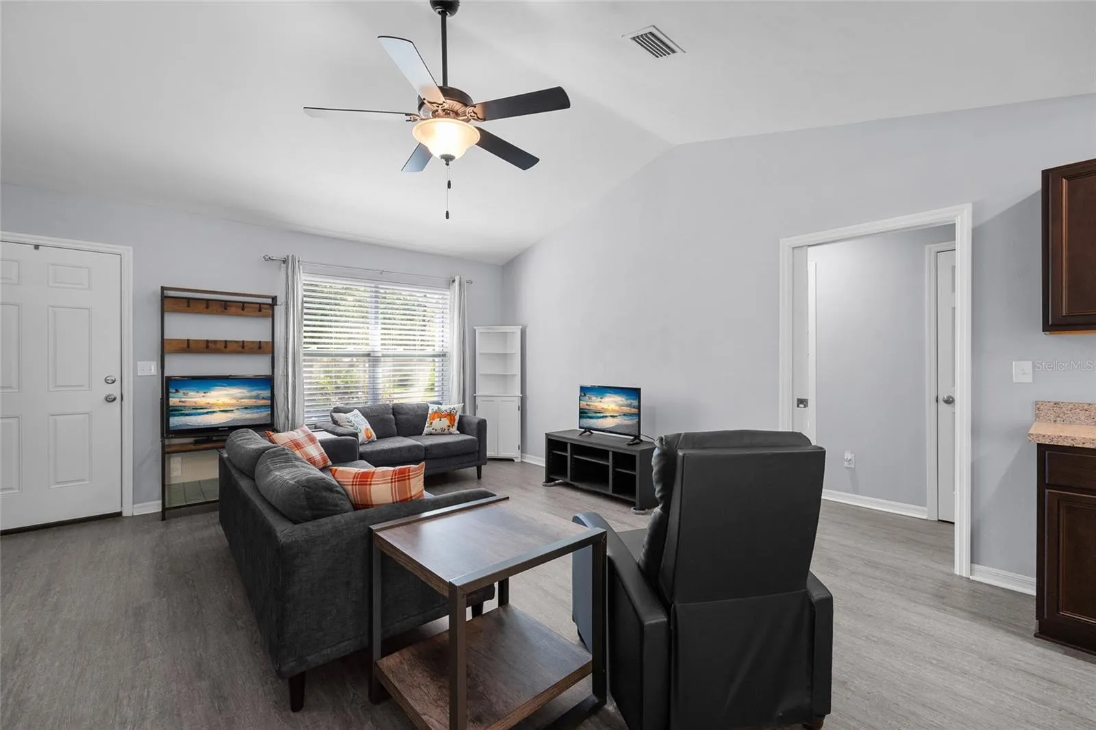 Step into your own private oasis with this beautiful 2023 turnkey home, situated on a 1.27-acre wooded lot in the quiet NW neighborhood of Seminole Woods. Featuring an open floor plan, vaulted ceilings, tons of storage, custom blinds and elegant luxury vinyl plank flooring throughout, this 3-bed, 2-bath home has all the desirable conveniences you could dream of. The spacious living room flows into the eat-in kitchen that boasts stainless steel appliances, rich cabinetry, and French doors that open to the serene backyard. The home’s thoughtful split bedroom plan provides ultimate privacy. The primary suite is a true retreat, complete with a walk-in closet and ensuite with tub/shower combo. Two additional guest bedrooms and a full guest bath are located on the other side of the home. A convenient pocket door offers the option of closing off the guest bedrooms from the rest of the house. You’ll also find a dedicated laundry room, including a washer and dryer and door to the side yard, just off the kitchen. Outdoors, the expansive property gives you plenty of space to enjoy the natural surroundings, raise chickens, have an extensive garden, or just watch your little ones running and playing. A handy shed is perfect for storing your tools and equipment. This prime location offers a peaceful escape without sacrificing convenience. You’re just minutes away from schools, shopping, restaurants, hospitals, and doctors’ offices. Because the property is located outside the city limits, property taxes are lower. The neighborhood is also known for its lower utility costs thanks to Clay Electric, and has no HOA fees. For nature lovers, you’ll be close to outdoor gems like Devil’s Millhopper Geological State Park and San Felasco Hammock Preserve State Park. Adorable Critter Creek Farm Sanctuary is just a couple of miles down the road! This isn’t just a pristine home; it’s a lifestyle. Schedule your private tour today to see this incredible property for yourself!