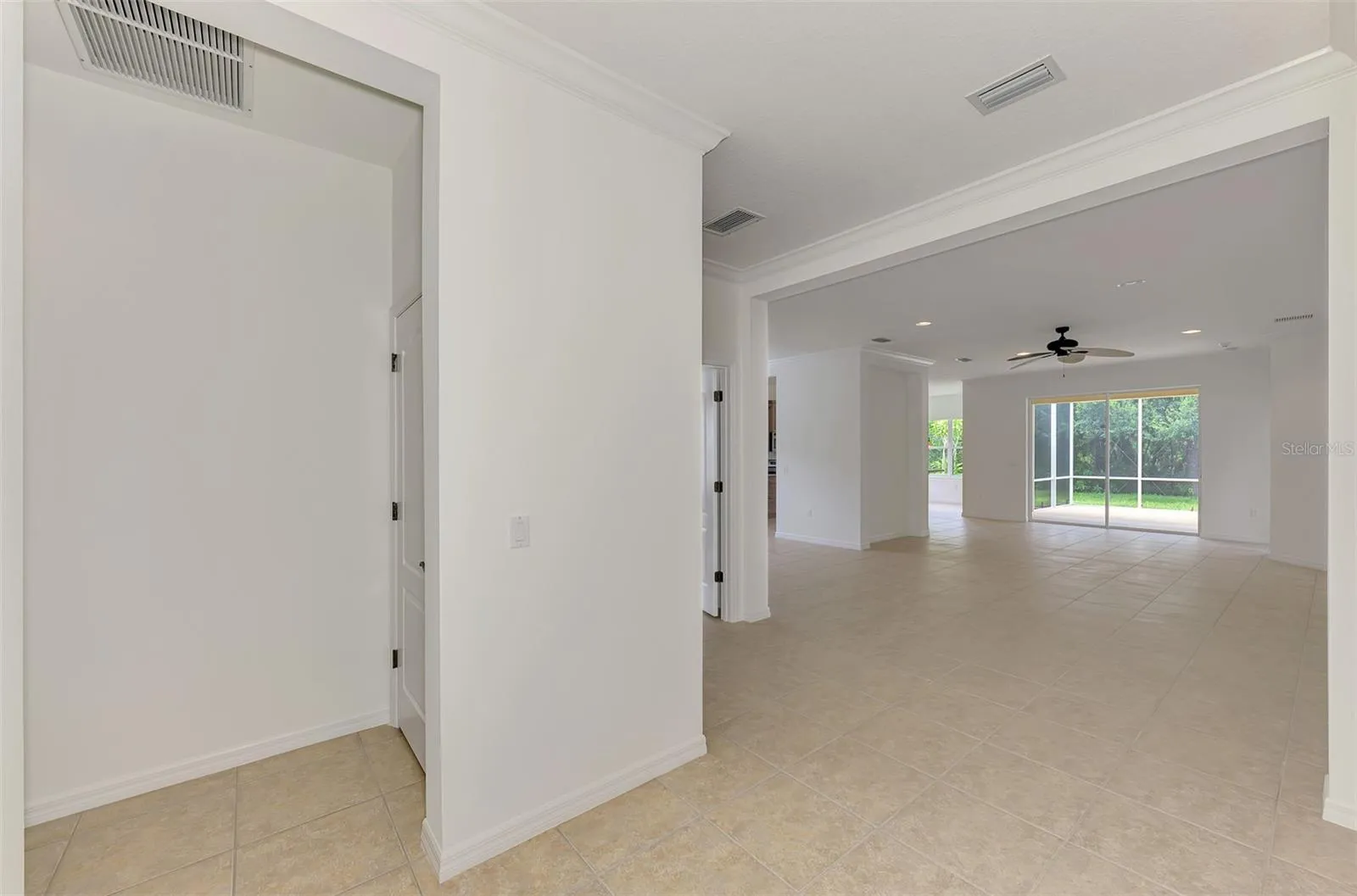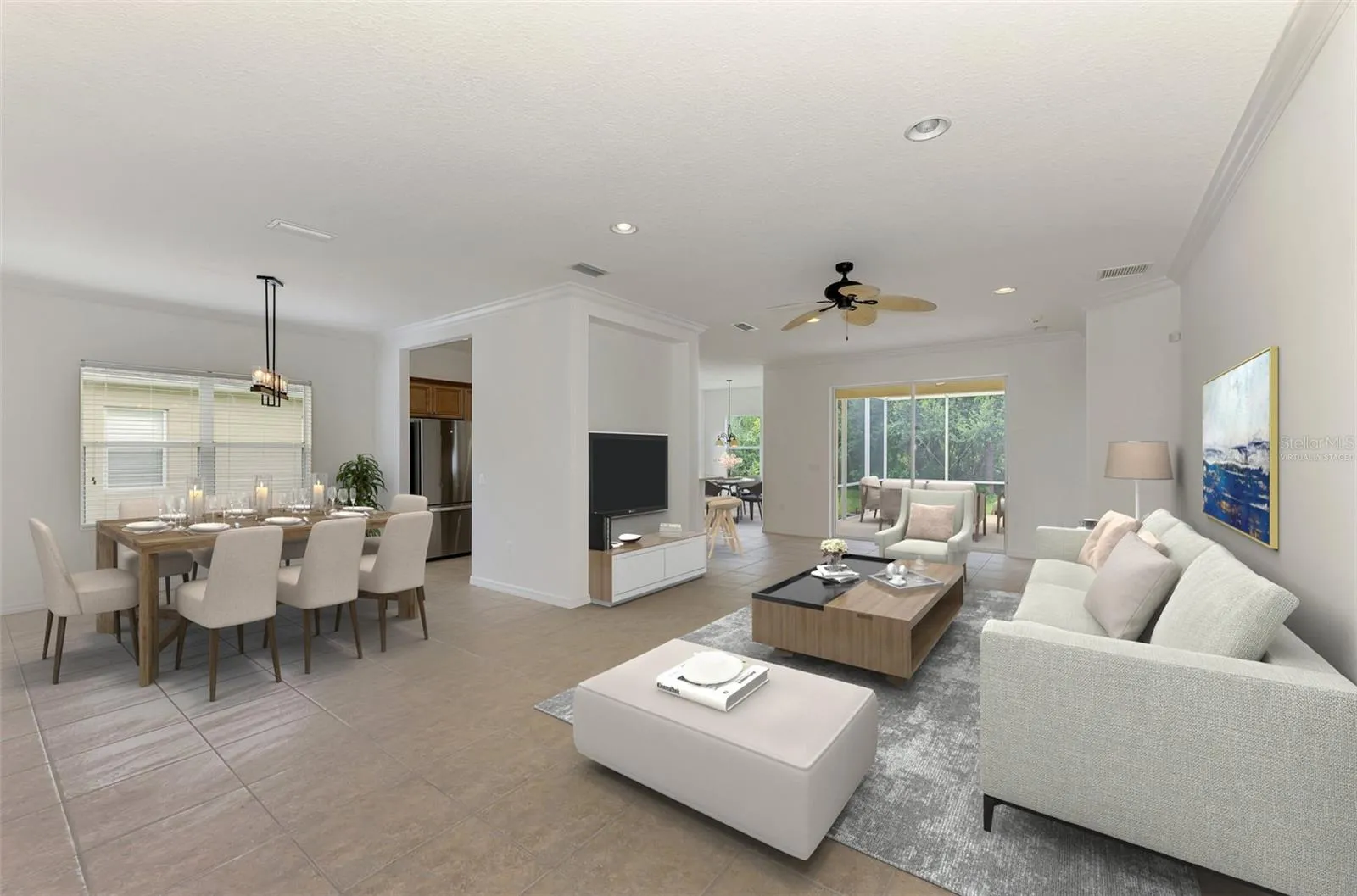 Enjoy a thoughtfully designed split floor plan that centers around a massive great room, perfect for entertaining and everyday living. The large primary suite features a walk-in shower, dual sinks, and a private water closet, while secondary bedrooms provide plenty of comfort and space. Step outside to an extended screened-in lanai overlooking a private lot with serene views, the perfect spot for morning coffee or winding down in the evening. The oversized 2-car garage offers additional storage, epoxy flooring, and keypad access.