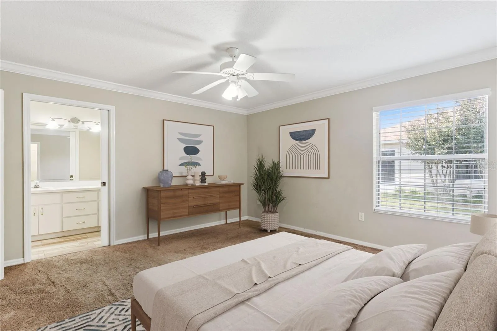 Welcome to Golden Palms in Tavares! This unfurnished 2 bedroom, 2 bathroom single-family home offers a low-maintenance lifestyle in a desirable community. The home features a spacious living room, open kitchen and dining area, and a finished enclosed porch/Florida room for additional living space. The split bedroom design provides privacy, with each bedroom offering its own ensuite bathroom. The primary suite includes a handicap-accessible bathroom for added convenience. A 2-car garage completes the home. Golden Palms residents enjoy community amenities including a pool, tennis courts,and a basketball half court. Ideally located just minutes from downtown Tavares and the Golden Triangle of Tavares, Eustis, and Mount Dora, with easy access to shopping, dining, and lakefront activities. It is a must see, contact our office to schedule your private showing.