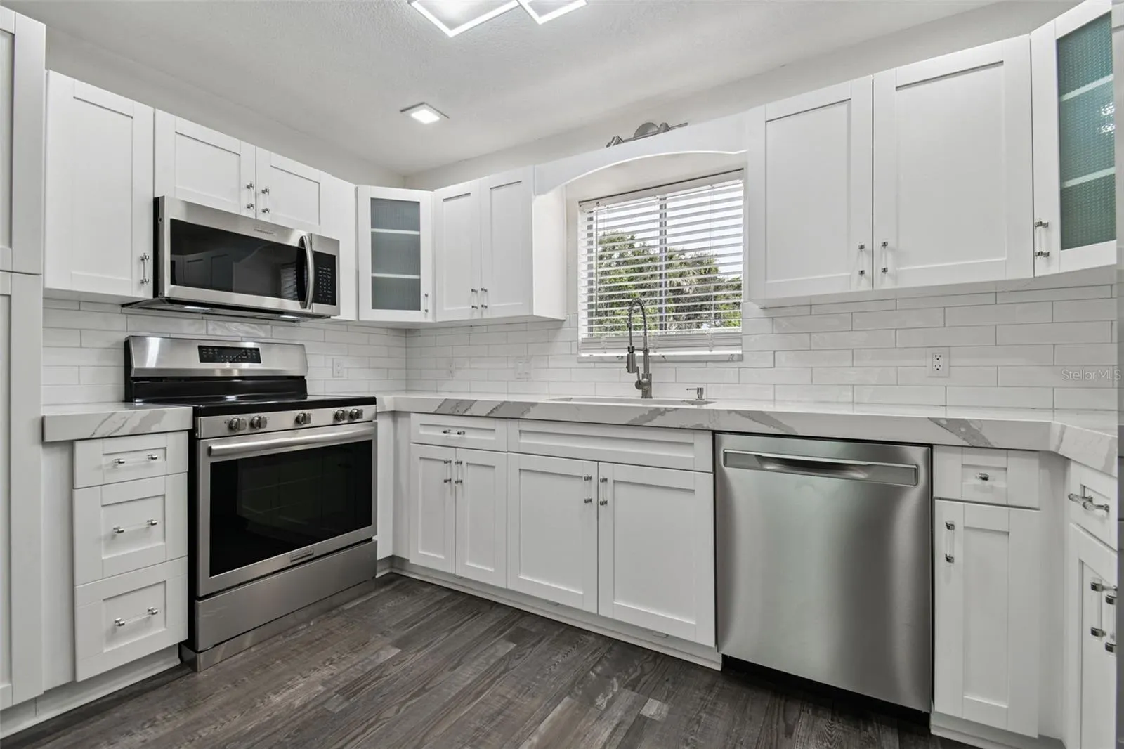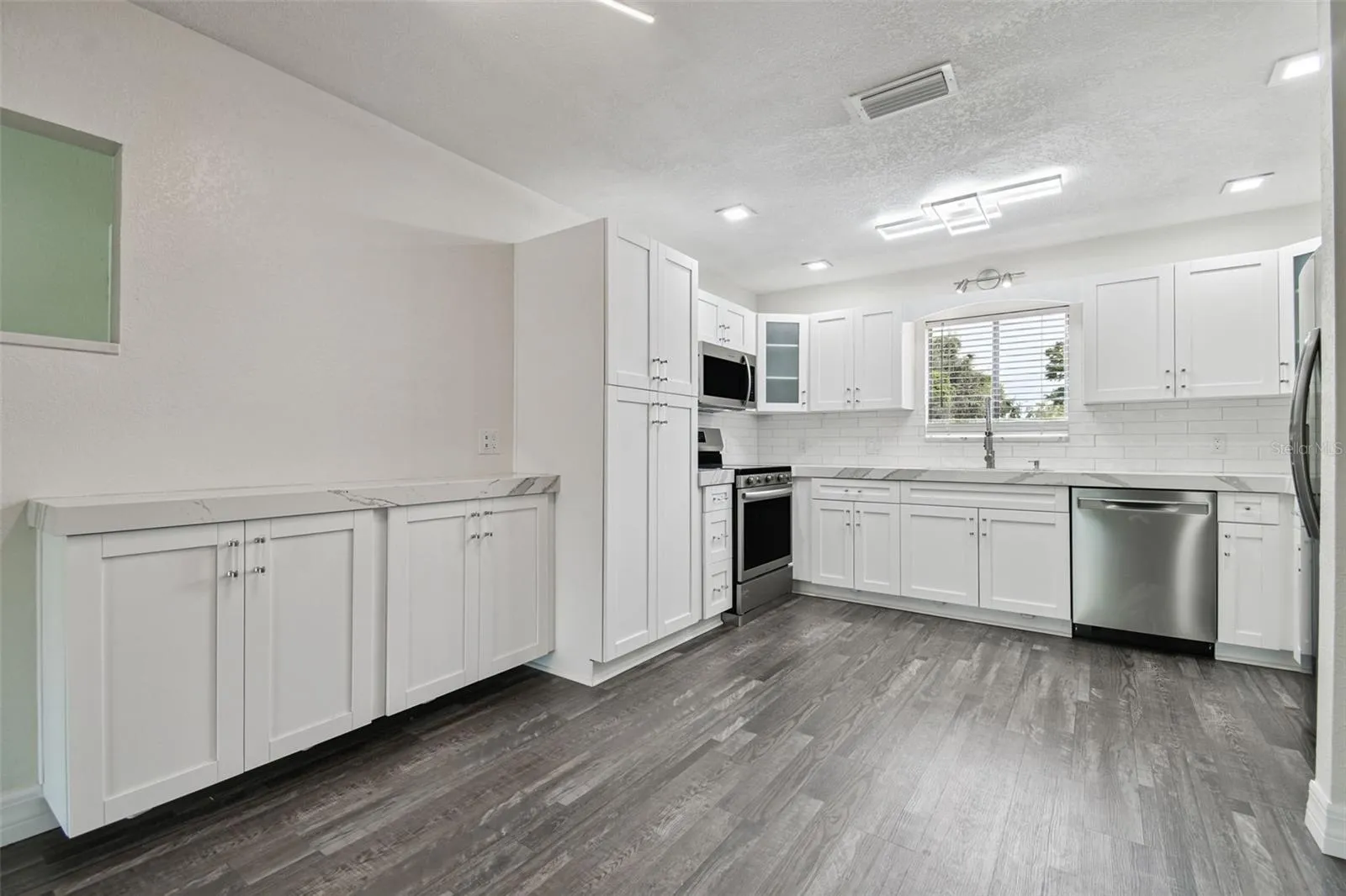 FULLY RENOVATED FOUR-Bedroom DOWNSTAIRS Condo with STUNNING Lake Views! This home is MOVE-IN-READY!! Welcome to your dream home! This beautifully and fully renovated 4-bedroom, 2-bath condo offers breathtaking lake views, modern design, and low-maintenance living in a prime Tampa location. Every inch of this spacious home has been thoughtfully updated for style! Step inside to find BRAND-NEW luxury vinyl plank flooring, ALL NEW drywall, and an OPEN-CONCEPT living space perfect for entertaining or relaxing. The gorgeous NEW KITCHEN features New wood shaker cabinets, quartz countertops, stainless steel appliances, a coffee bar, and a butler’s pantry with a stylish frosted glass door. Modern recessed lighting and sleek finishes create a bright, welcoming space. The primary suite offers a massive walk-in closet and a fully remodeled en suite bath with elegant marble-look ceramic tile, a modern vanity, lighted mirror, and a luxurious TEN JETS shower head. The second bathroom is equally impressive with ALL NEW finishes and fixtures. All bedrooms are generously sized, with TWO featuring sliding glass doors that open to the expansive 25′ x 10′ screened lanai! One bedroom features barn doors that open to the living room, making it a versatile space ideal for a home office, den, or guest room. The barn doors are reinforced to lock in place, offering the privacy and stability of a traditional wall when needed. Additional features include: New outdoor laundry room, New ROOF 2020, New full patio screening, 6-inch baseboards throughout, All-new lighting and fixtures, Durable metal and steel-framed construction of the building, Well-maintained building with wood exterior, HOA INCLUDES: ASSIGNED & GUEST PARKING, WATER, SEWER, TRASH, AND PEST CONTROL, EXTERIOR BUILDING MAINTENANCE, CABLE TV, ACCESS TO COMMUNITY AMENITIES: POOL, TENNIS COURTS, PLAYGROUND, AND BBQ AREA!! Enjoy the benefits of NO CDD fees, NO flood insurance required, and a PRIME LOCATION just minutes from Tampa International Airport, Raymond James Stadium, downtown Tampa, top-rated schools, shopping, dining, and major highways. PLEASE be sure to watch the virtual tour! Click the video button or scroll down to explore the full walk-through.