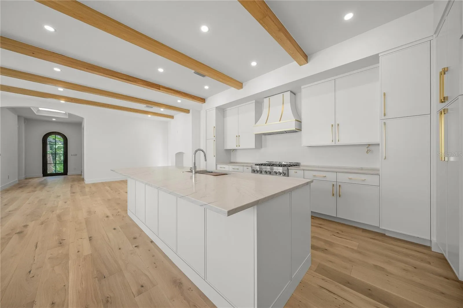 Welcome to Granada, a highly sought-after Sarasota neighborhood known for its mature tree-lined streets, character-rich architecture, and close proximity to the city’s best dining, shopping and beaches. This brand-new construction home is a stunning blend of Mediterranean and Moorish-inspired design, featuring bright white exteriors, graceful arches, and timeless curb appeal. Step inside to find warm wood floors, abundant natural light, and carefully curated designer finishes throughout. The gourmet kitchen boasts a built-in panel-front refrigerator, gas range, premium JennAir appliances, and Quartzite countertops—perfect for both everyday living and entertaining. The primary suite is conveniently located on the main level, complete with French doors opening to the stunning courtyard pool, creating a serene indoor-outdoor retreat. A versatile den or office is also located on the main floor. Upstairs, discover four spacious bedrooms and a generous bonus room that can serve as a media room, playroom, or family room. With 3,850 square feet of living space, five bedrooms, and four and a half baths, this all-block, two-story home was thoughtfully designed for modern comfort and flexibility—offering the ultimate Sarasota lifestyle.