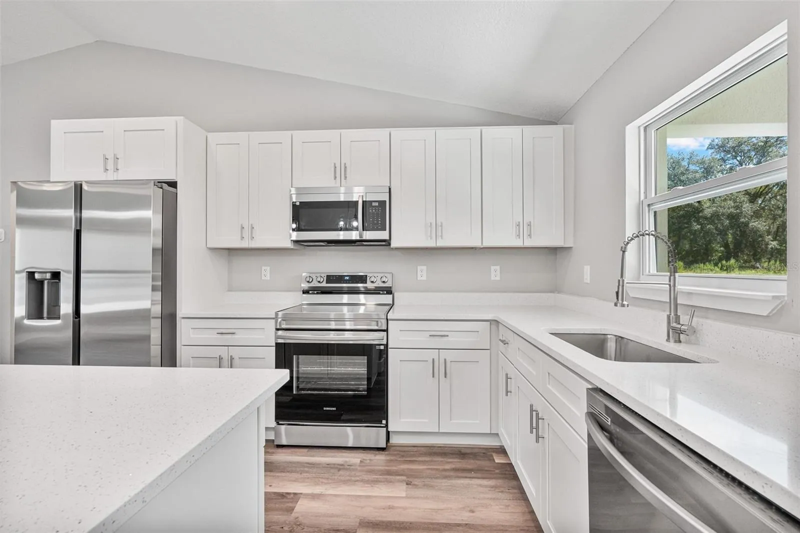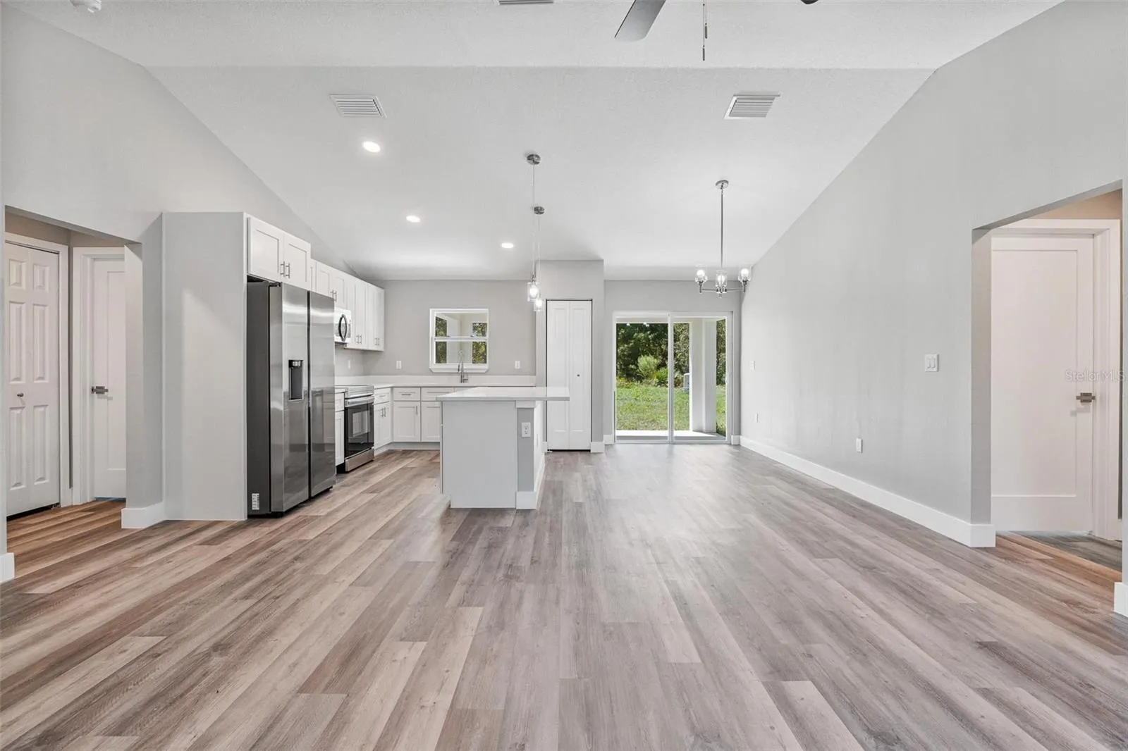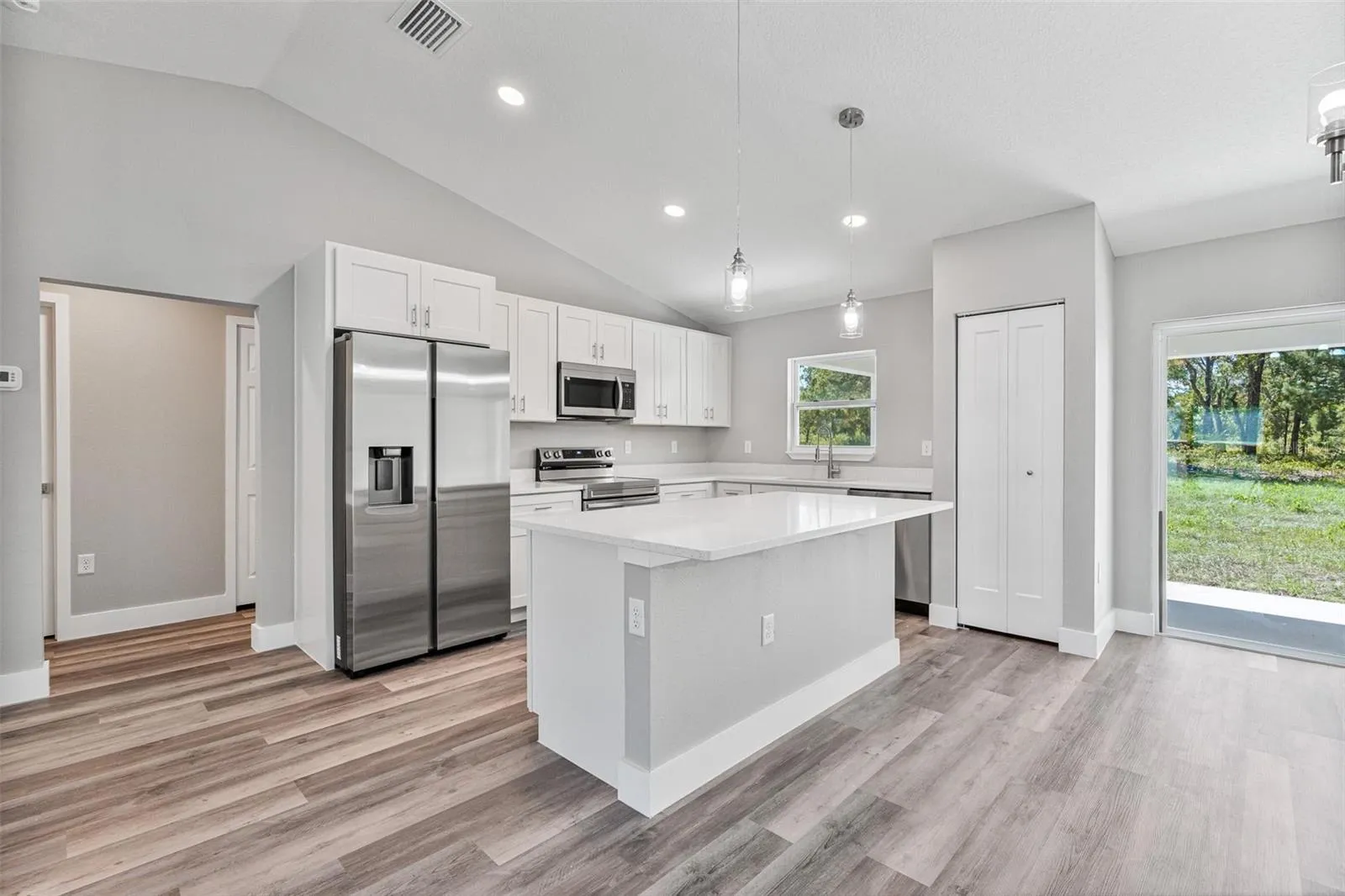 Stunning New Build in Ocklawaha – A Must-See! Discover this gorgeous, newly constructed home nestled in the serene setting of Ocklawaha. From the moment you arrive, you’ll notice the thoughtfully placed spotlights that brighten all four corners of the property, adding both style and security. Step onto the inviting back porch, where a ceiling fan ensures your comfort as you relax outdoors. Inside, the open floor plan immediately impresses with its modern finishes and elegant design. The kitchen and bathrooms feature luxurious quartz countertops, while recessed lighting bathes the entire living area in a warm, welcoming glow. The kitchen is fully outfitted with essential appliances, including a dishwasher, refrigerator, stove, and microwave, ensuring this home is truly move-in ready. Enjoy the privacy of a split floor plan, with the spacious master suite thoughtfully separated from the guest bedrooms. The master bedroom is a true retreat, featuring a tray ceiling, a large walk-in closet, and an en-suite bathroom with upscale touches. On the guest side, the generously sized guest bedrooms are complemented by a well-appointed guest bathroom, offering comfort and convenience for family and visitors. Modern light fixtures and ceiling fans are thoughtfully placed throughout the home, enhancing every room with style and practicality. As an added bonus, Spectrum internet service is available, ensuring you stay connected in your new home. Don’t miss your chance to own this beautiful property! Schedule your showing today and experience everything this home has to offer.